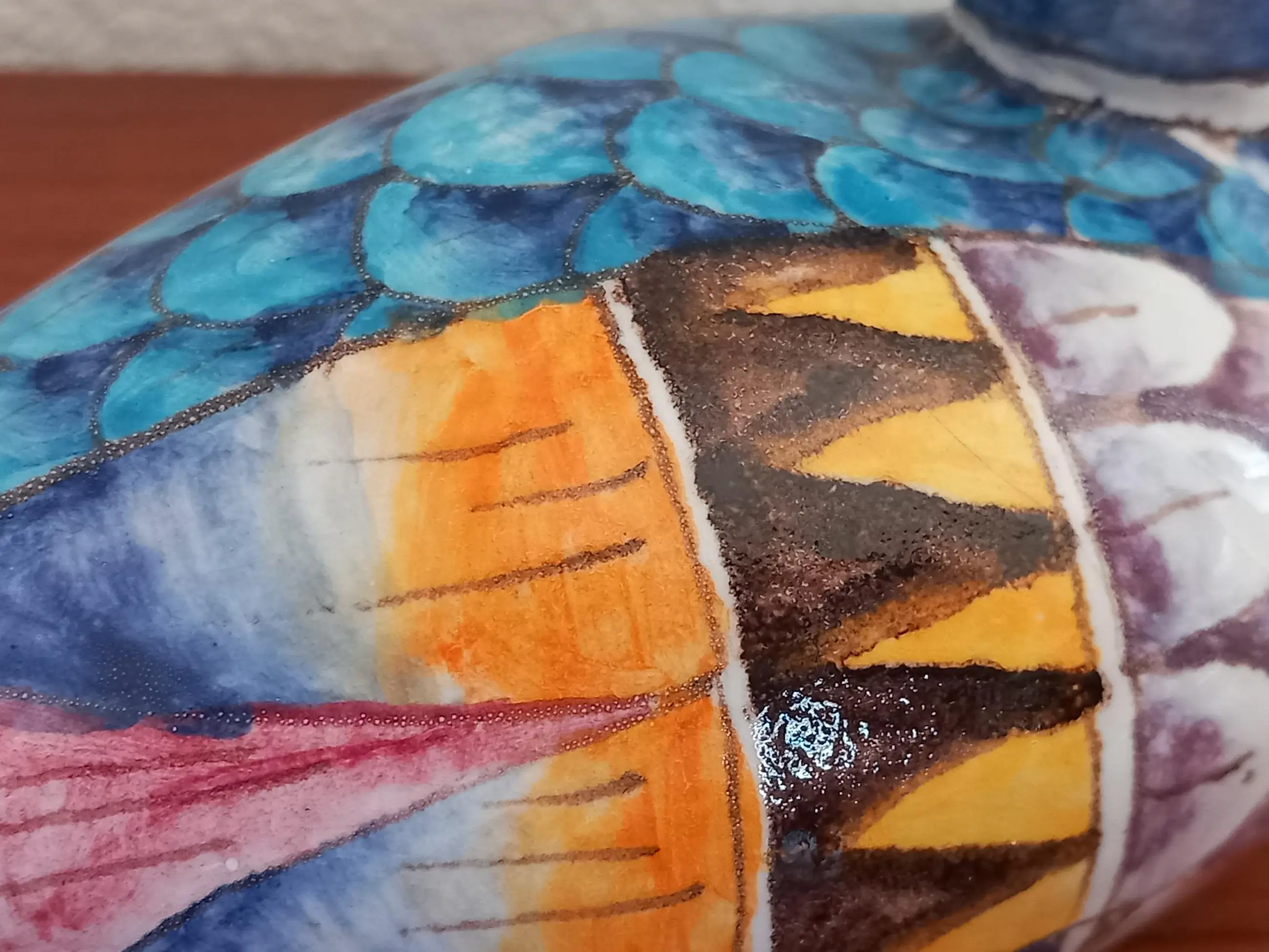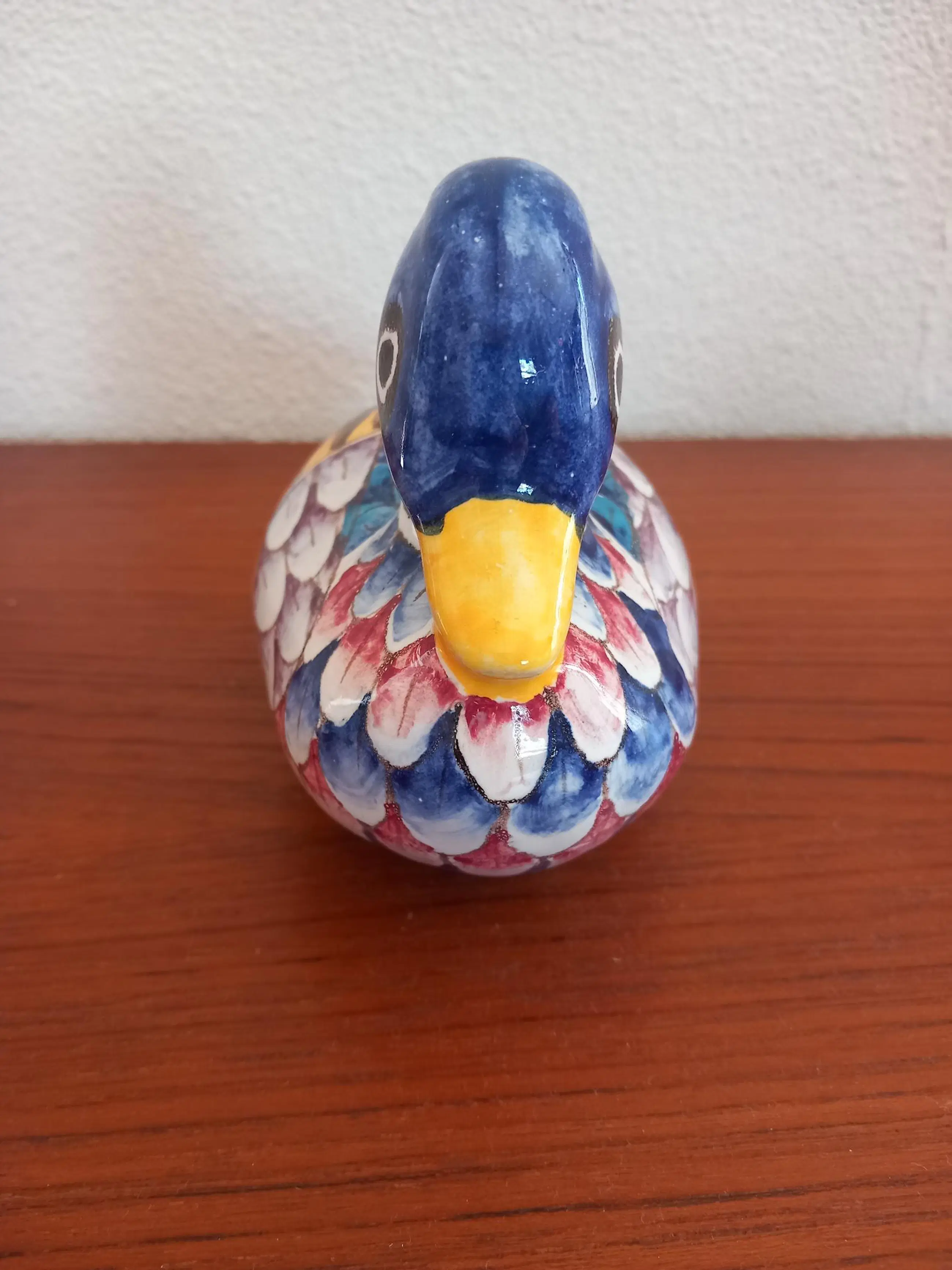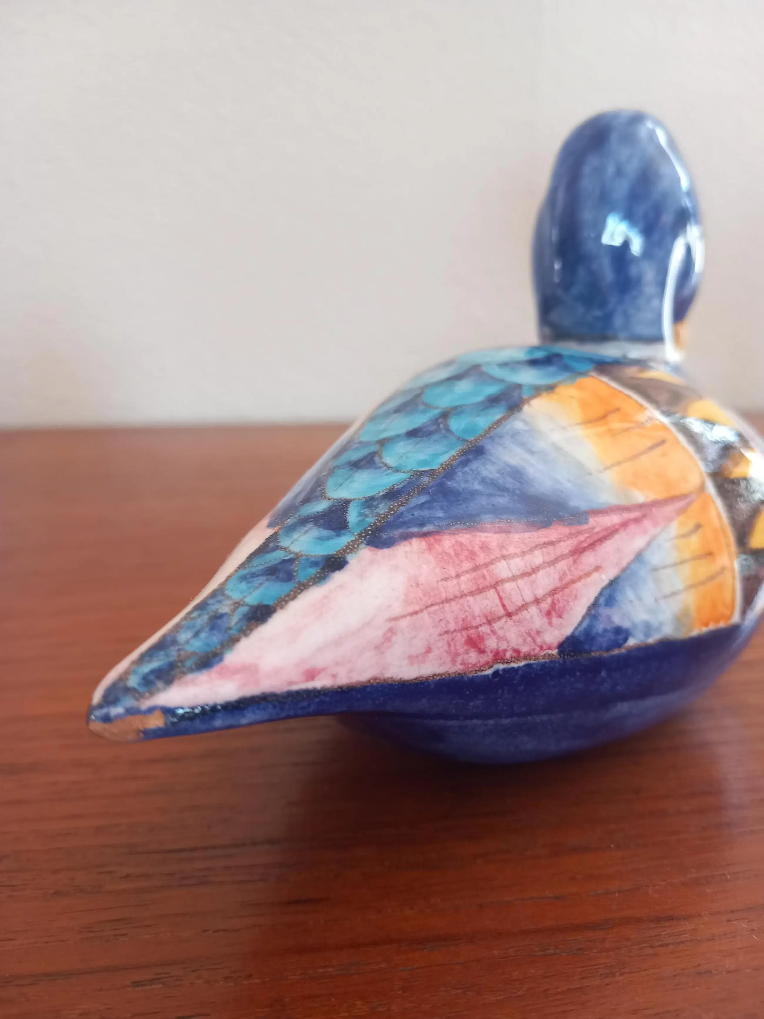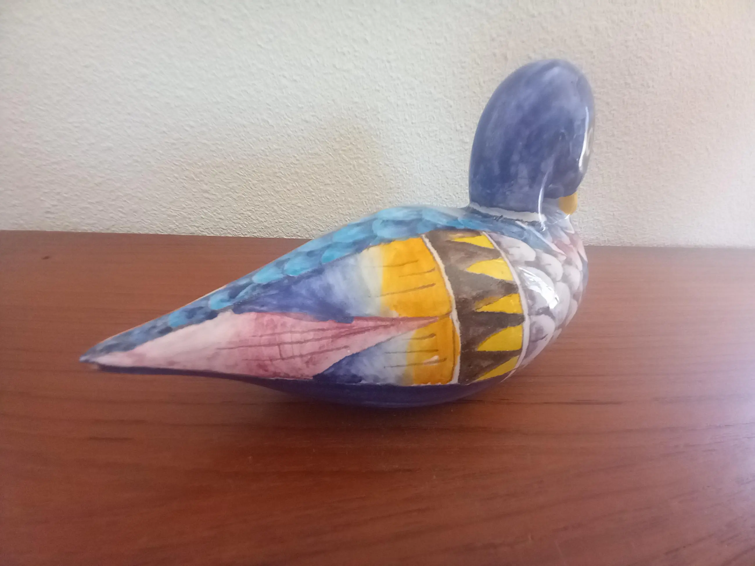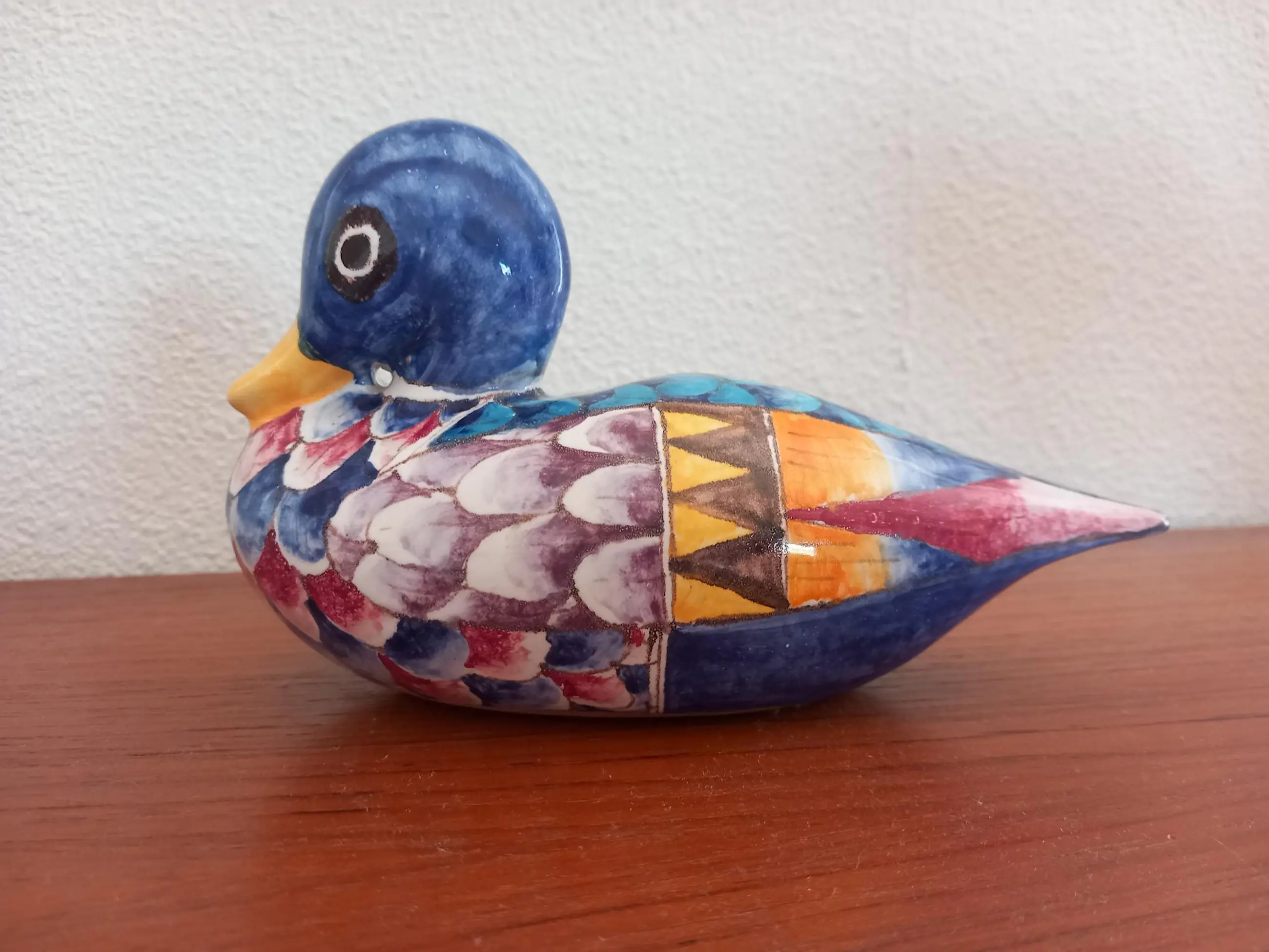 Dit prachtige, kleurrijke beeldje van een eend is in Italië gemaakt door Pottenbakkerij Melior in Sesto Fiorentino, een buitenwijk van Florence. De ingewikkelde details en levendige handgeschilderde afwerking maken het tot een uniek kunstwerk dat elke ruimte zal opfleuren. Het stuk is gemaakt van hoogwaardig keramiek en is vervaardigd met behulp van traditionele aardewerktechnieken. Het is een must-have voor liefhebbers van Italiaanse keramische kunstwerken uit de jaren ’60 en brengt een vleugje natuurlijke elegantie in huis.