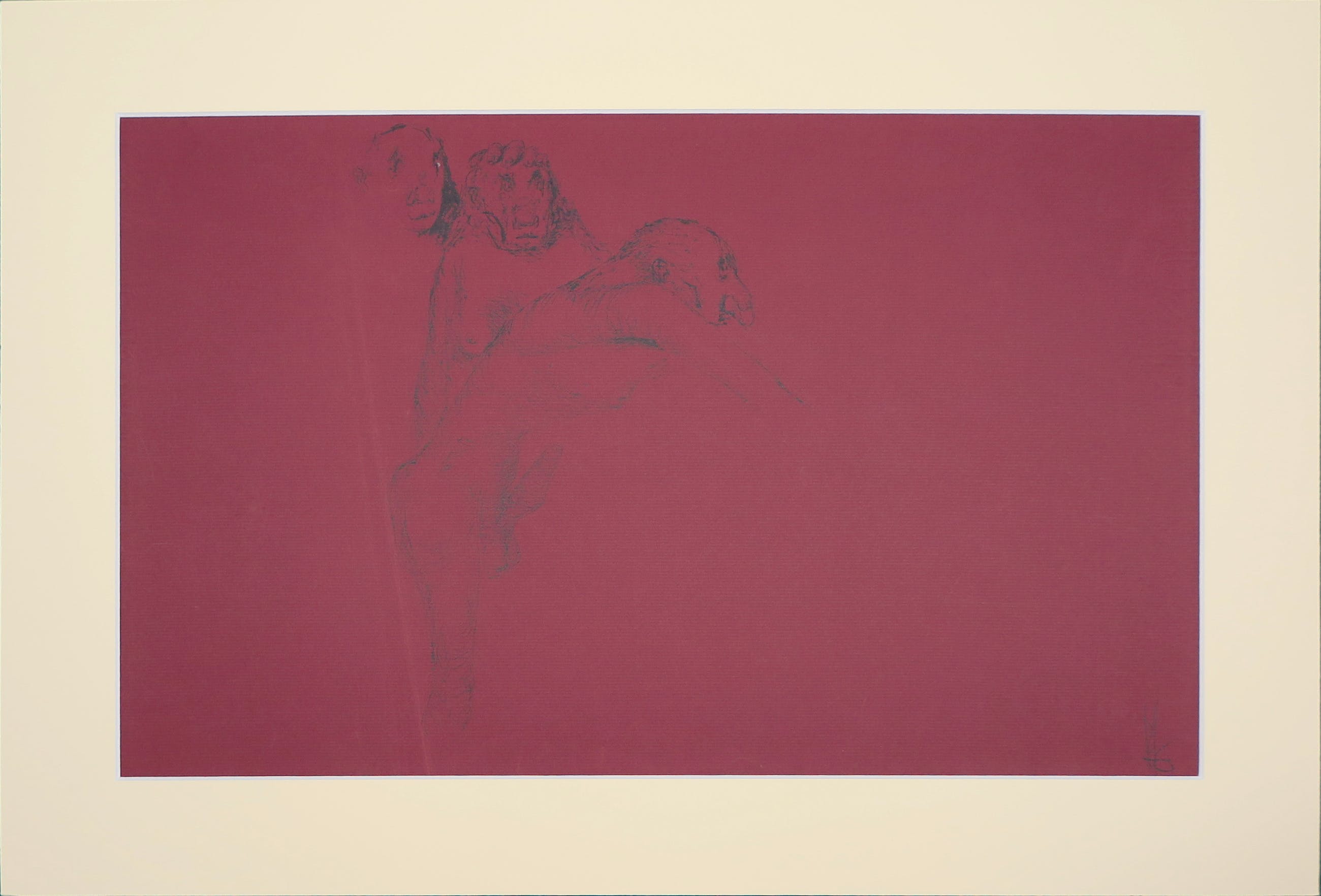 Werk is in zeer goede staat maar het papier bevat een lichte verkleuring links van de figuren. Tevens heeft de linker figuur een wit vuiltje in het rechter oog. | |||