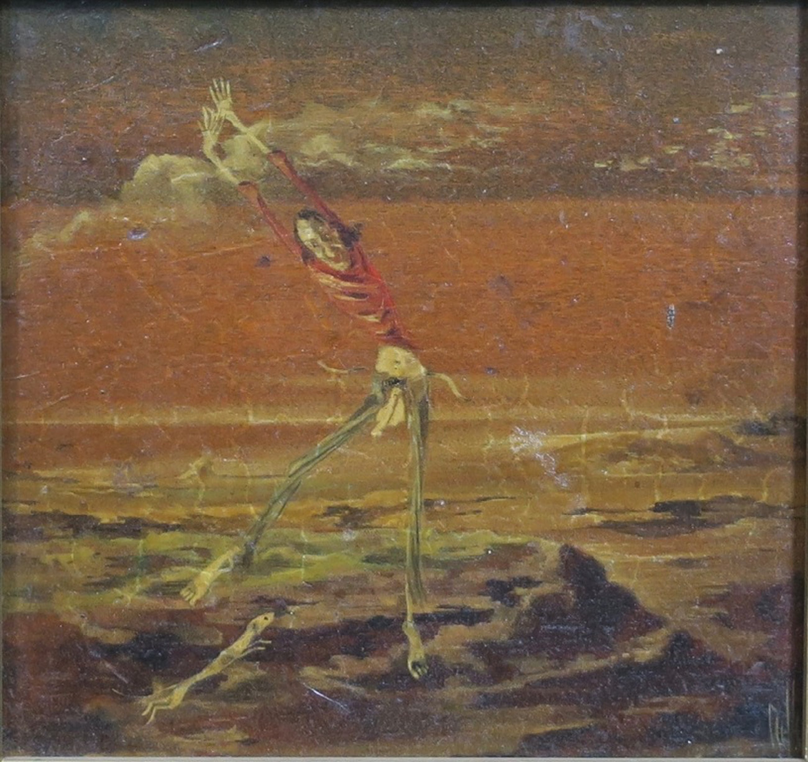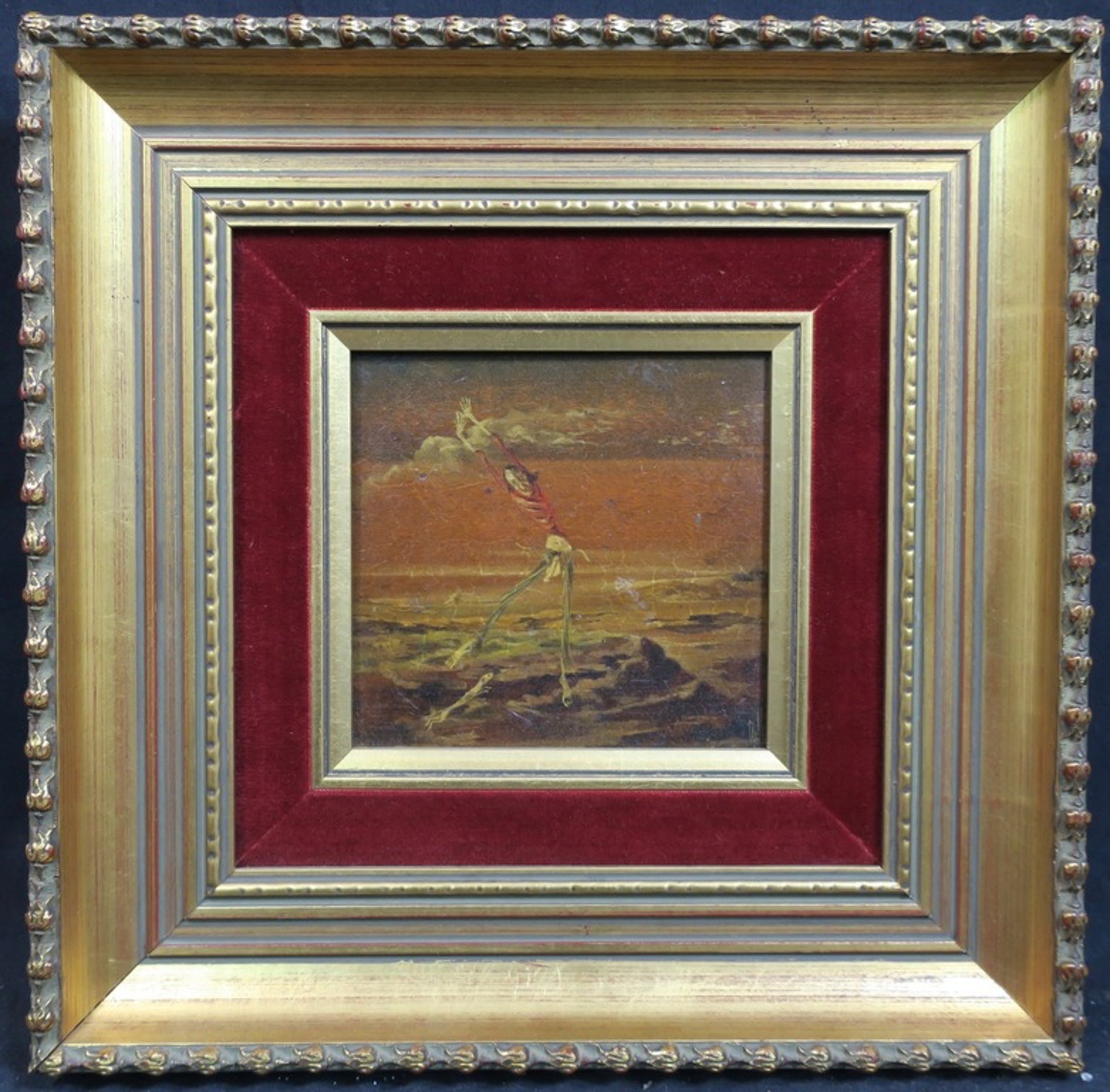 Conditie: Onderliggende voorstelling in zeer goede staat, maar met craquele in de vernislaag. Het werk zou gerestaureerd moeten worden (oude vernislaag verwijderen en nieuwe vernislaag krijgen)