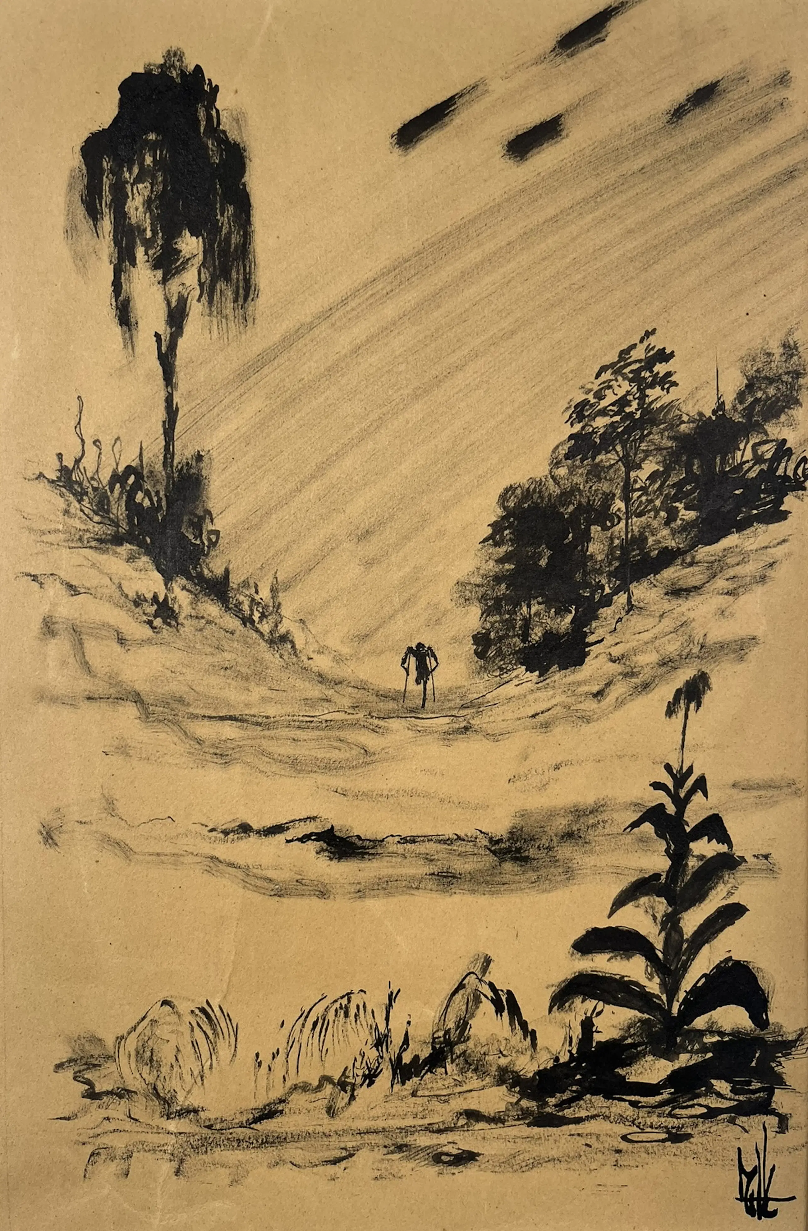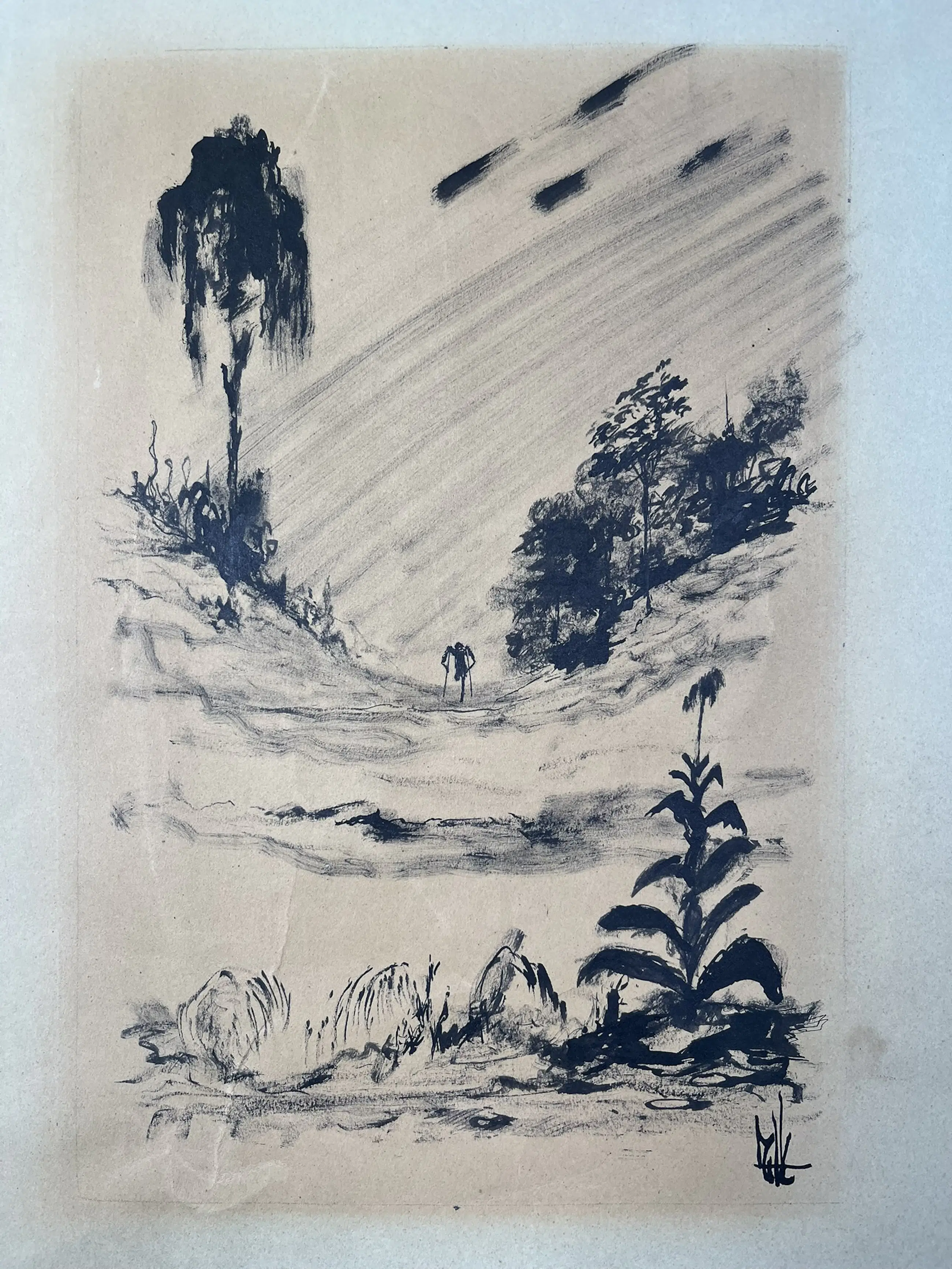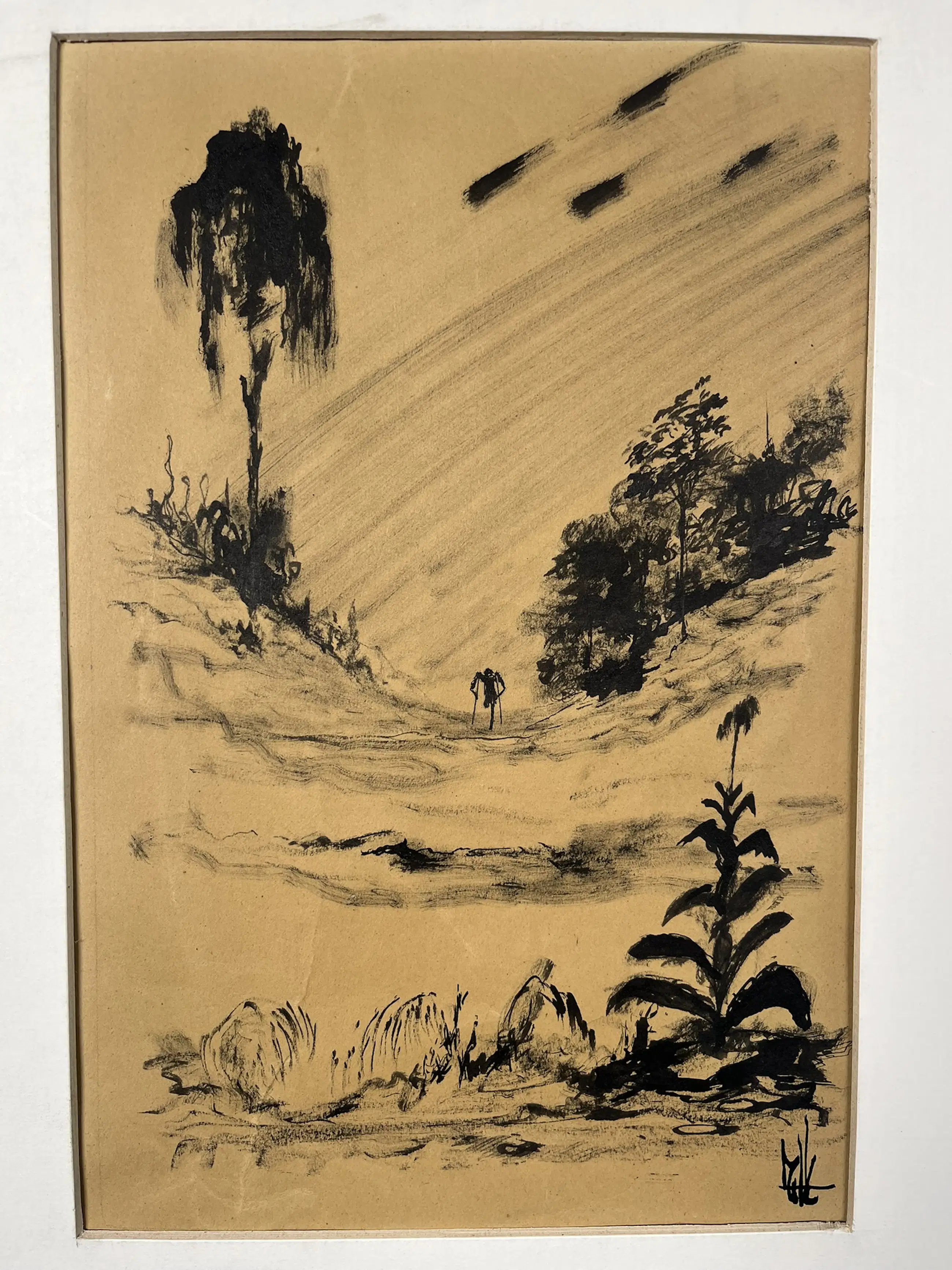 Melle, voluit Melle Oldeboerrigter (1908–1976), was een Nederlandse kunstenaar die vooral bekend werd om zijn fantasierijke en surrealistische schilderijen. Zijn werk kenmerkt zich door levendige kleuren, complexe composities en bizarre, droomachtige taferelen. Hij werkte vaak met symboliek en verbeeldde thema’s als angst, verlangen en de menselijke psyche. Melle was autodidact en liet zich inspireren door zowel de natuur als zijn innerlijke wereld. Tegenwoordig wordt hij beschouwd als een van de meest eigenzinnige en intrigerende surrealisten van Nederland. Formaat voorstelling 27 x 18 cm.