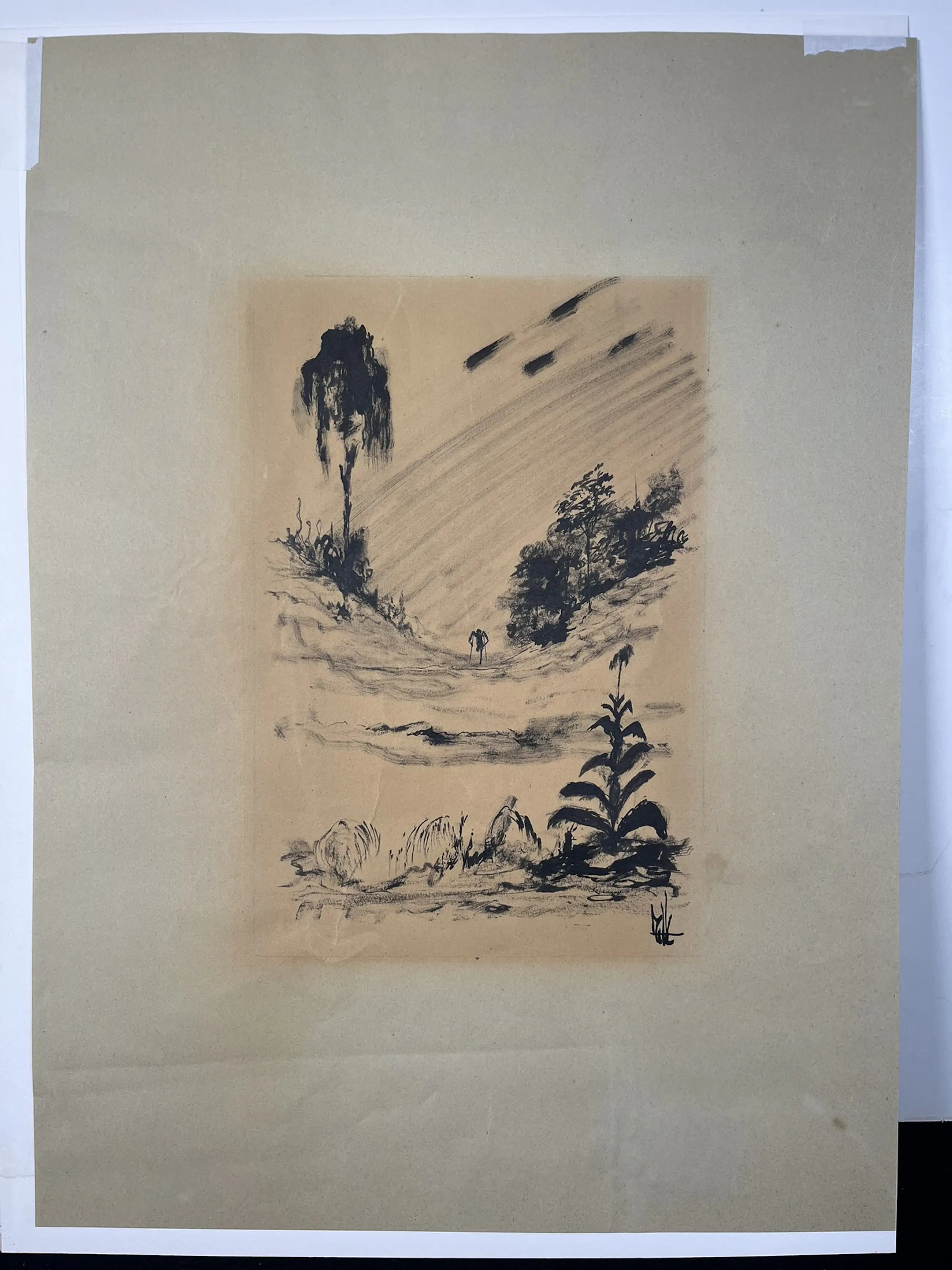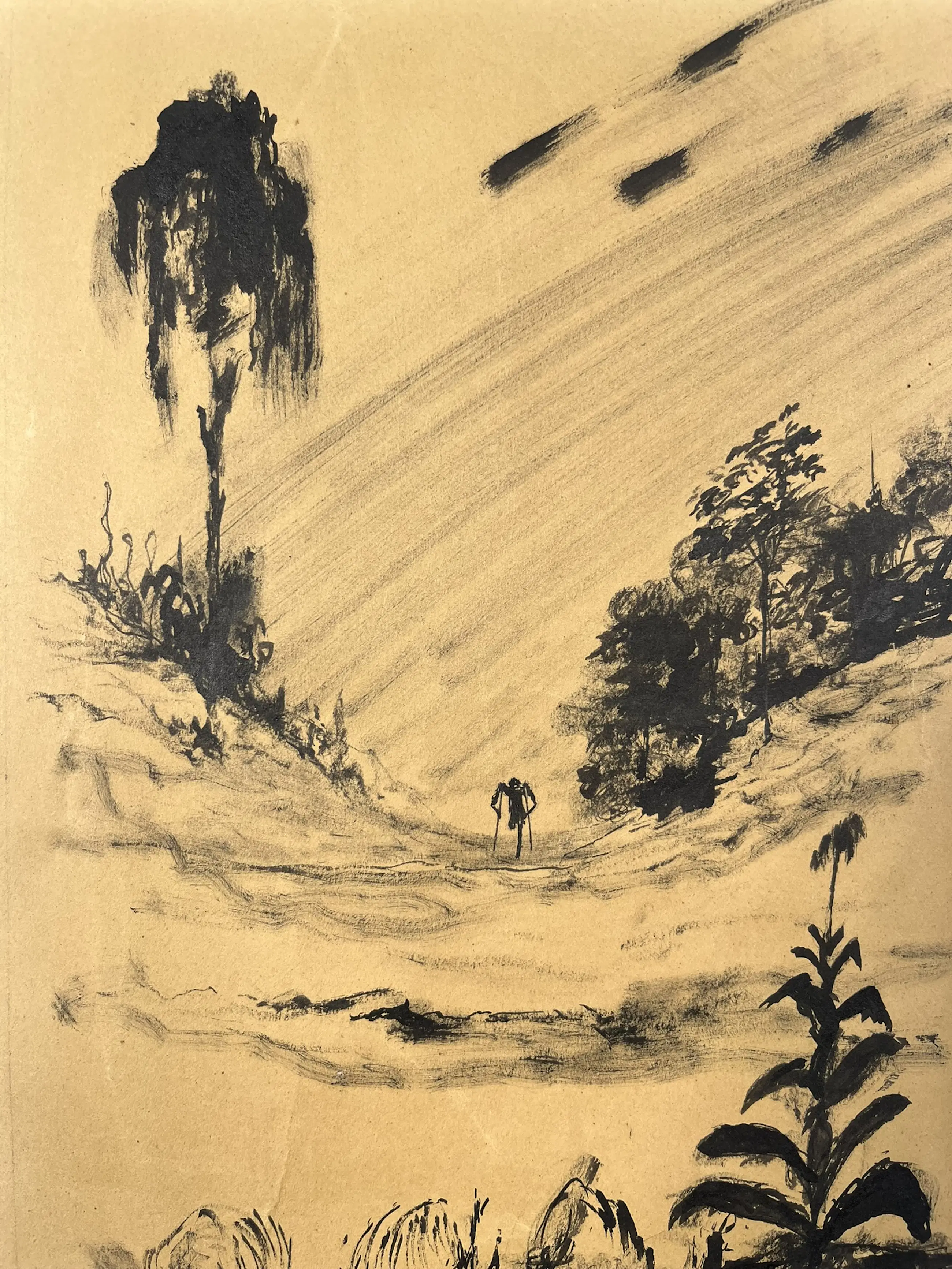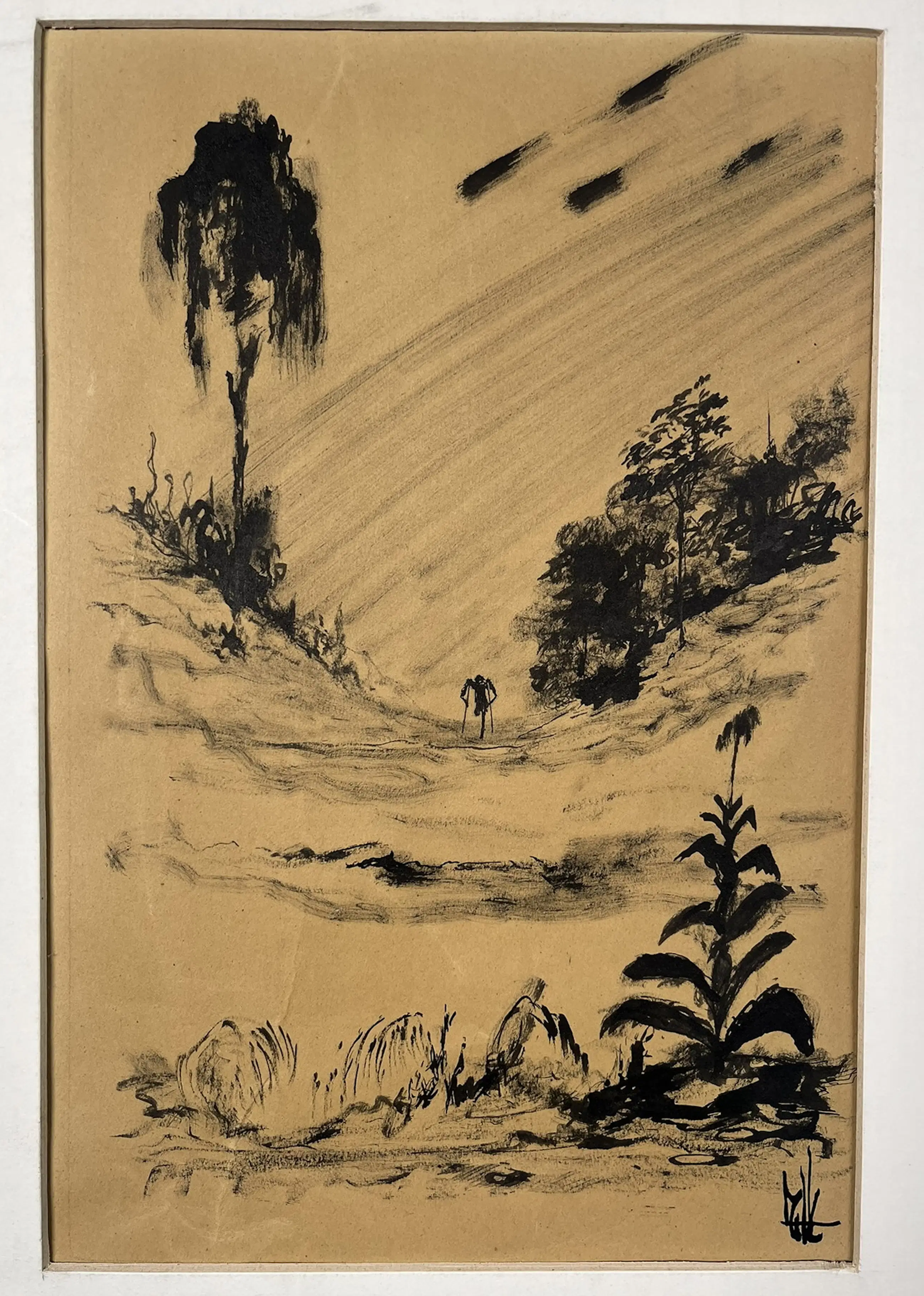 Melle, voluit Melle Oldeboerrigter (1908–1976), was een Nederlandse kunstenaar die vooral bekend werd om zijn fantasierijke en surrealistische schilderijen. Zijn werk kenmerkt zich door levendige kleuren, complexe composities en bizarre, droomachtige taferelen. Hij werkte vaak met symboliek en verbeeldde thema’s als angst, verlangen en de menselijke psyche. Melle was autodidact en liet zich inspireren door zowel de natuur als zijn innerlijke wereld. Tegenwoordig wordt hij beschouwd als een van de meest eigenzinnige en intrigerende surrealisten van Nederland. Formaat voorstelling 27 x 18 cm.