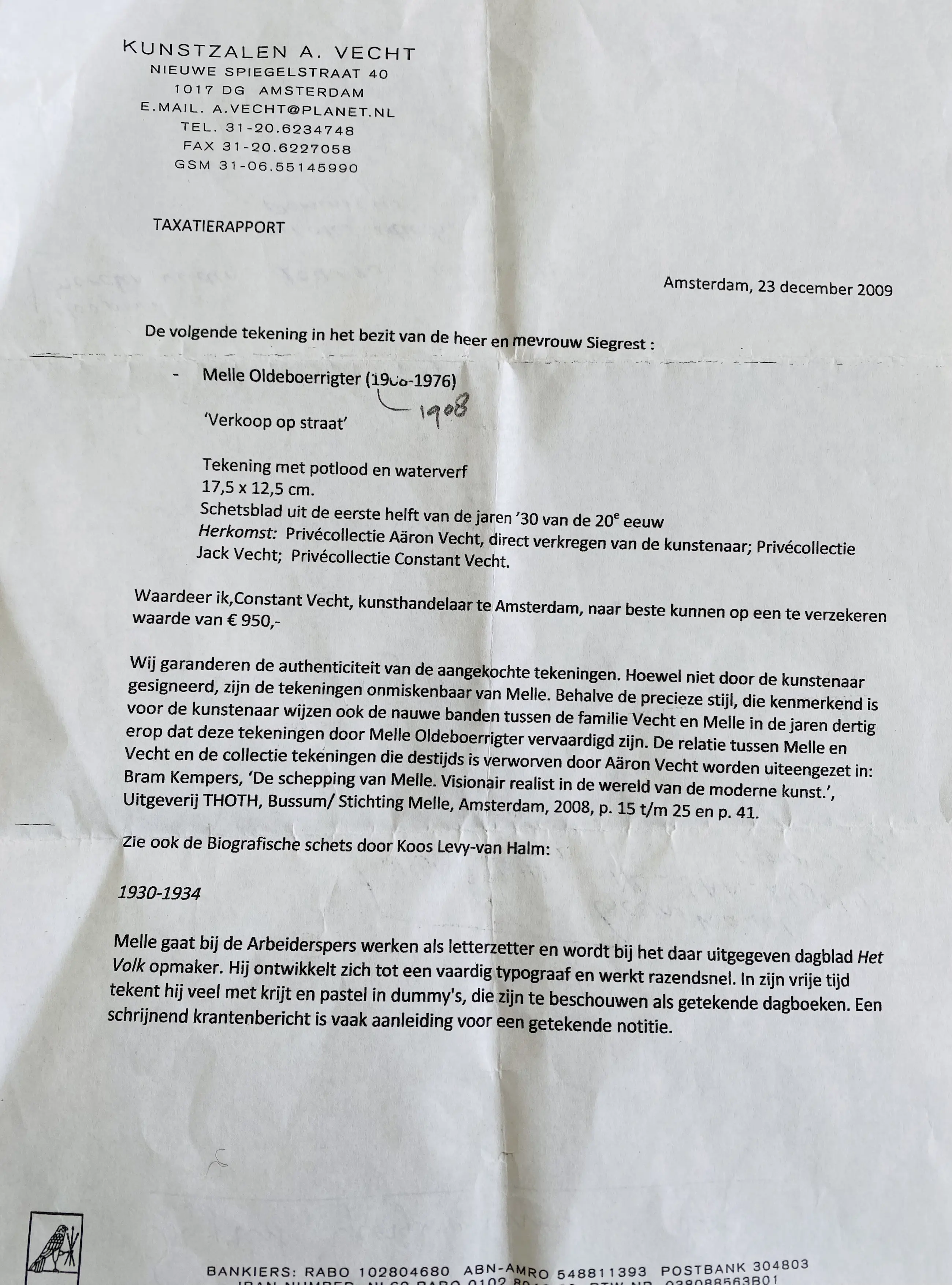 In 2009 heeft Constant Vecht het werk een verzekeringswaarde meegegeven van € 950,-, zie bijgaande foto van het waarderingsdocument.