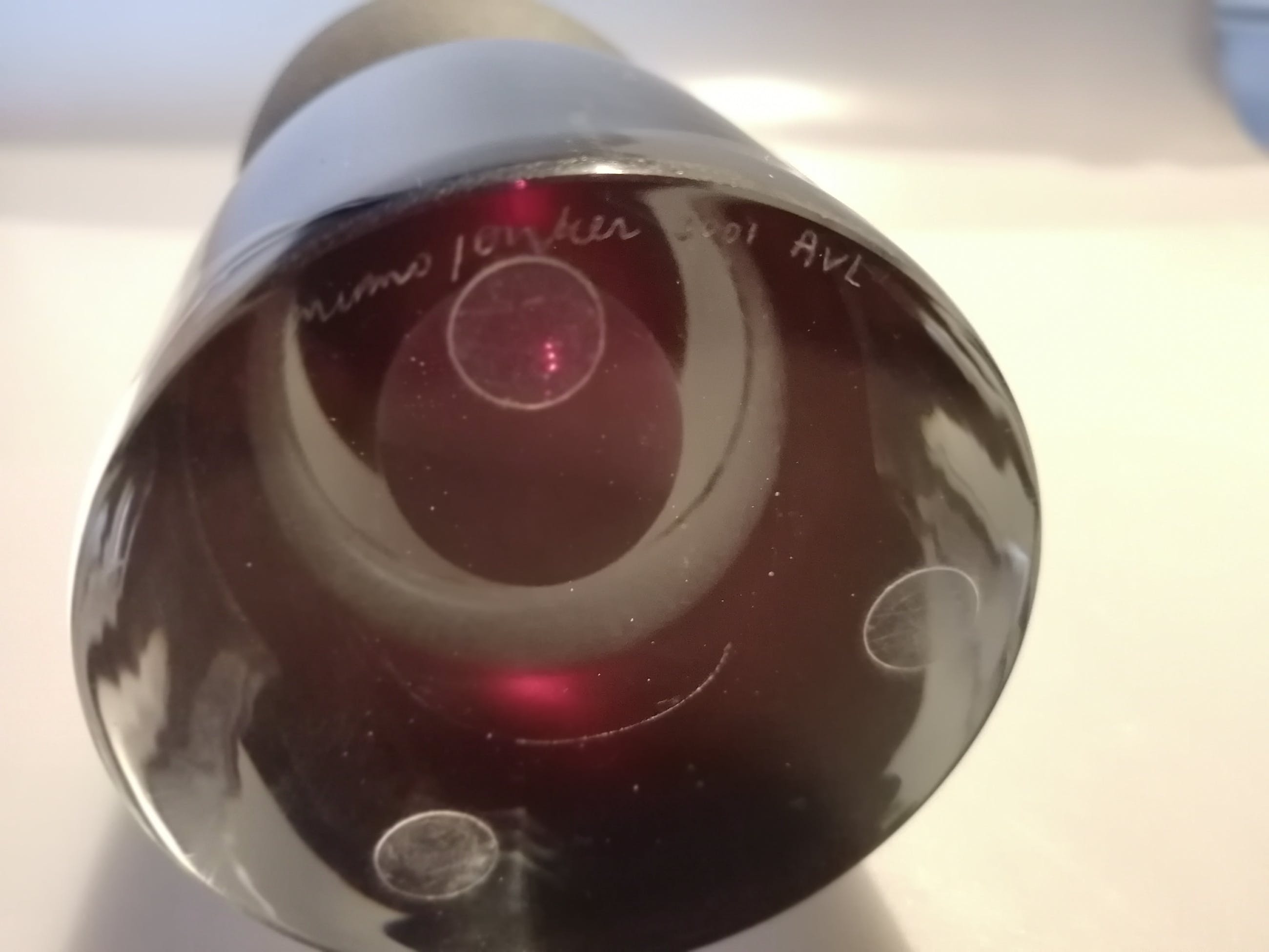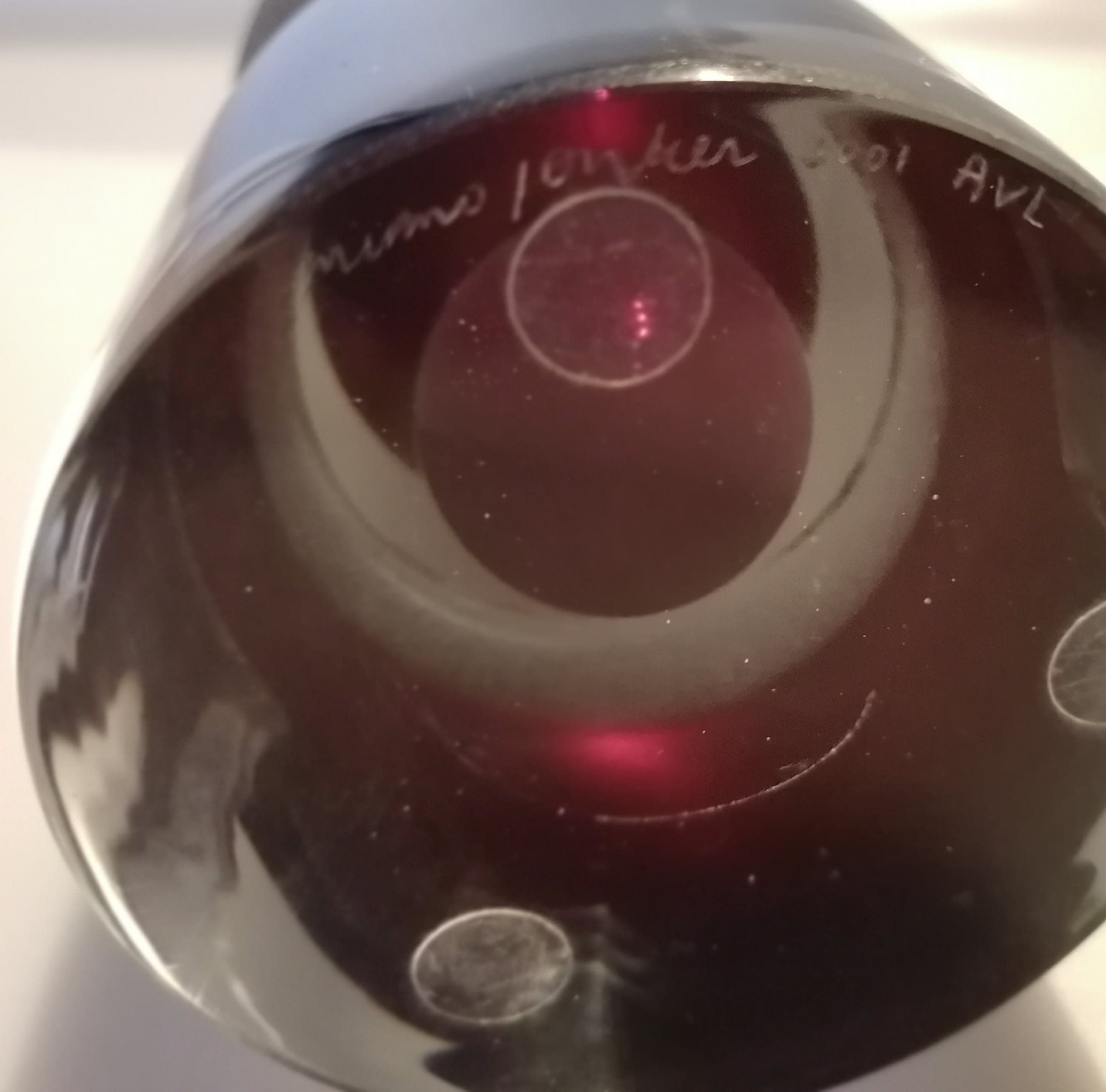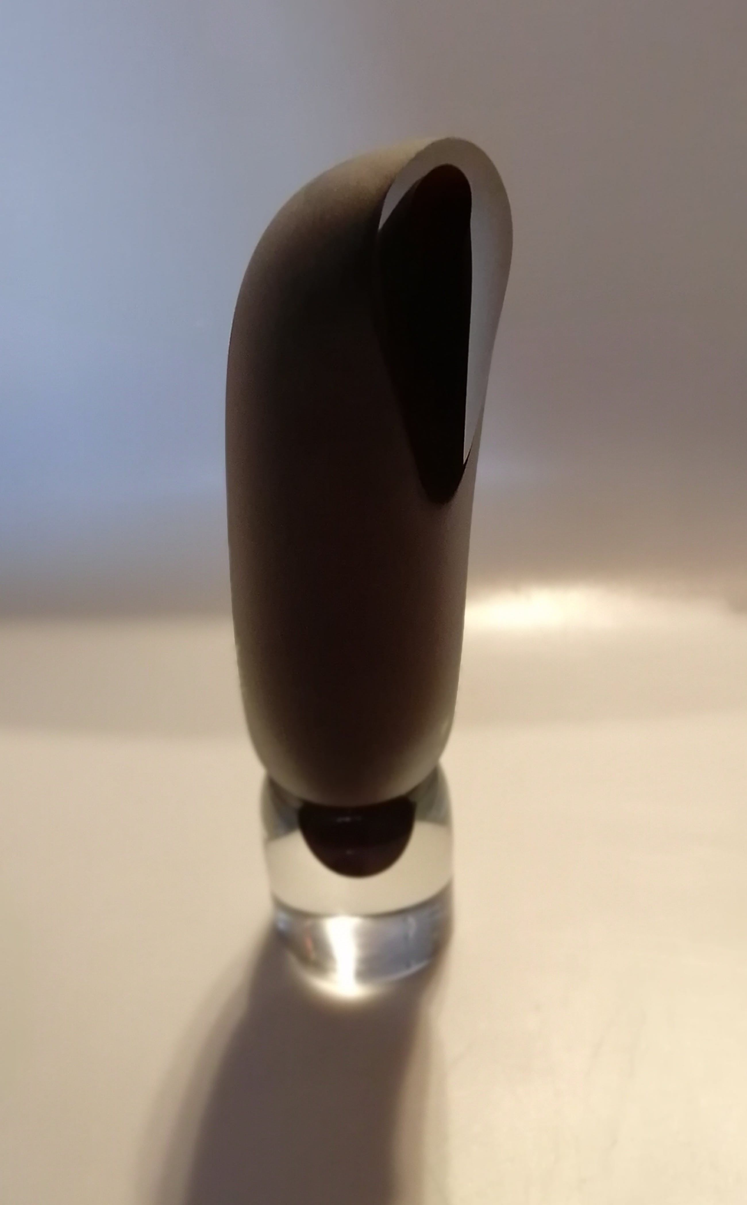 Uiterst fraai glasobject van Menno Jonker uit 2001, geblazen bij de glasblazerij van Nationaal Glasmuseum Leerdam door meesterglasblazer Arie van Loopik.