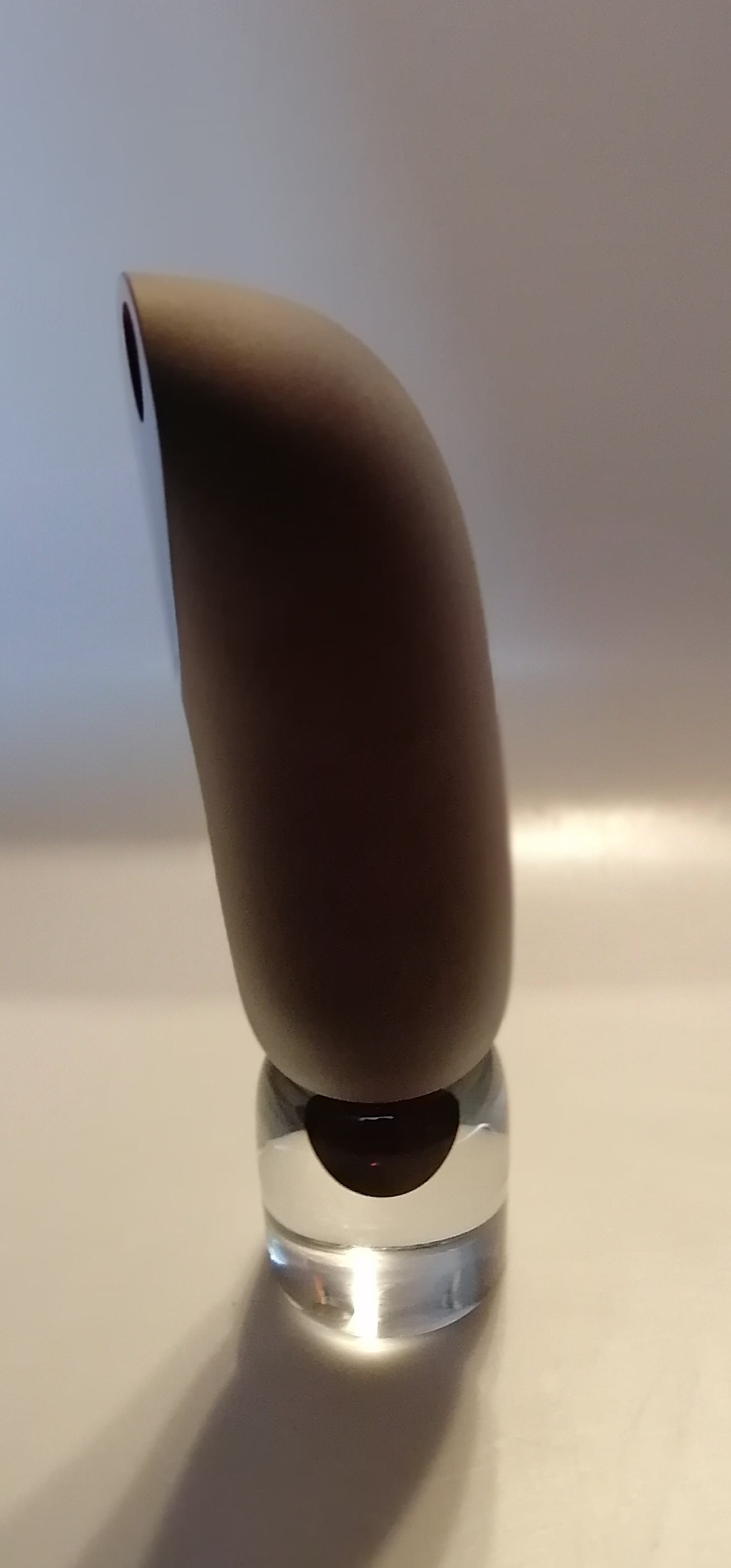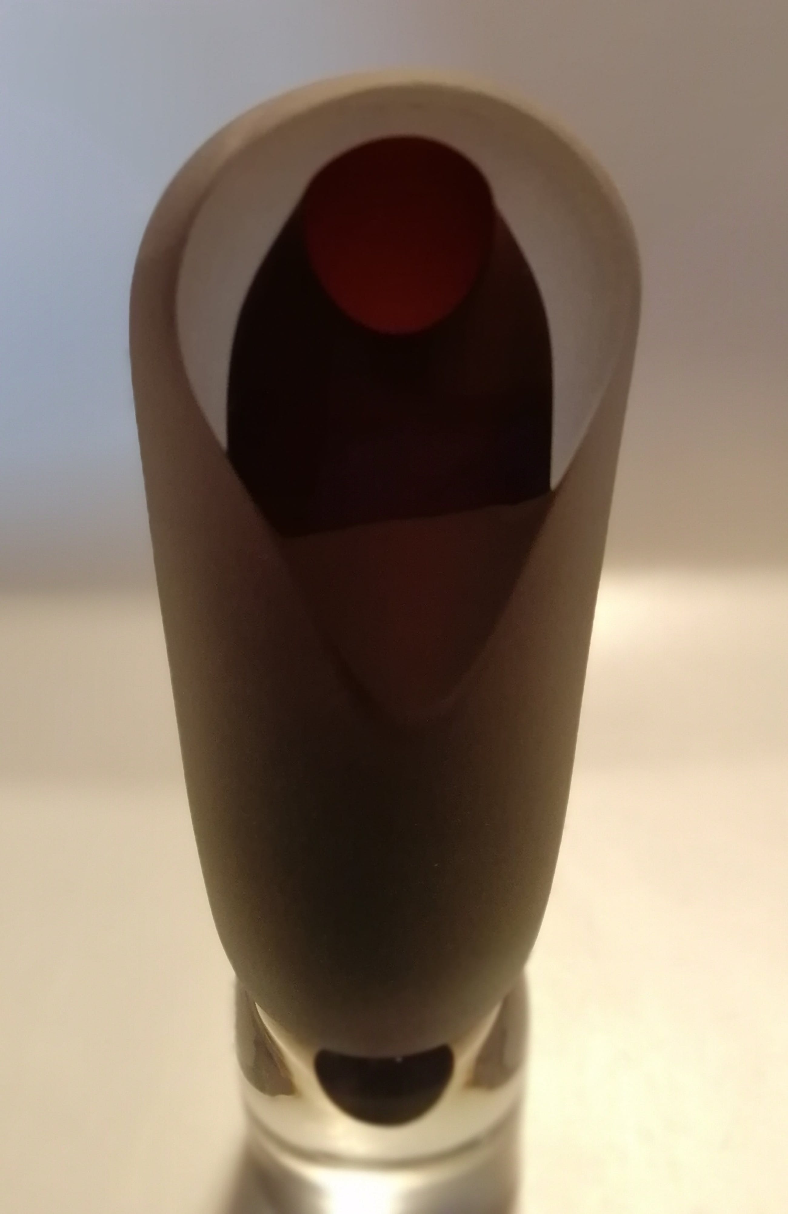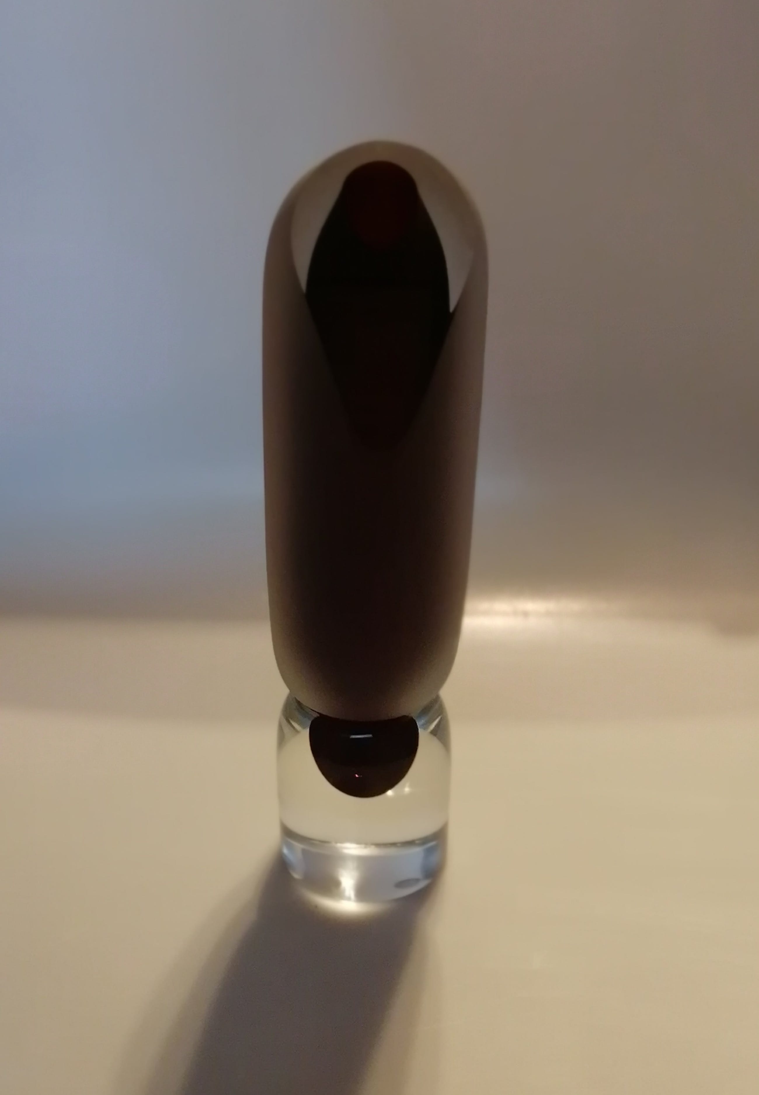 Uiterst fraai glasobject van Menno Jonker uit 2001, geblazen bij de glasblazerij van Nationaal Glasmuseum Leerdam door meesterglasblazer Arie van Loopik.