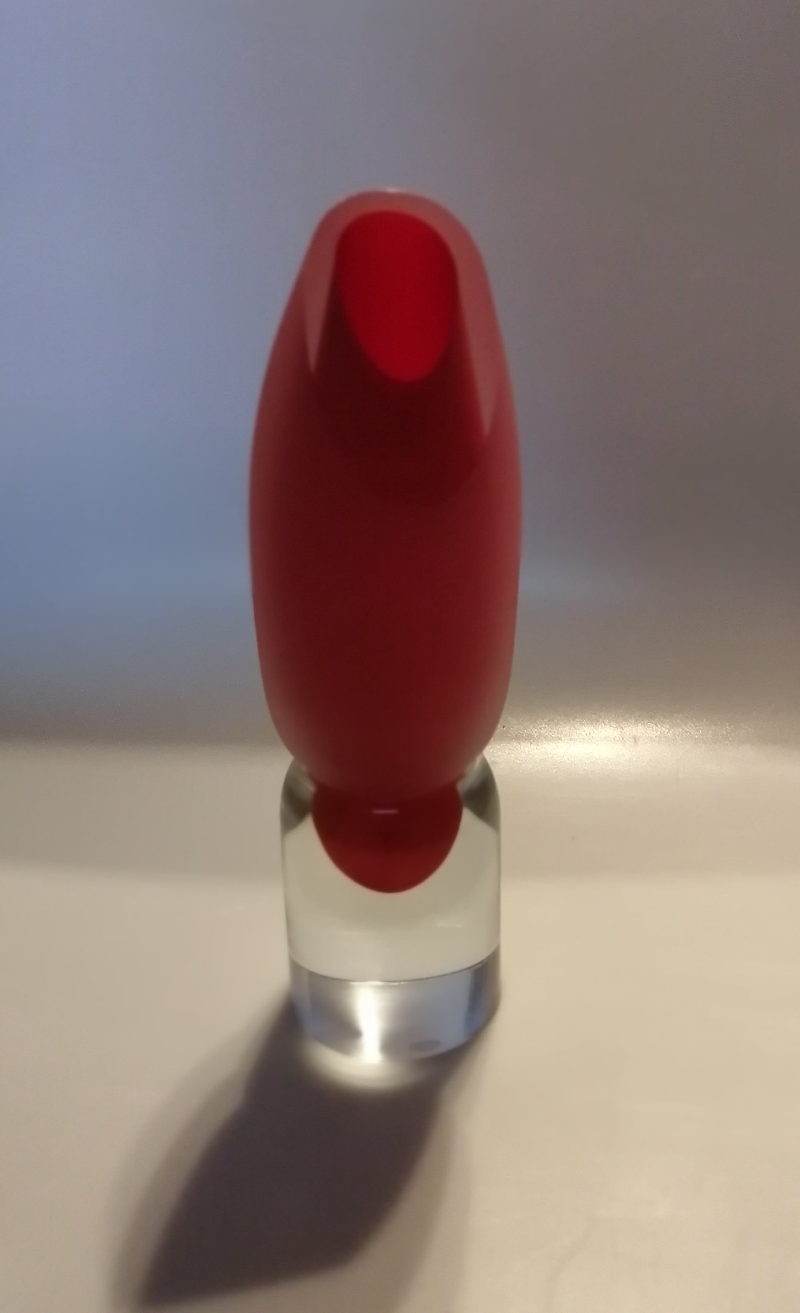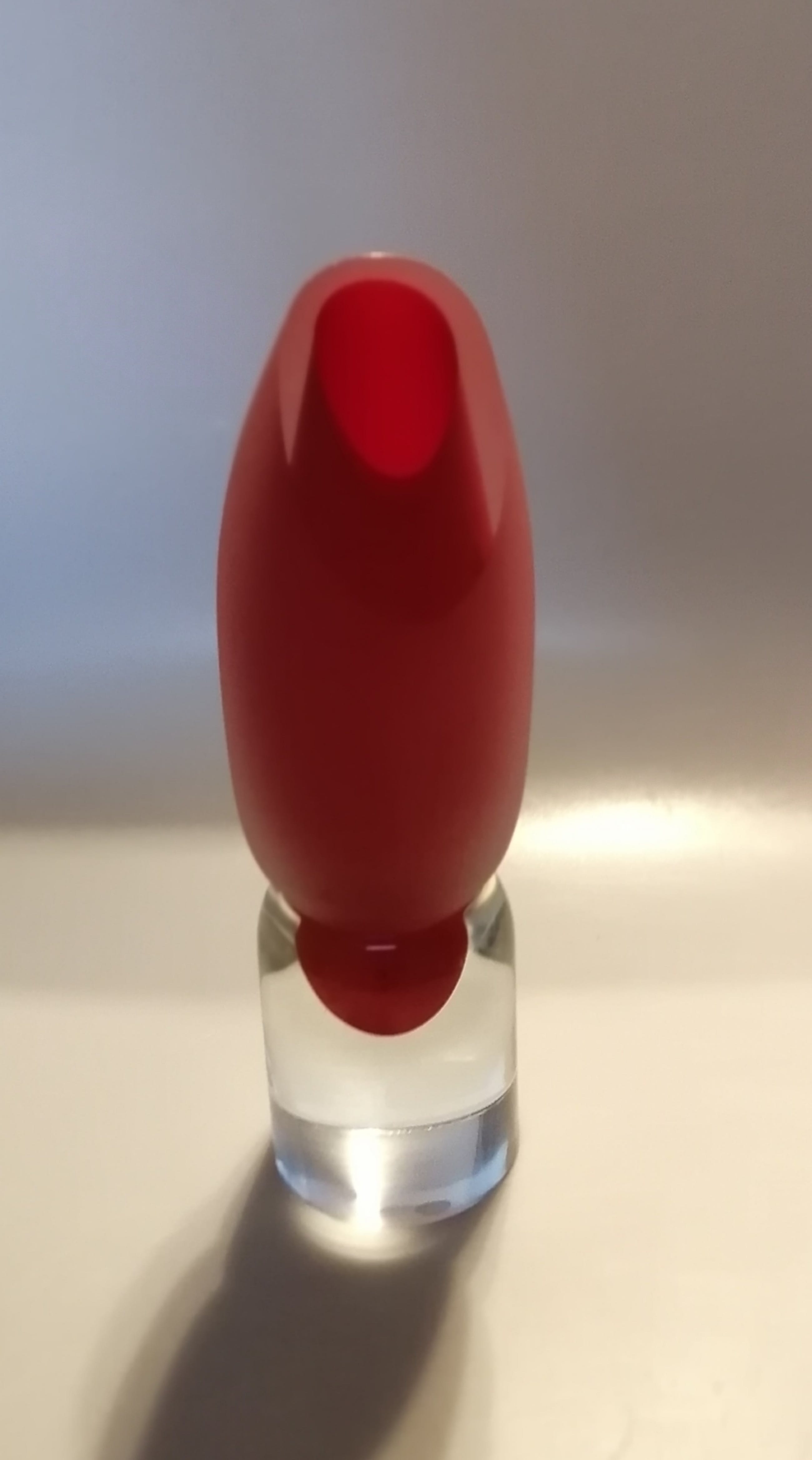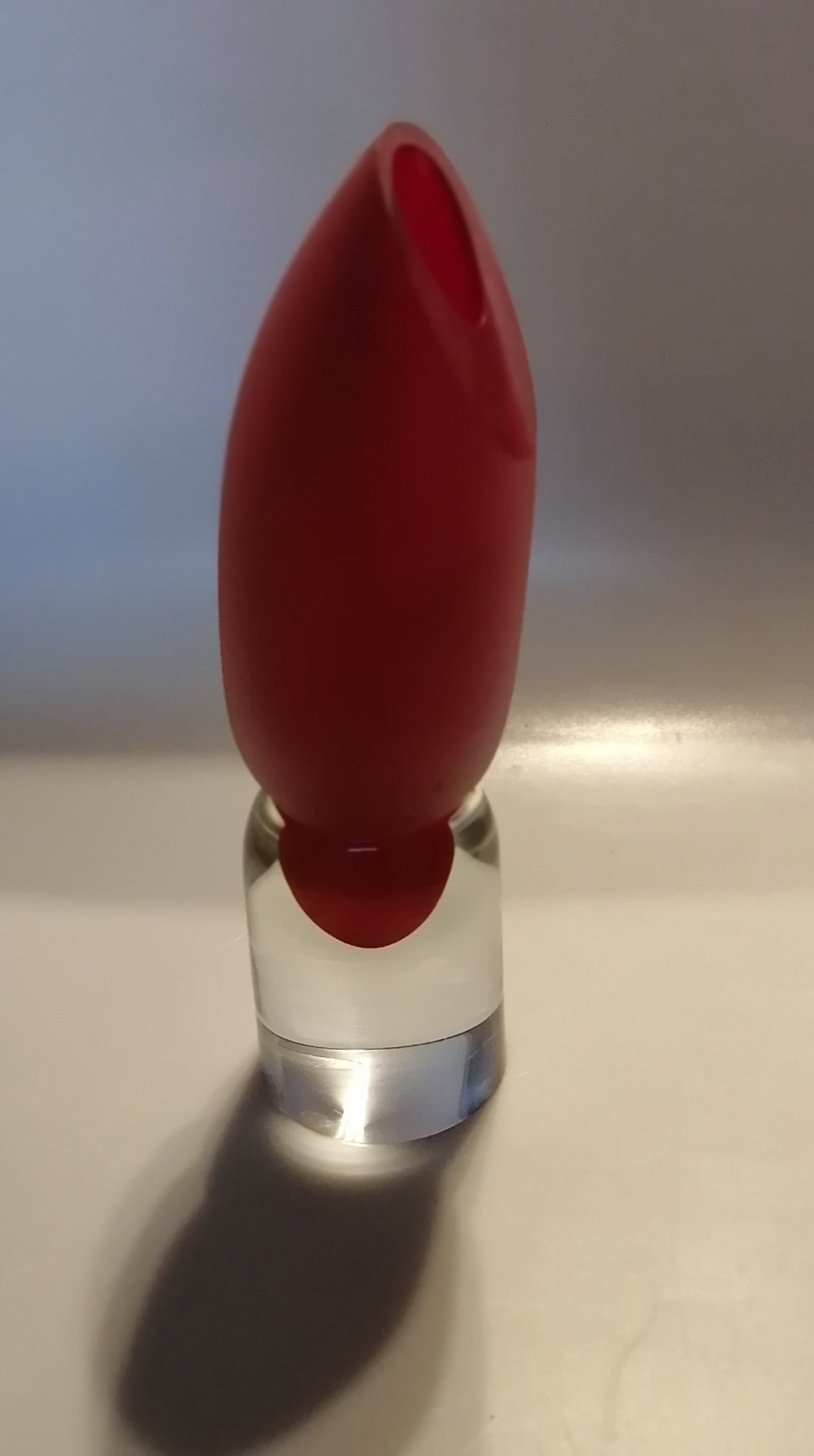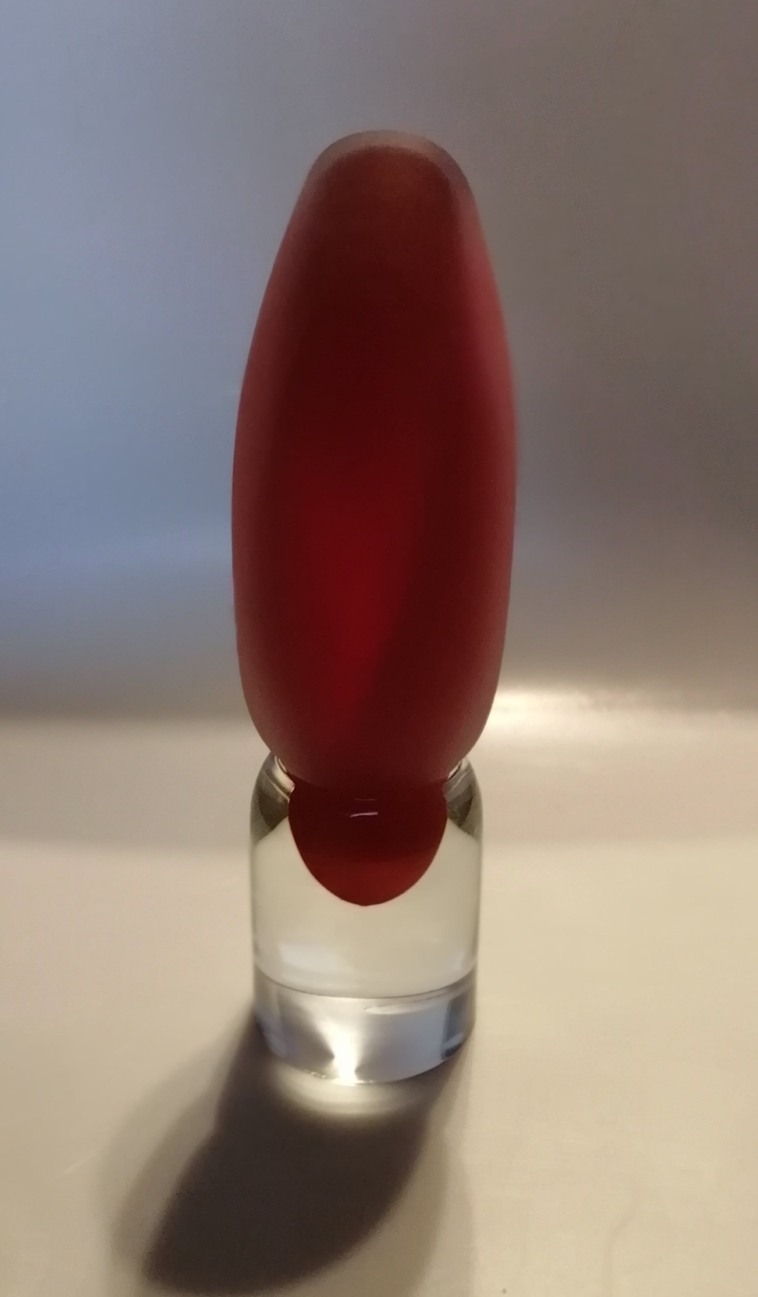 Uiterst fraai glasobject van Menno Jonker uit 2001, geblazen bij de glasblazerij van Nationaal Glasmuseum Leerdam door meesterglasblazer Arie van Loopik. Is handgesigneerd