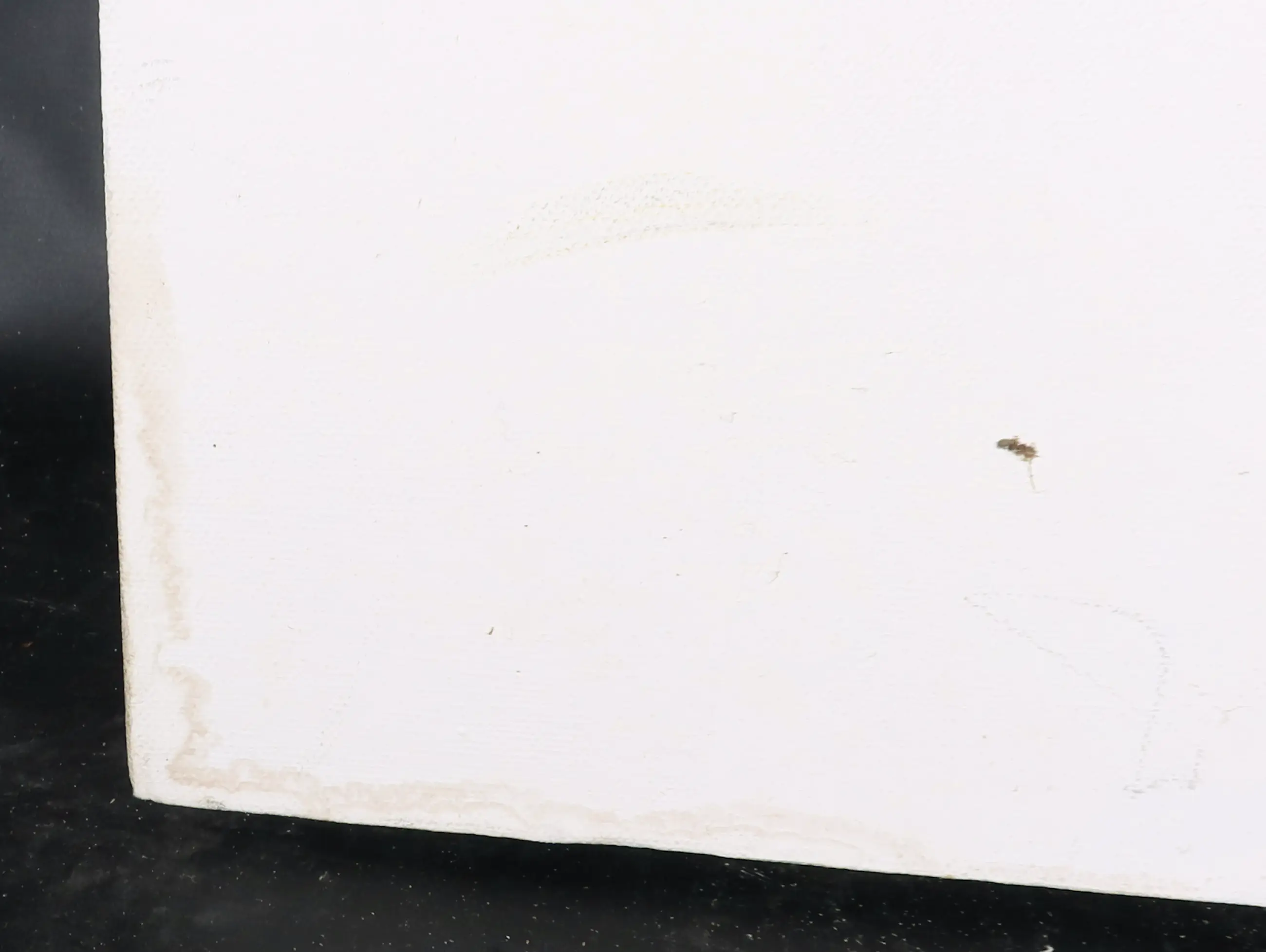 | Het werk is vuil en heeft daarnaast aan de onderzijde wat vochtschade. dit is met name evident aan de achterzijde van het werk, eveneens is dit in lichte mate zichtbaar aan de voorzijde linksonder. Zie de detailfoto's voor een indruk van de huidige staat van het werk. | |