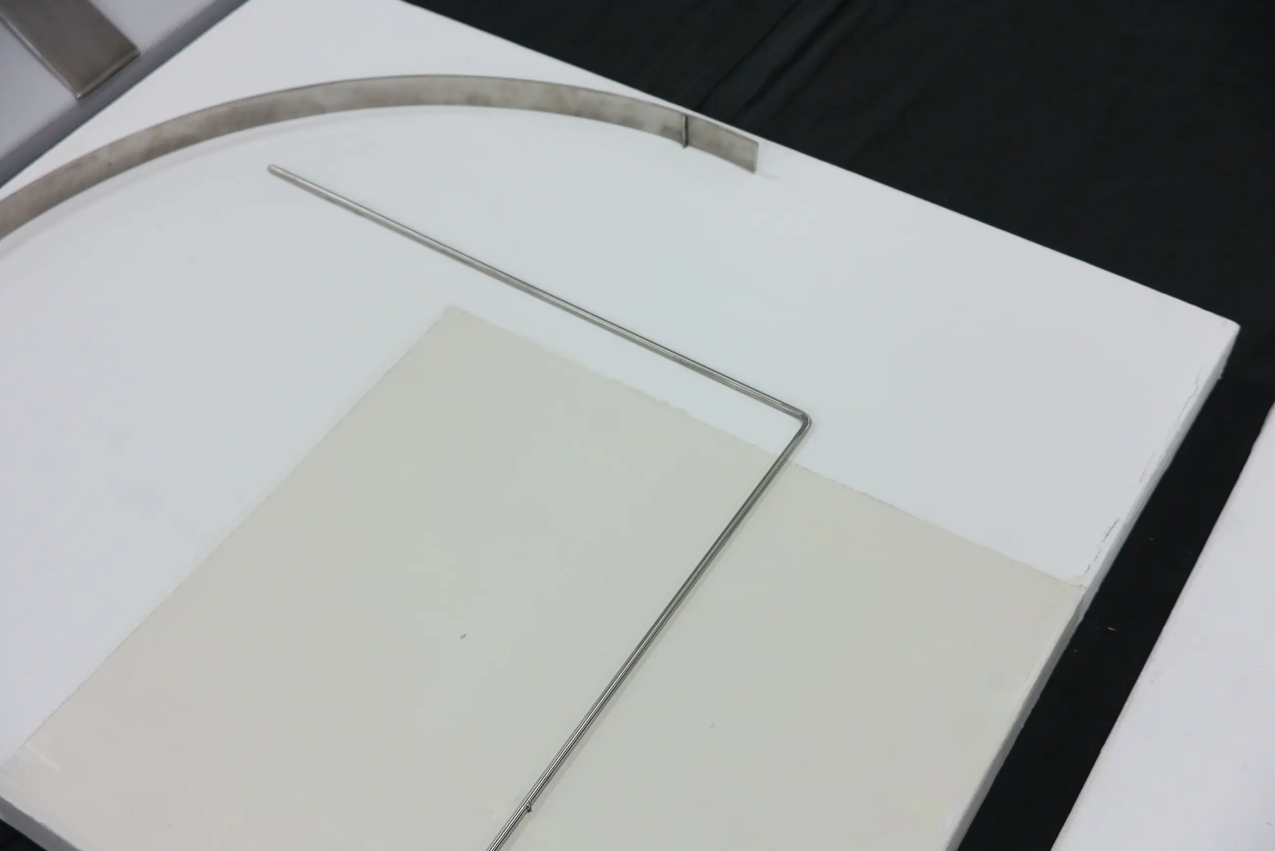 | Hier en daar wat lichte beschadigingen, vuil en/of oneffenheden. De metalen elementen zijn door het doek heen geprikt, maar zitten wat los. | |