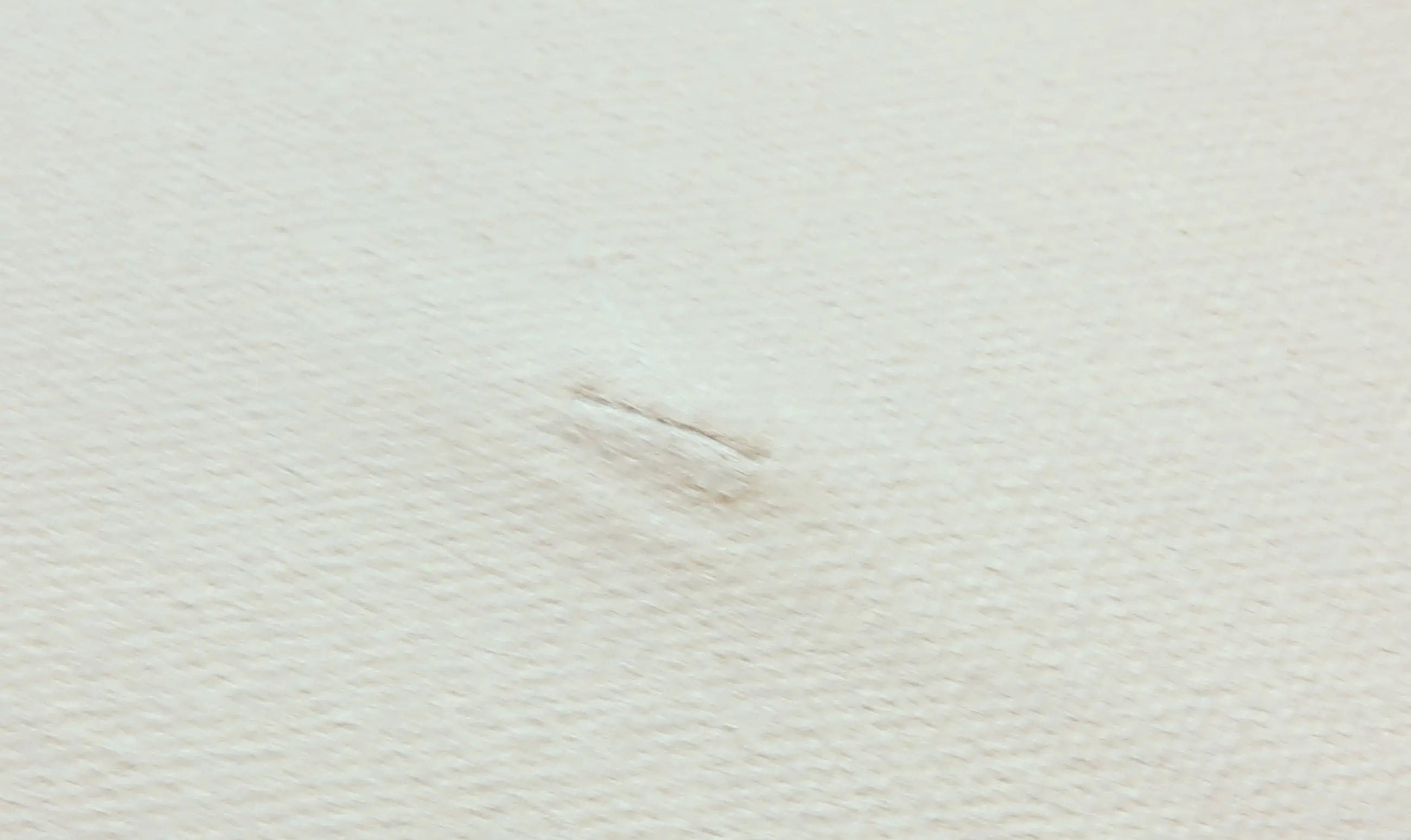 Enkele zeer minimale slijtagesporen. Op een plek is de verflaag onregelmatig, onduidelijk of dit een beschadiging betreft. (Zie detailfoto's)