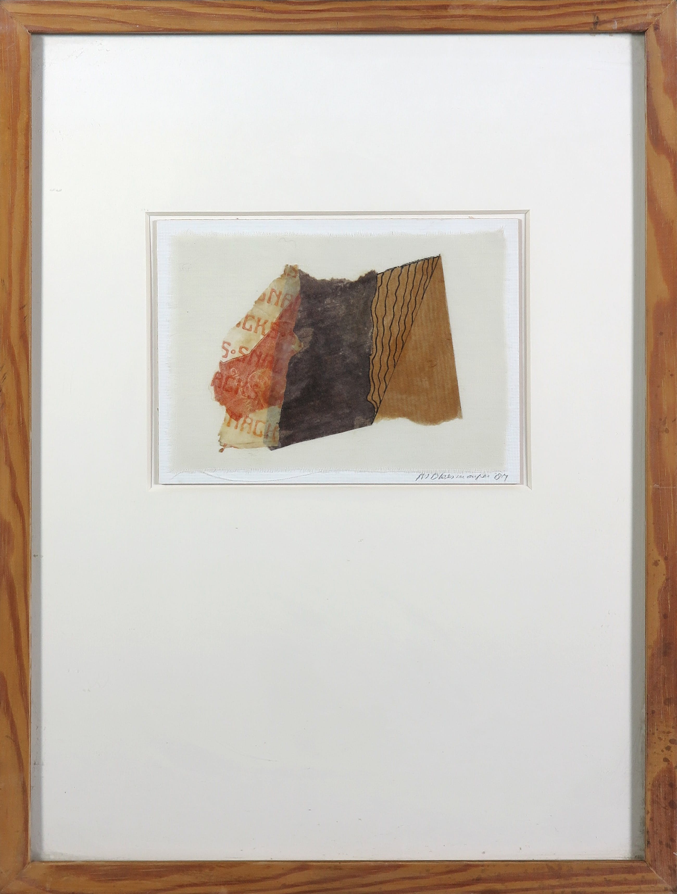 Een kleine rafel aan de onderste rand van de collage. Meerdere stofjes/vuiltjes achter het glas. | |||||||||||