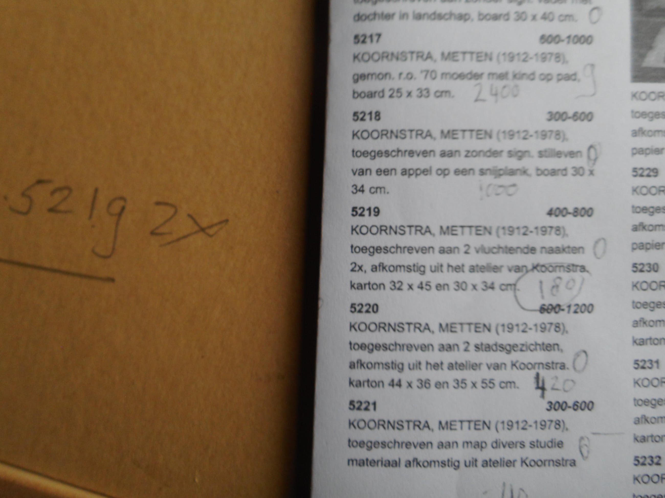In juni 2009 veilde "DE ELAND" in Diemen het gehele atelier van Metten Tenny Koornstra. Dit werk ( cat.nr. 5219 ) is in die veiling door de huidige verkoper gekocht - zie ook die foto's.Mette