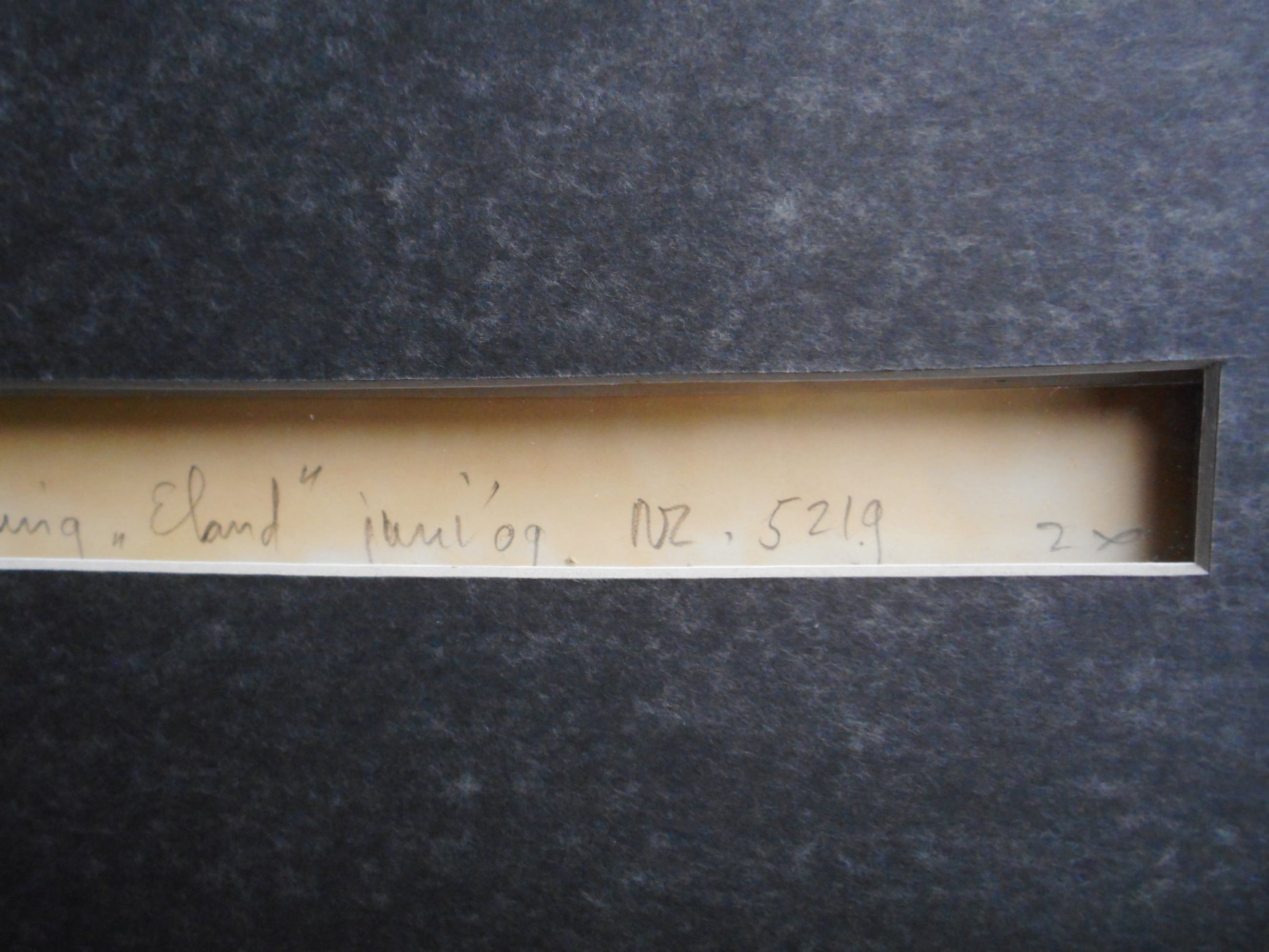 In juni 2009 veilde "DE ELAND" in Diemen het gehele atelier van Metten Tenny Koornstra. Dit werk ( cat.nr. 5219 ) is in die veiling door de huidige verkoper gekocht - zie ook die foto's.Mette