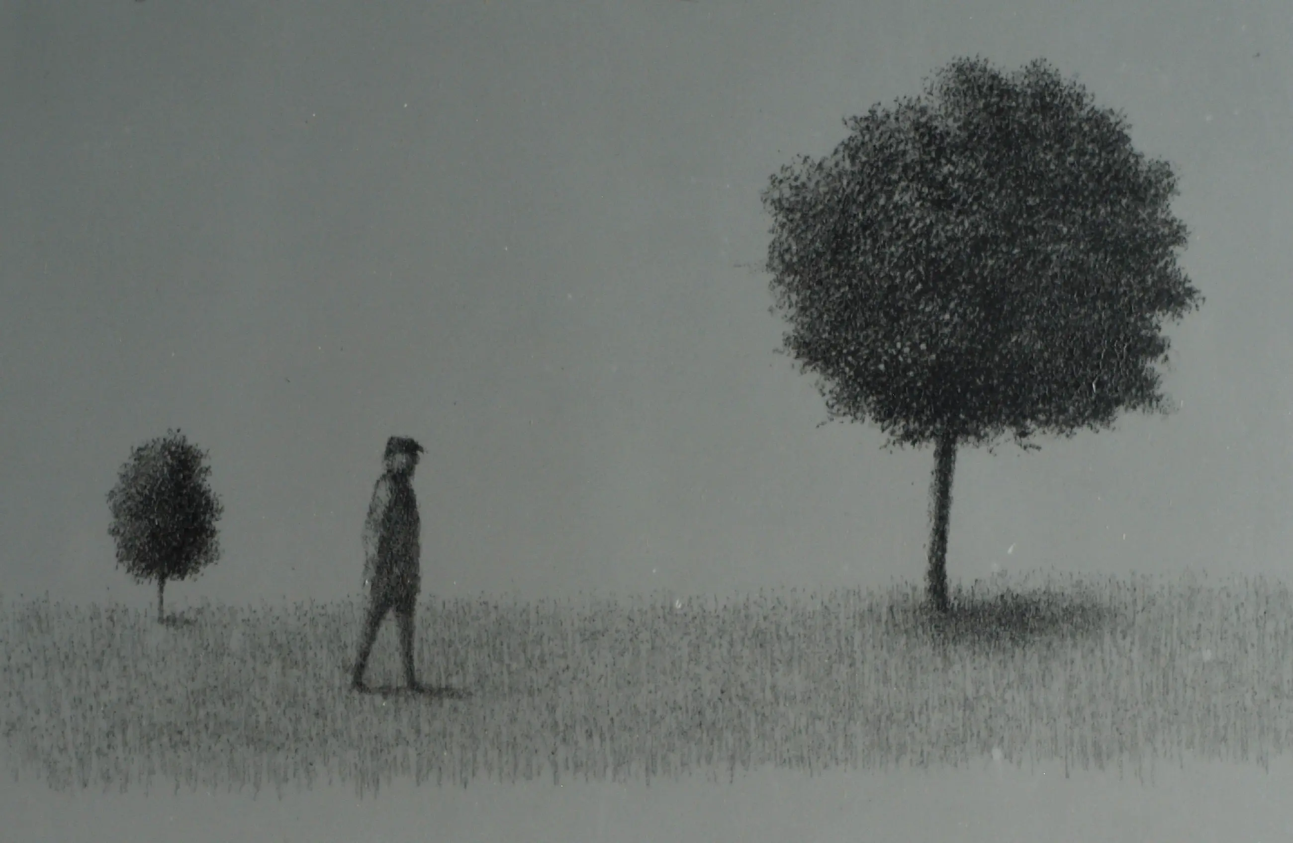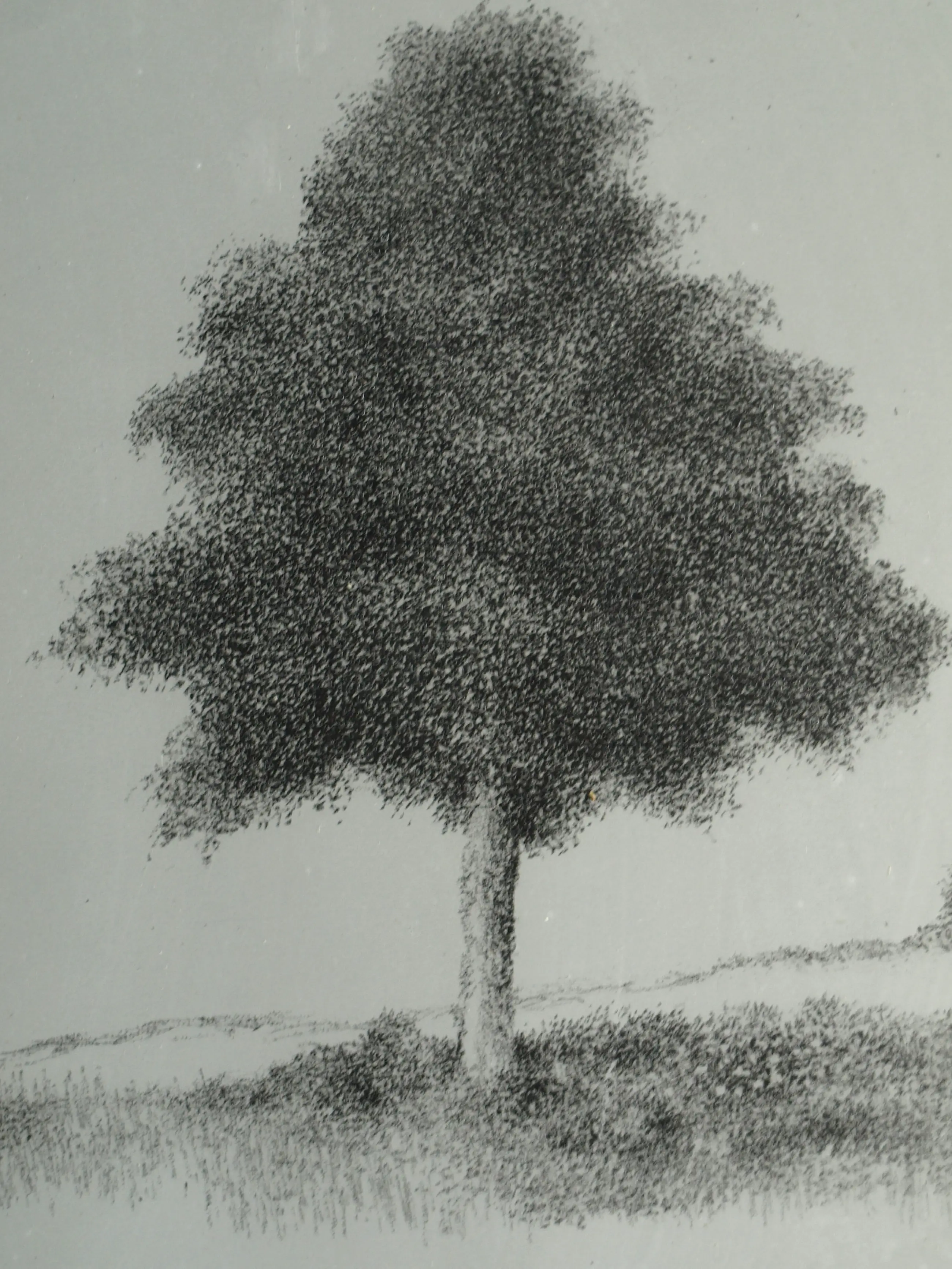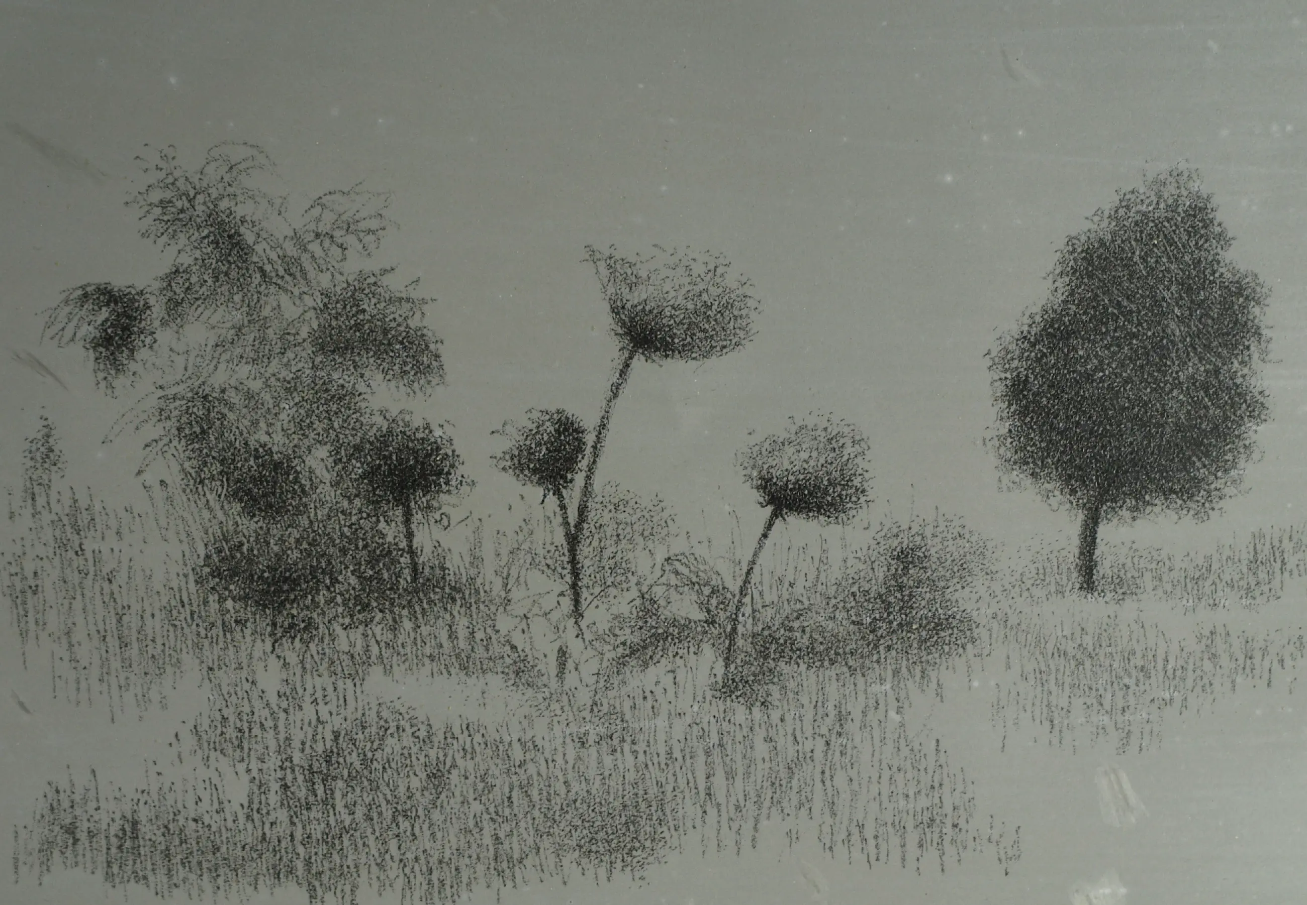 Metten Koornstra maakte zijn tekening rechtstreeks op deze plaat. Op de plaat zit nog de drukinkt, waardoor de afbeelding duidelijk te zien is. De afbeelding op de drukplaat is het spiegelbeeld van de afbeelding op de later gedrukte litho.