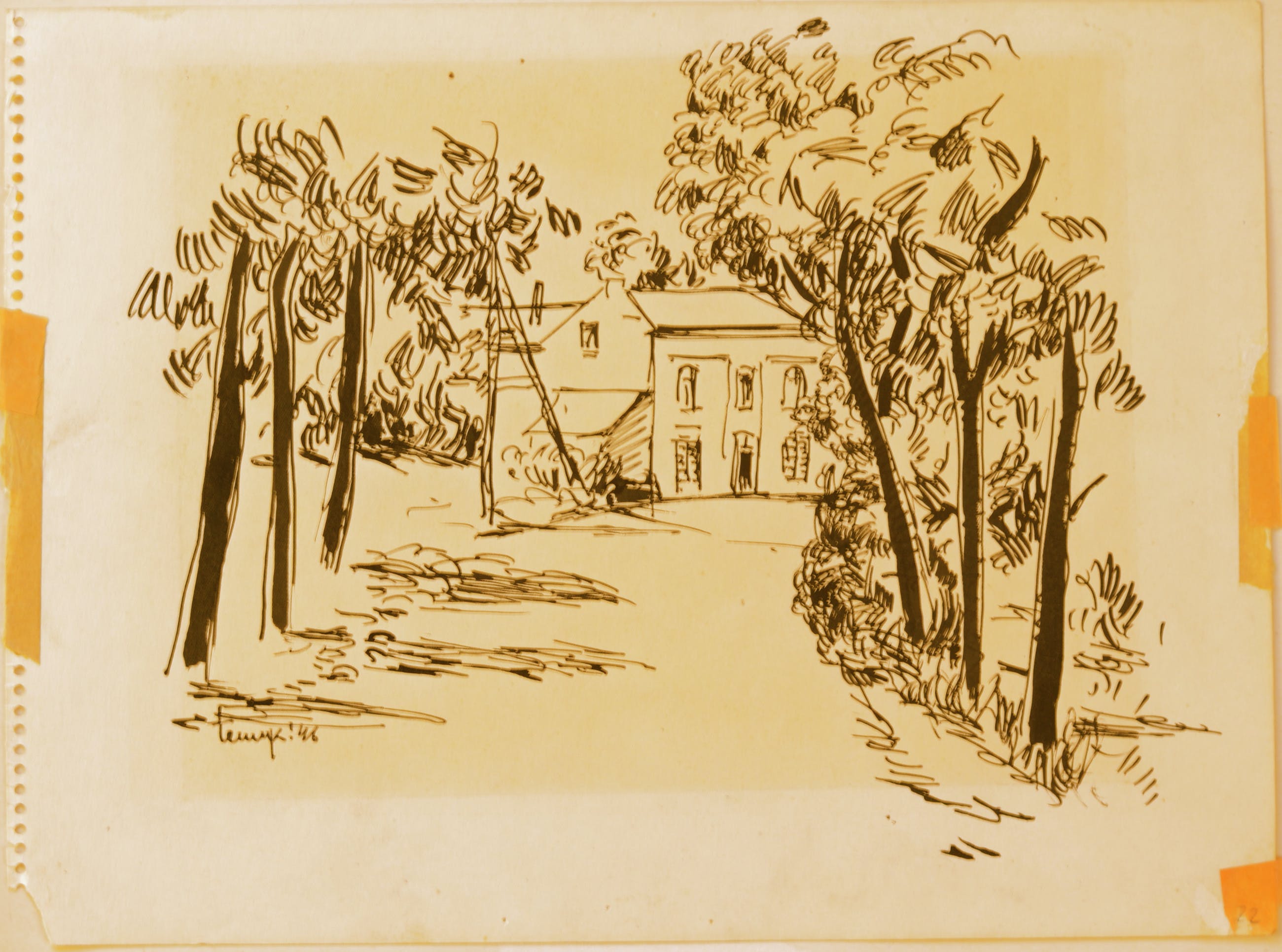 Tekening 1: Mooi landschapje, ondertekend rechtsonder "TeunisK 45" (kan ook '46 zijn). 16 x 18 cm. Tekening 2: Bos, rivier? Niet gesigneerd. 20 x 25,5 cm. Tekening 3 : Bomenlaan met huis, gesigneerd linksonder "TeunisK'46". Bij dit werkje is naast pen ook potlood gebruikt. Ingelijst geweest en daardoor gedeeltelijk echt vergeeld. 23 x 31 cm.