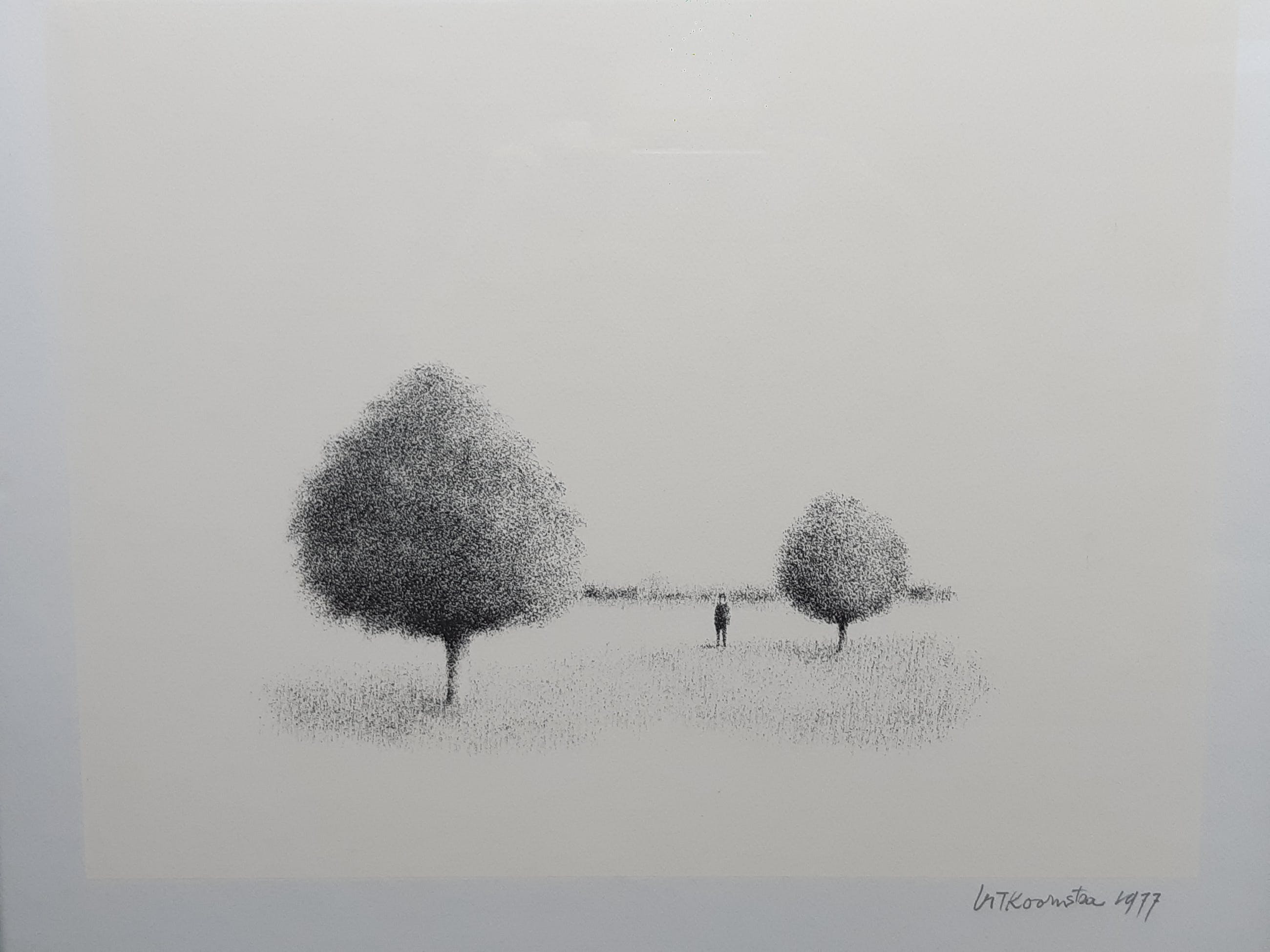 Gesigneerde en gedateerde litho gemaakt door Metten Theunis Koornstra. Leuk werk dat zo aan de muur kan worden gehangen. Metten Koornstra is geboren te Rotterdam in 1912 en overleden te Amsterdam in 1978. Metten Koornstra heeft in Rotterdam aan de academie voor beeldende kunsten een opleiding gevolgd. Hij woonde en werkte in Rotterdam en Parijs en vanaf 1937 in Amsterdam. Metten Koornstra was een graficus en kunstschilder van verstilde landschappen en figuren. Daarnaast maakte hij vele illustraties voor boeken en ontwierp hij boekomslagen en theaterdecors. Verschillende musea hebben werk van Metten Koonstra waaronder het Stedelijk Museum Amsterdam.