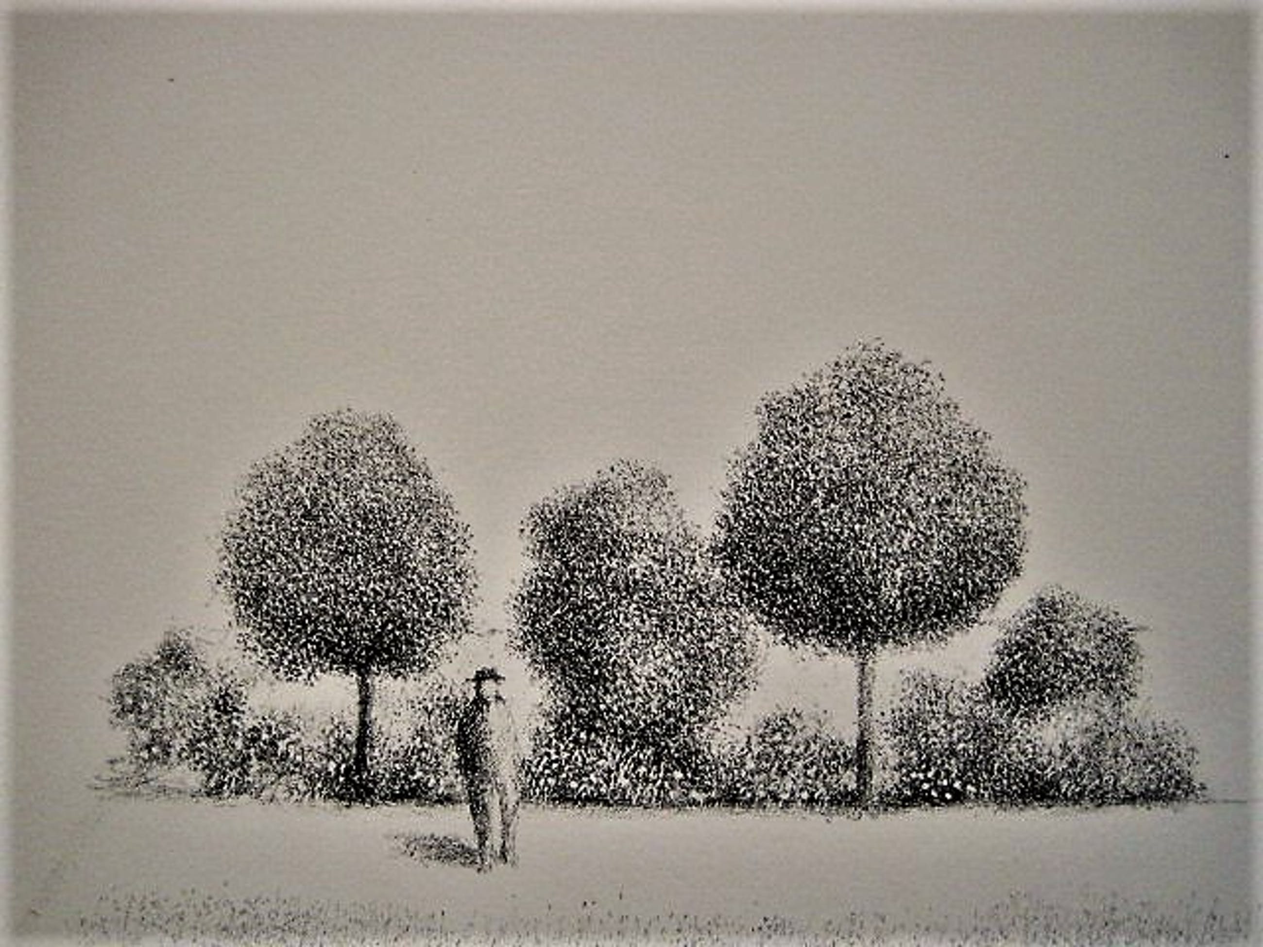 Metten Koornstra - meester van de verstilling - Litho Man in landschap - gesigneerd - jaren 60 - Verkocht