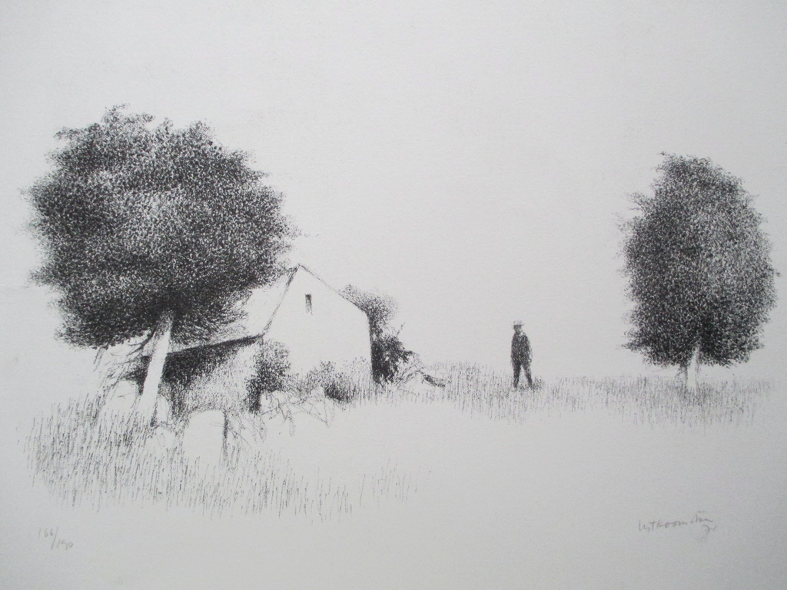 Litho op zwaar geschept papier van Metten Koornstra uit 1971, genummerd 166/190, gesigneerd in potlood. Afm. blad 65x51 cm, beeld ca 35x19 cm. Dit lijkt mij een werk uit de prent 190 serie.