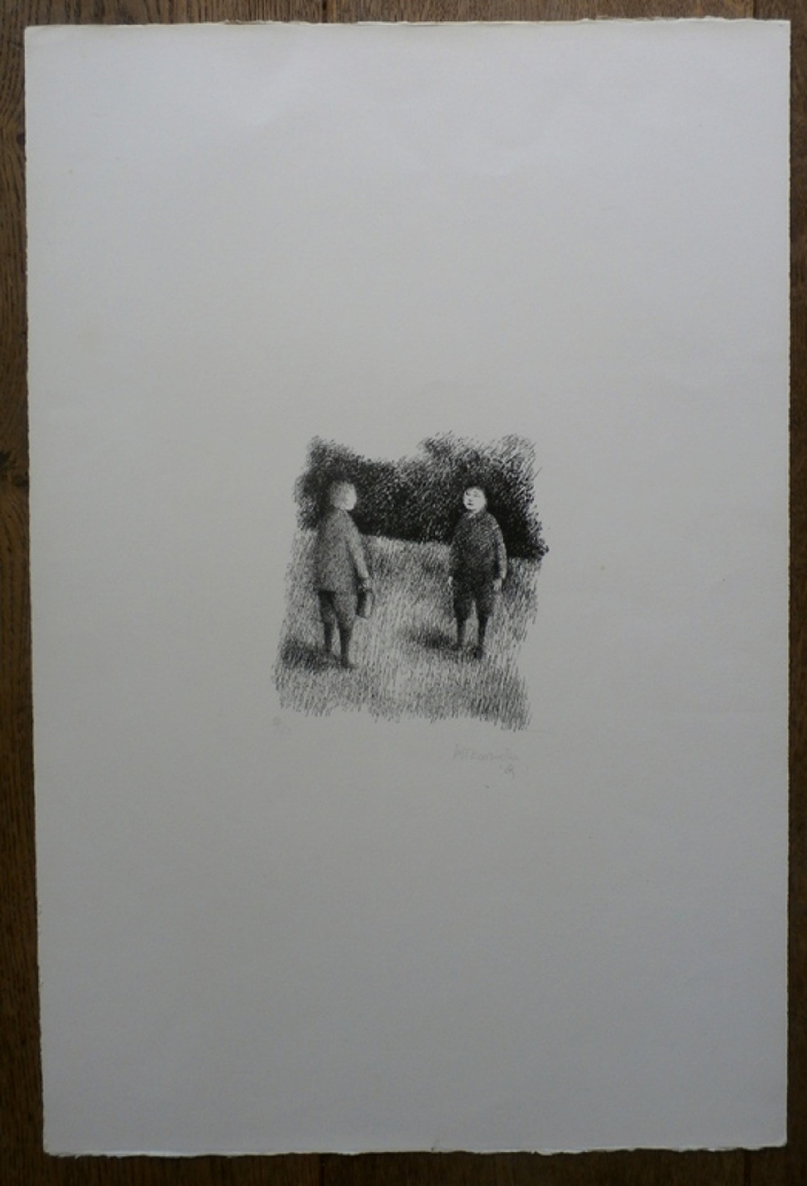 Litho van Metten Koornstra uit 1969. Titel: 2 figuren in landschap. Nummer: 24/90. Afmetingen blad: H57 x b38,5 cm. Afmetingen voorstelling: H14,5 x b13 cm. Conditie: in goede staat. De authenciteit van dit werk wordt volledig gegarandeerd. Een certificaat van echtheid kan, op aanvraag, worden meegeleverd.