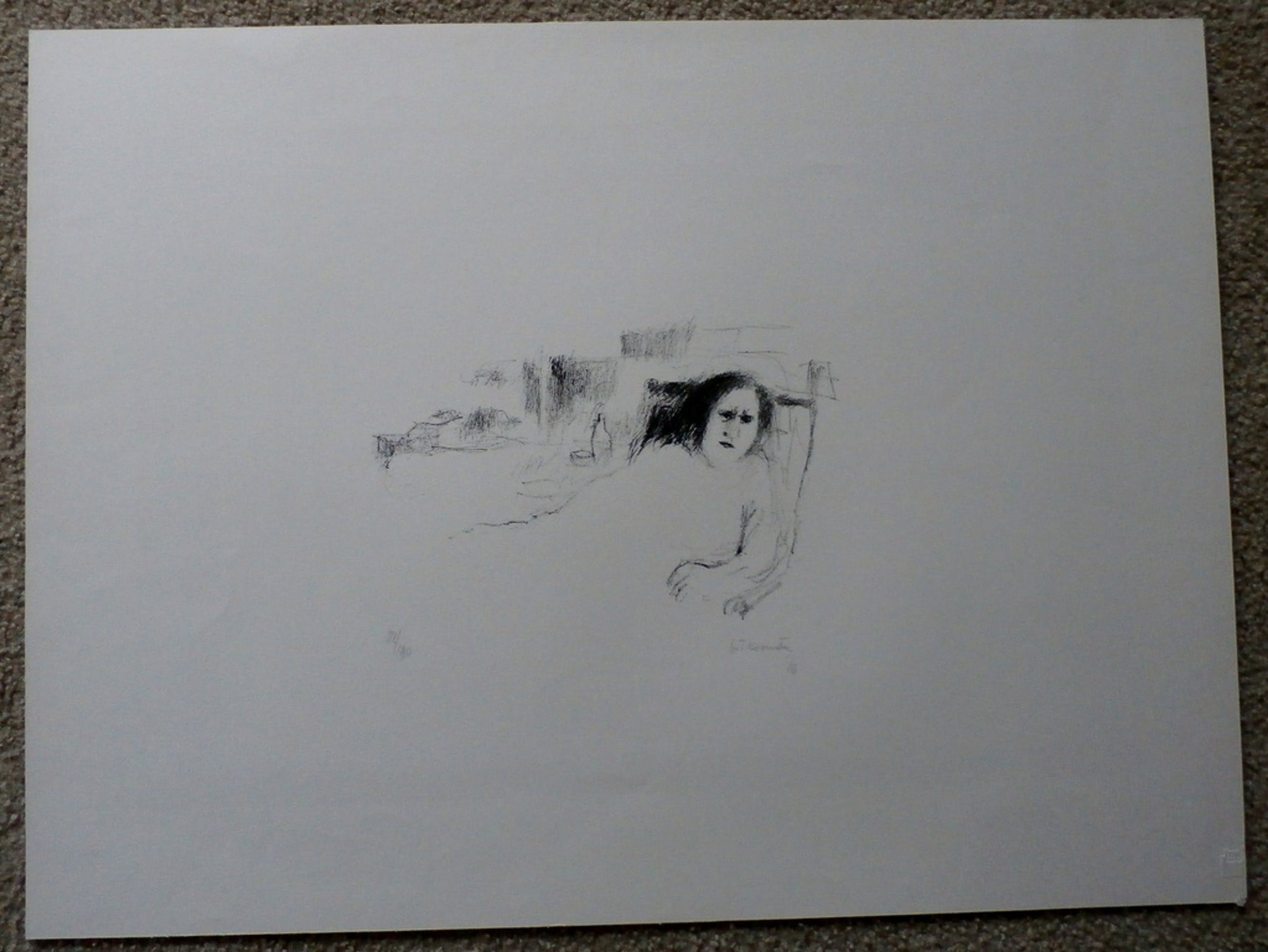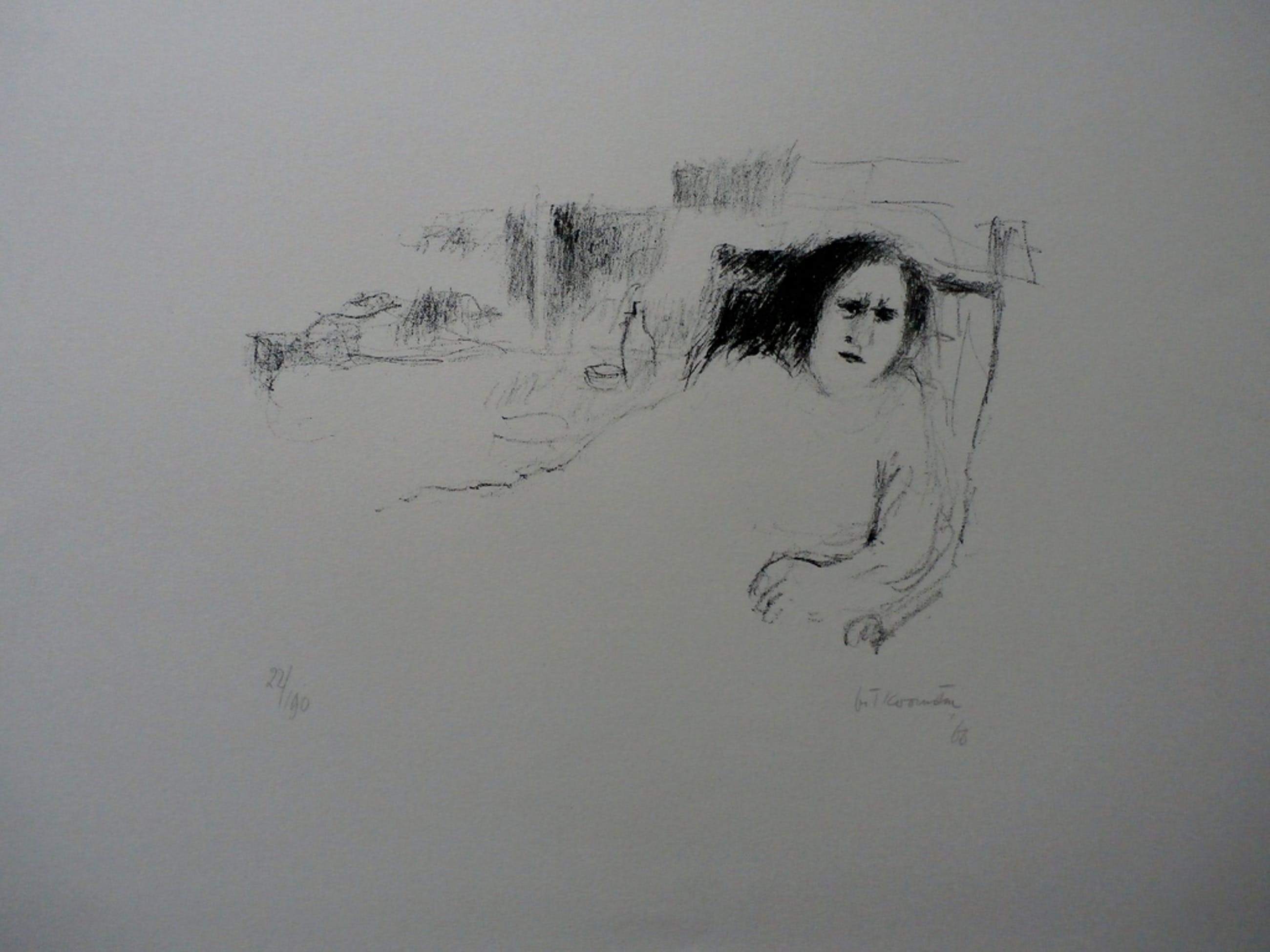 Mooie litho van Metten Koornstra: vrouw in stoel. .Gesigneerd met potlood. Jaar: 1960. Nummer: 22/190. Afmetingen blad: H48 x b63,5 cm. De authenciteit van dit werk wordt volledig gegarandeerd. Een certificaat van echtheid kan, op aanvraag, worden meegeleverd. Uitgave: Prent 190.