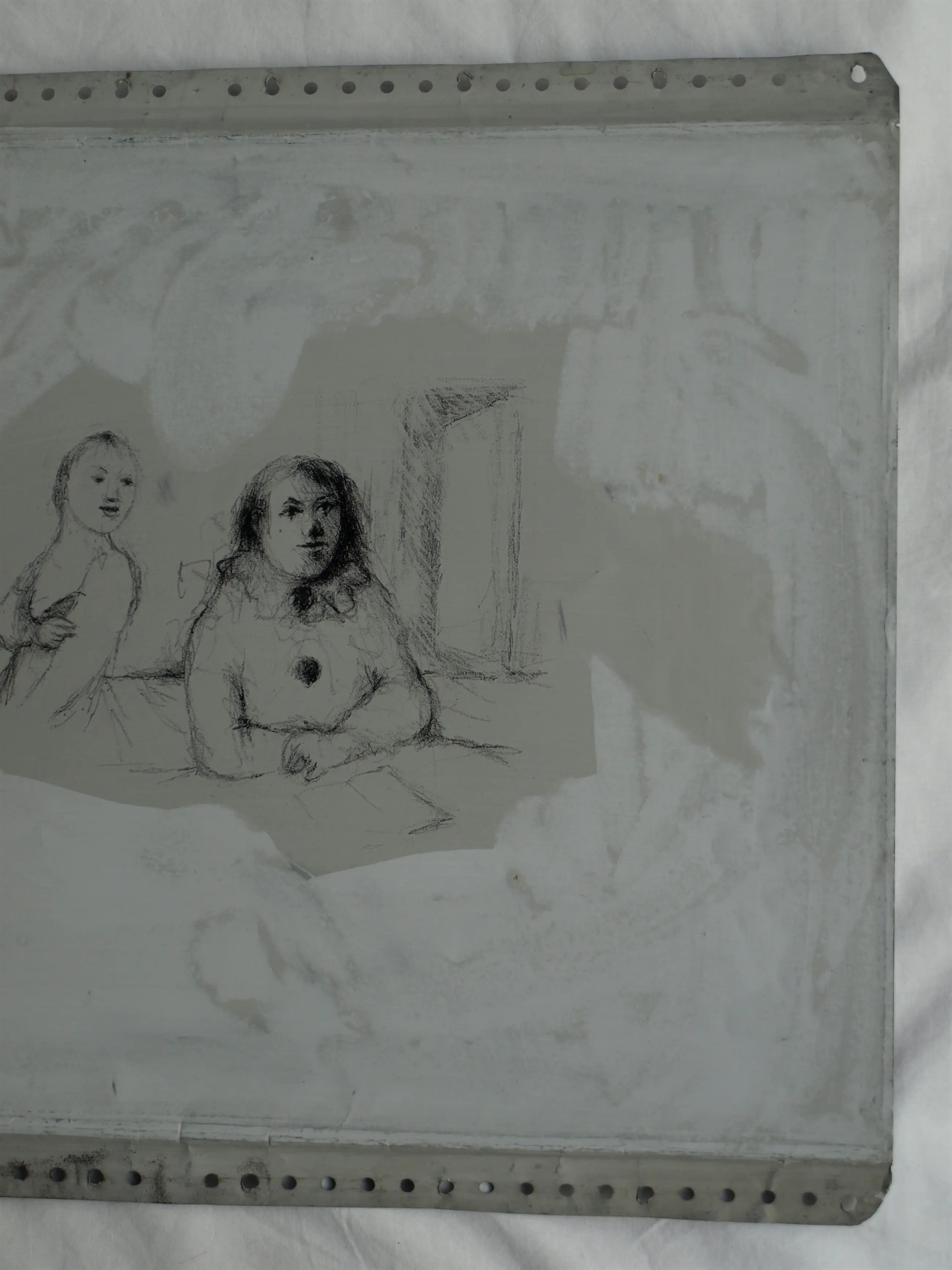 Metten Koornstra maakte zijn tekening rechtstreeks op deze plaat. Op de plaat zit nog de drukinkt, waardoor de afbeelding duidelijk te zien is. De afbeelding op de drukplaat is het spiegelbeeld van de afbeelding op de later gedrukte litho. Het is mij onduidelijk of deze litho ooit is uitgegeven. Ik heb geen afdrukken van deze afbeelding kunnen vinden....