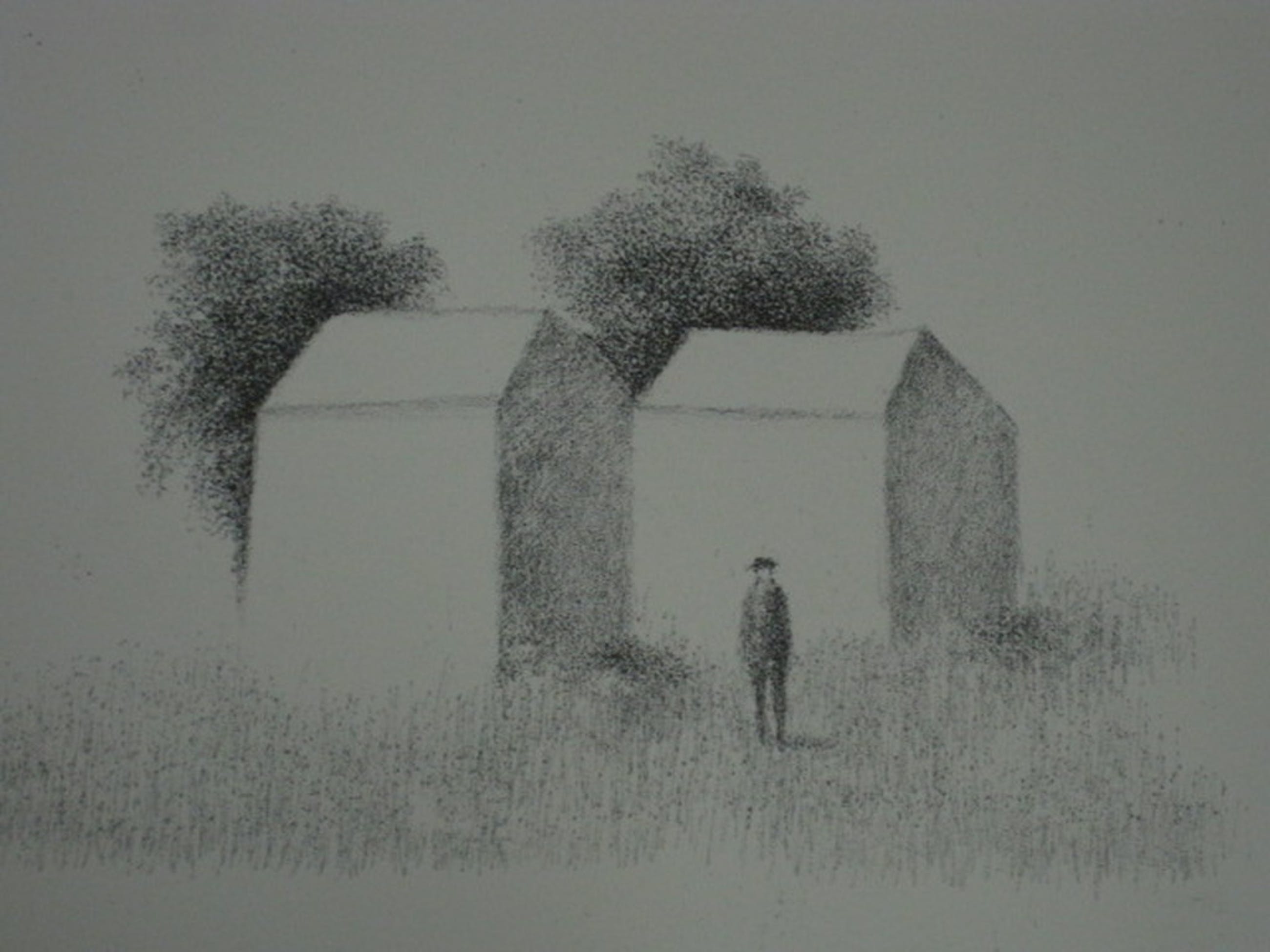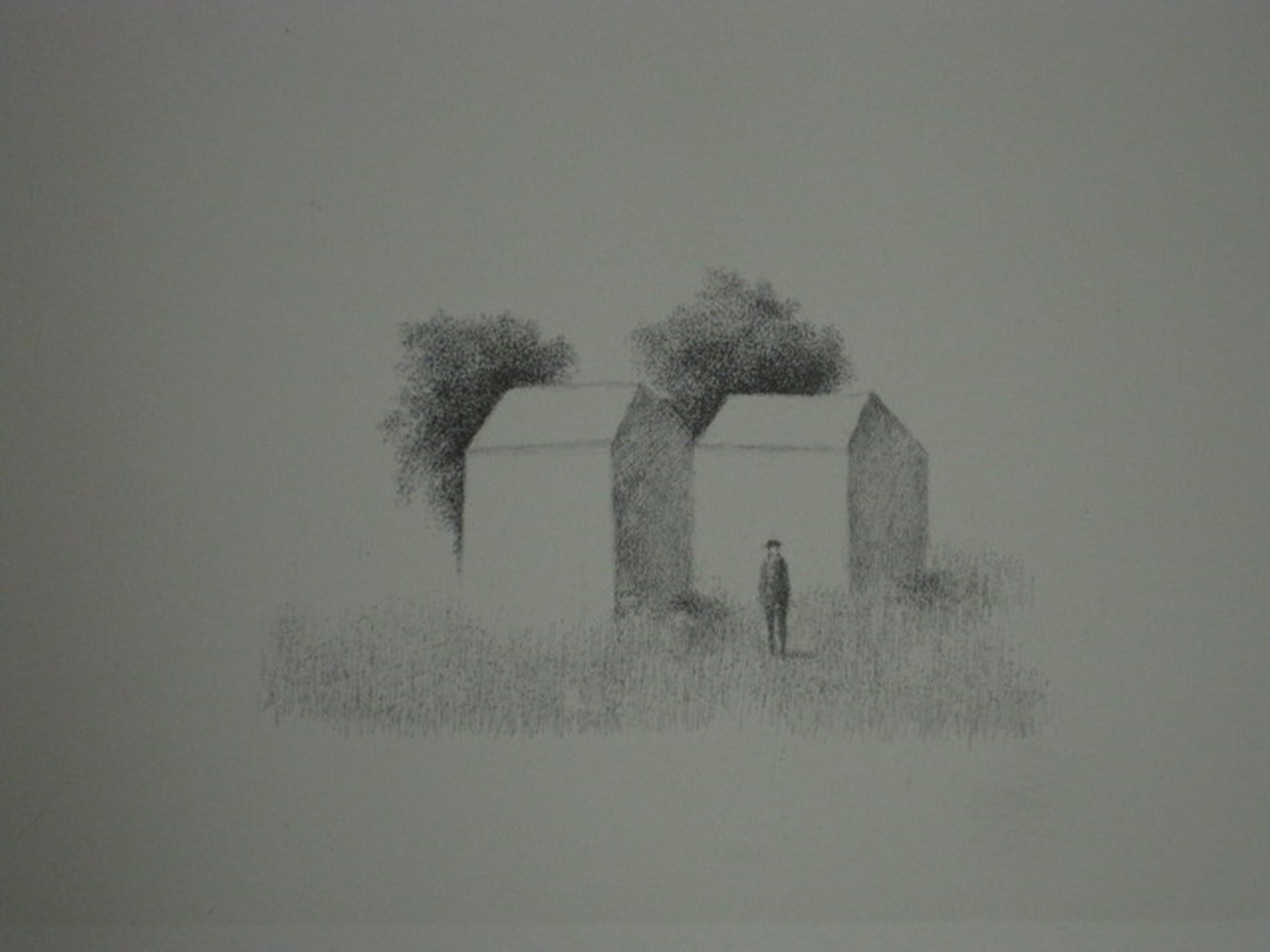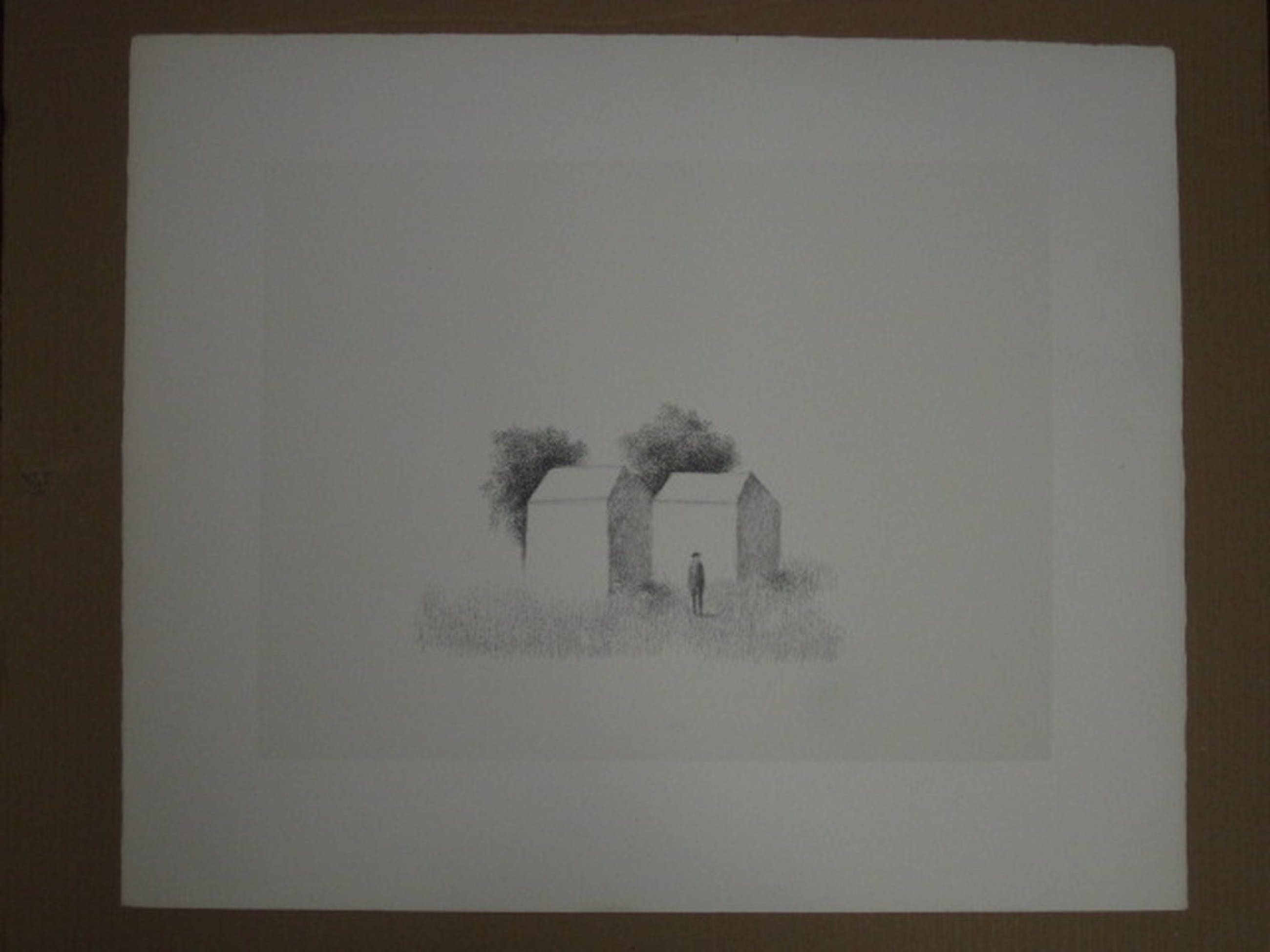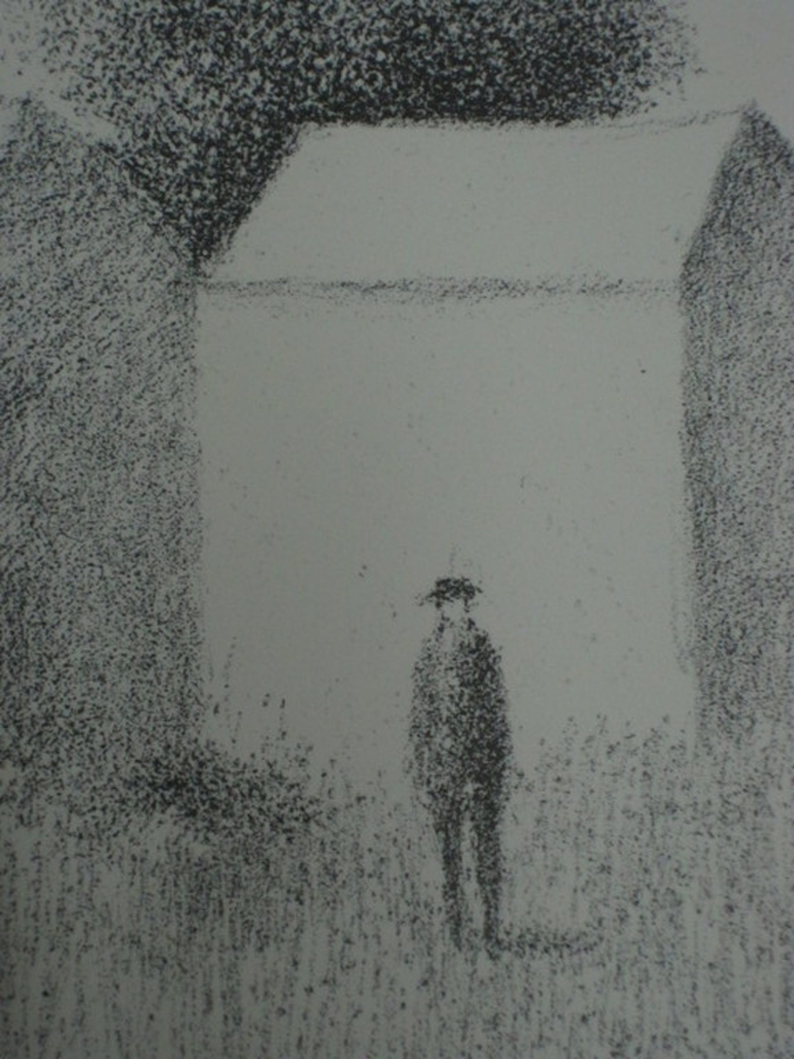 Titel: Man in landschap Jaartal: Onbekend Afmetingen beeld: 32 cm x 42 cm en 47 x 56 ( totale bladmaat ) Gesigneerd: Gesigneerd met potlood monogram rechtsonder Oplage: Onbekend Ingelijst: Nee Materiaal: Litho op hand geschept papier