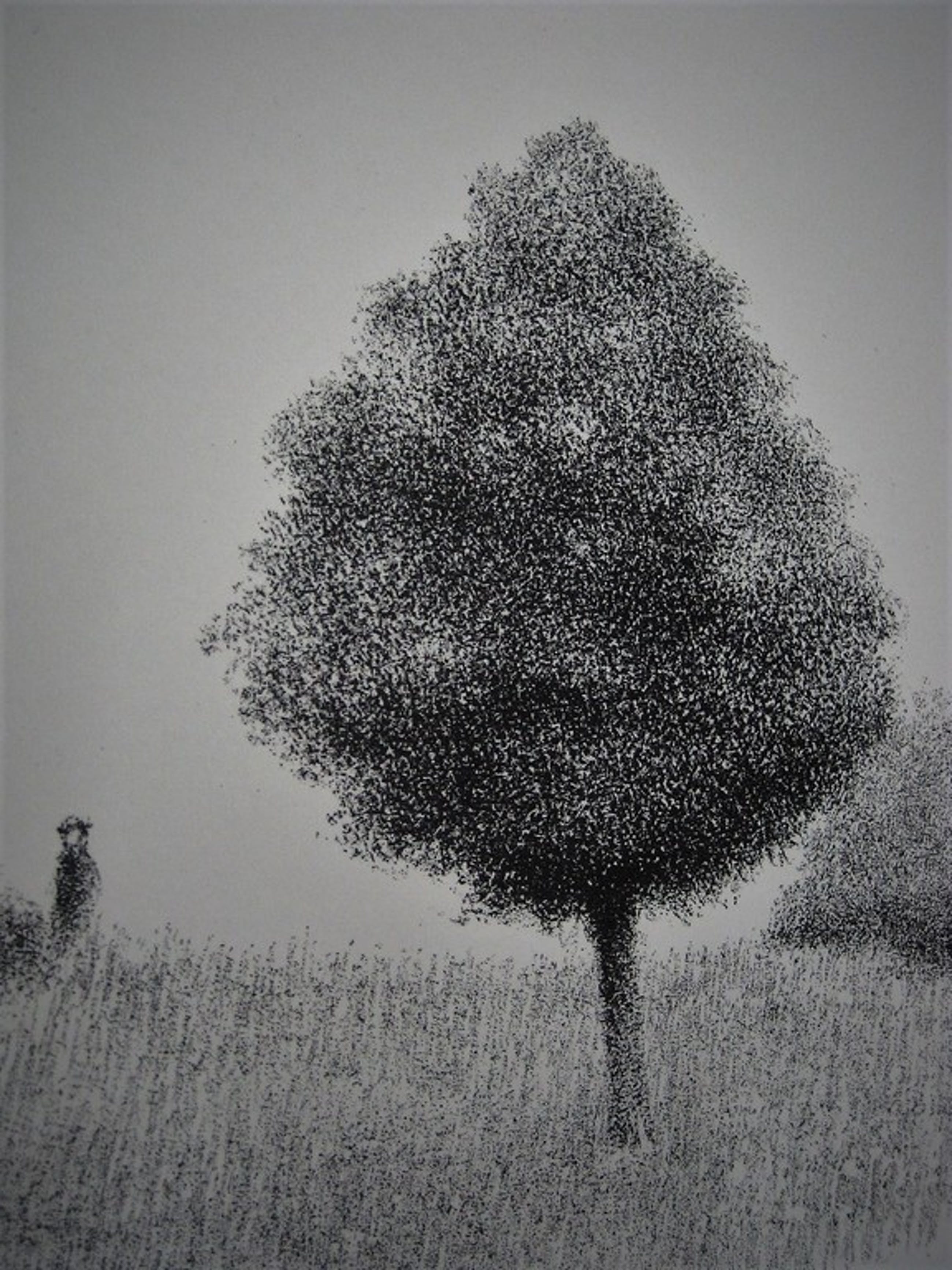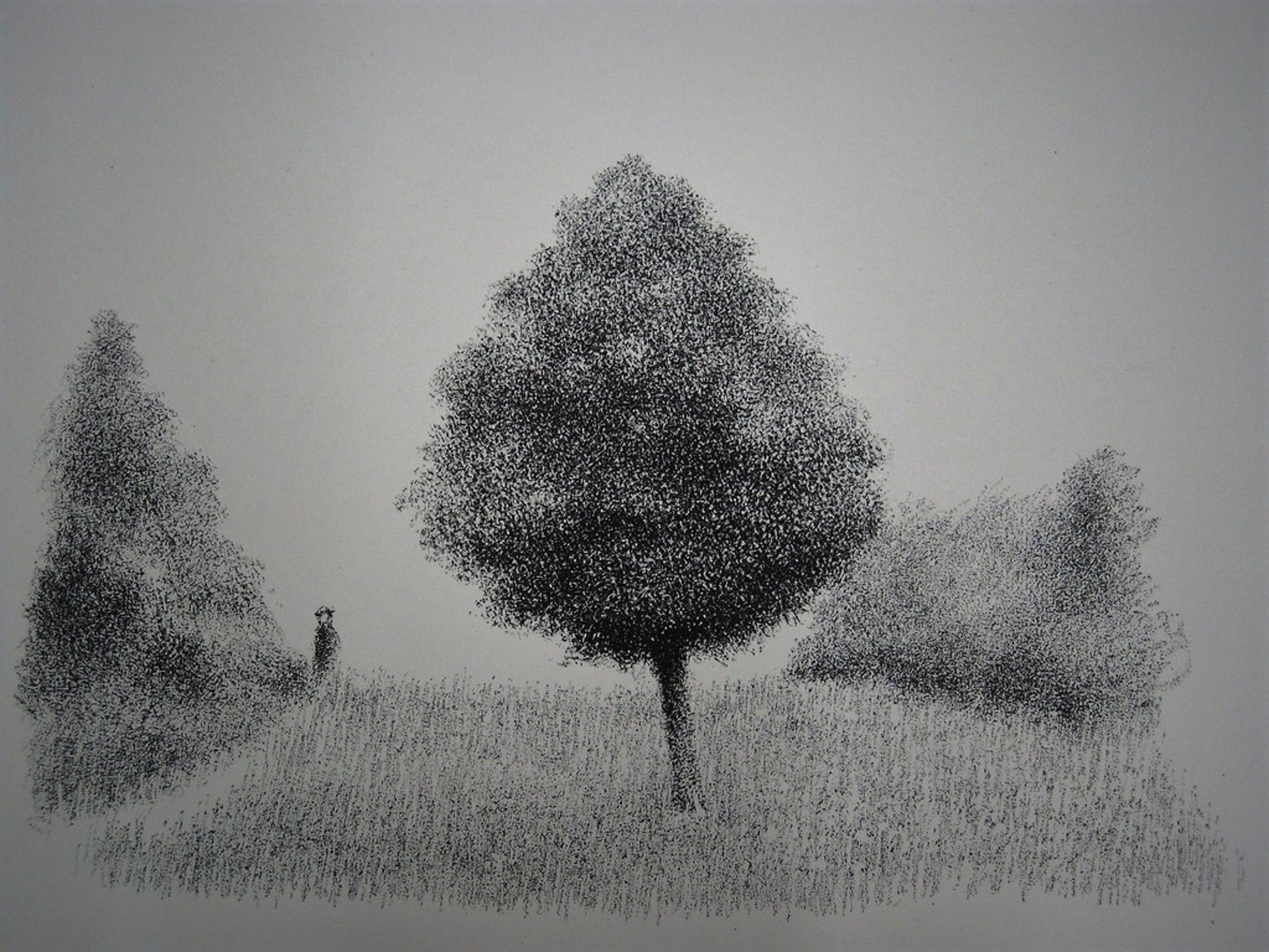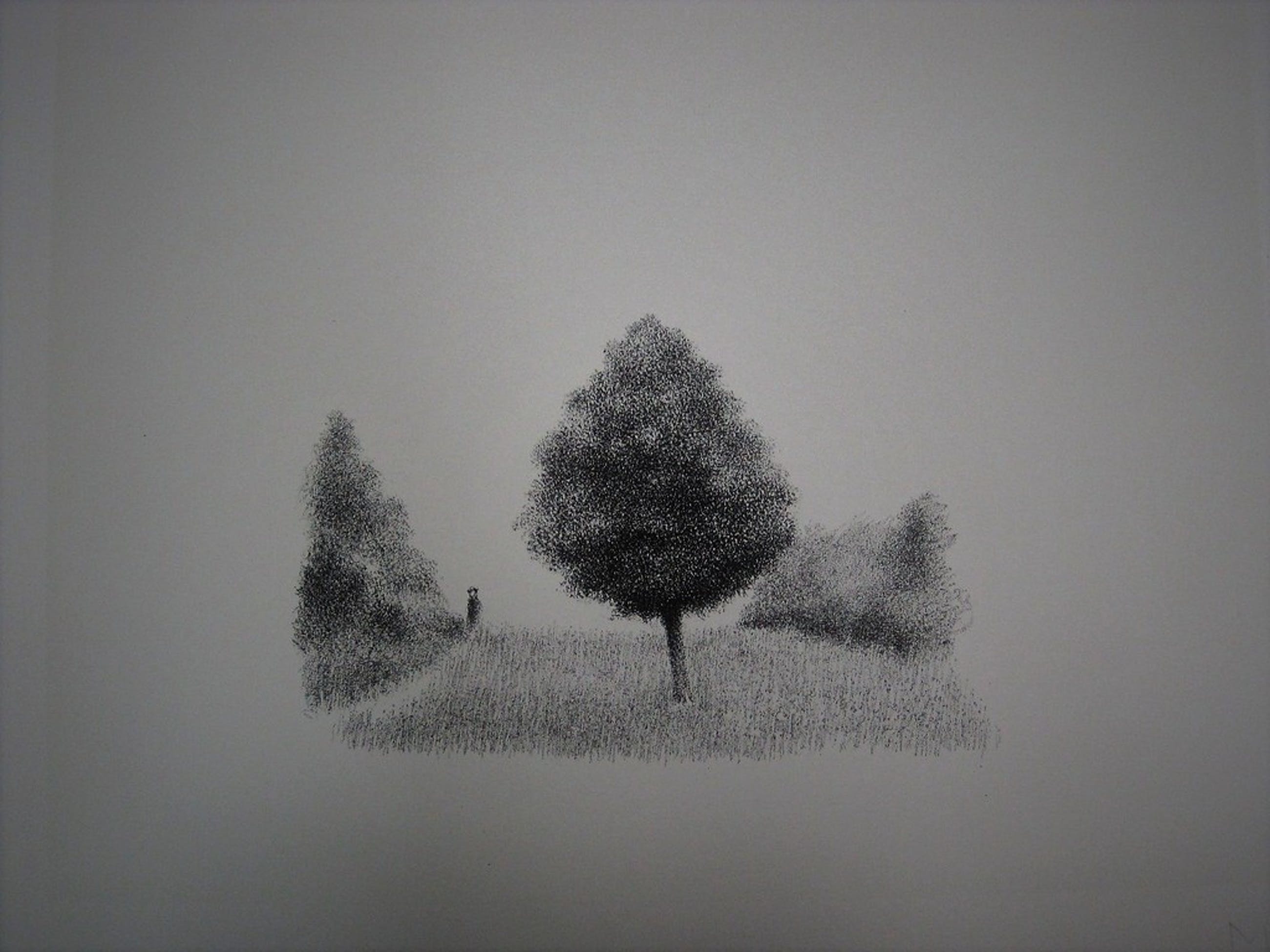 Titel: Man in landschap Jaartal: jaren 70 Afmetingen beeld: 32 cm x 42 cm en 47 x 56 ( totale bladmaat ) Gesigneerd: Gesigneerd met potlood monogram rechtsonder Oplage: Onbekend Ingelijst: Nee Materiaal: Litho op hand geschept papier