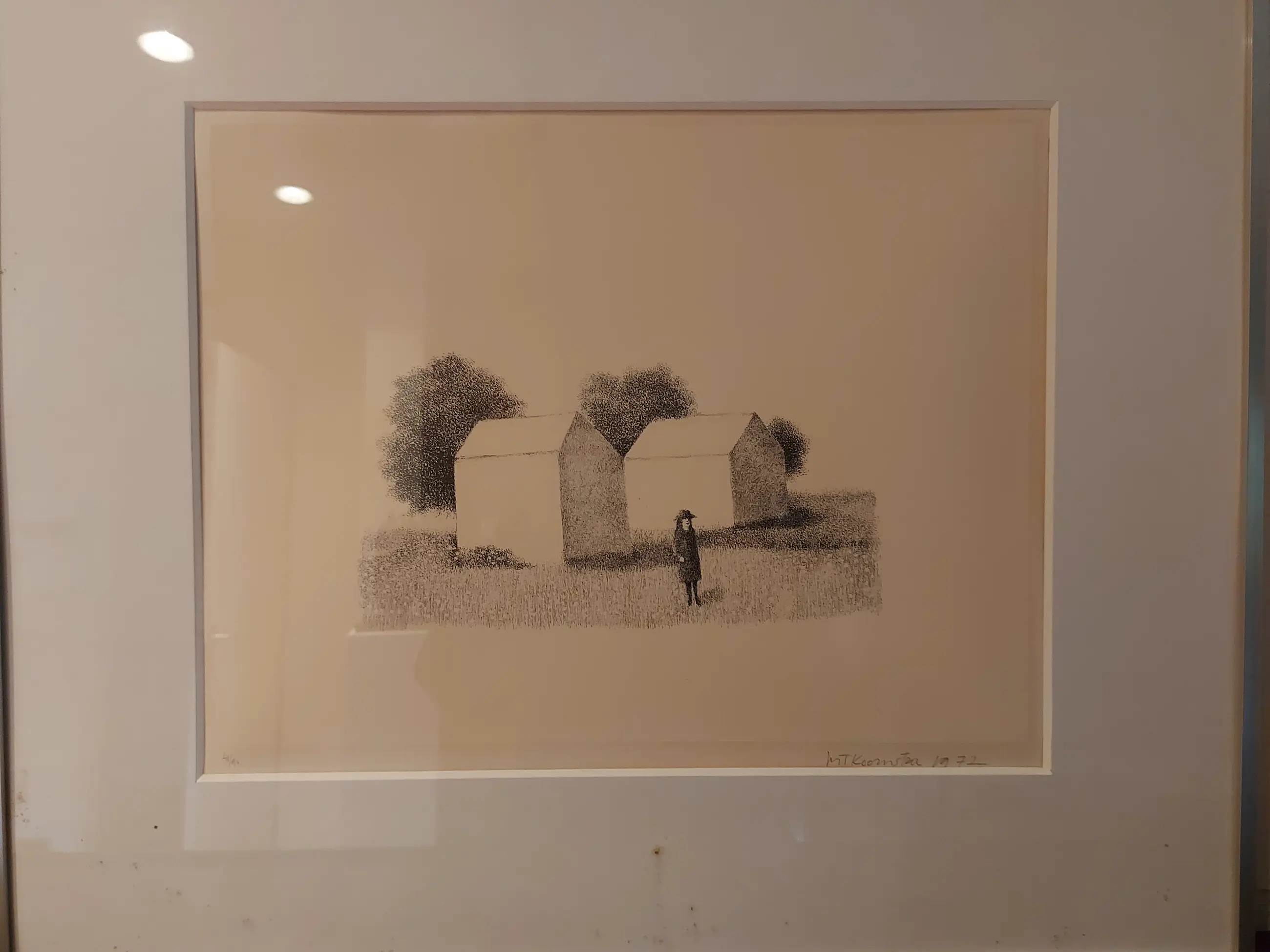 Litho in aluminium lijst met glas en passe-partout