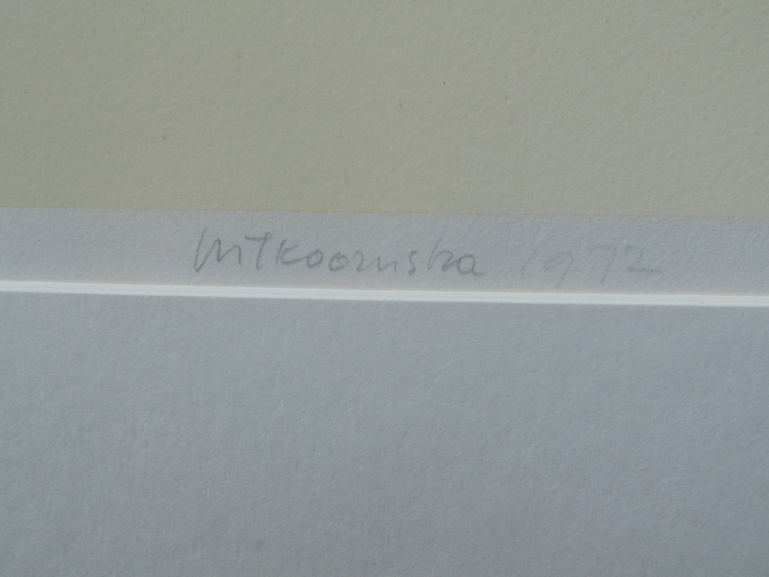 Deze litho is rechtsonder gesigneerd en gedateerd. Dit is nummer 44 uit een oplage van 90. Het werk is ingelijst met passe-partout in een zwart houten lijst en zit achter glas.