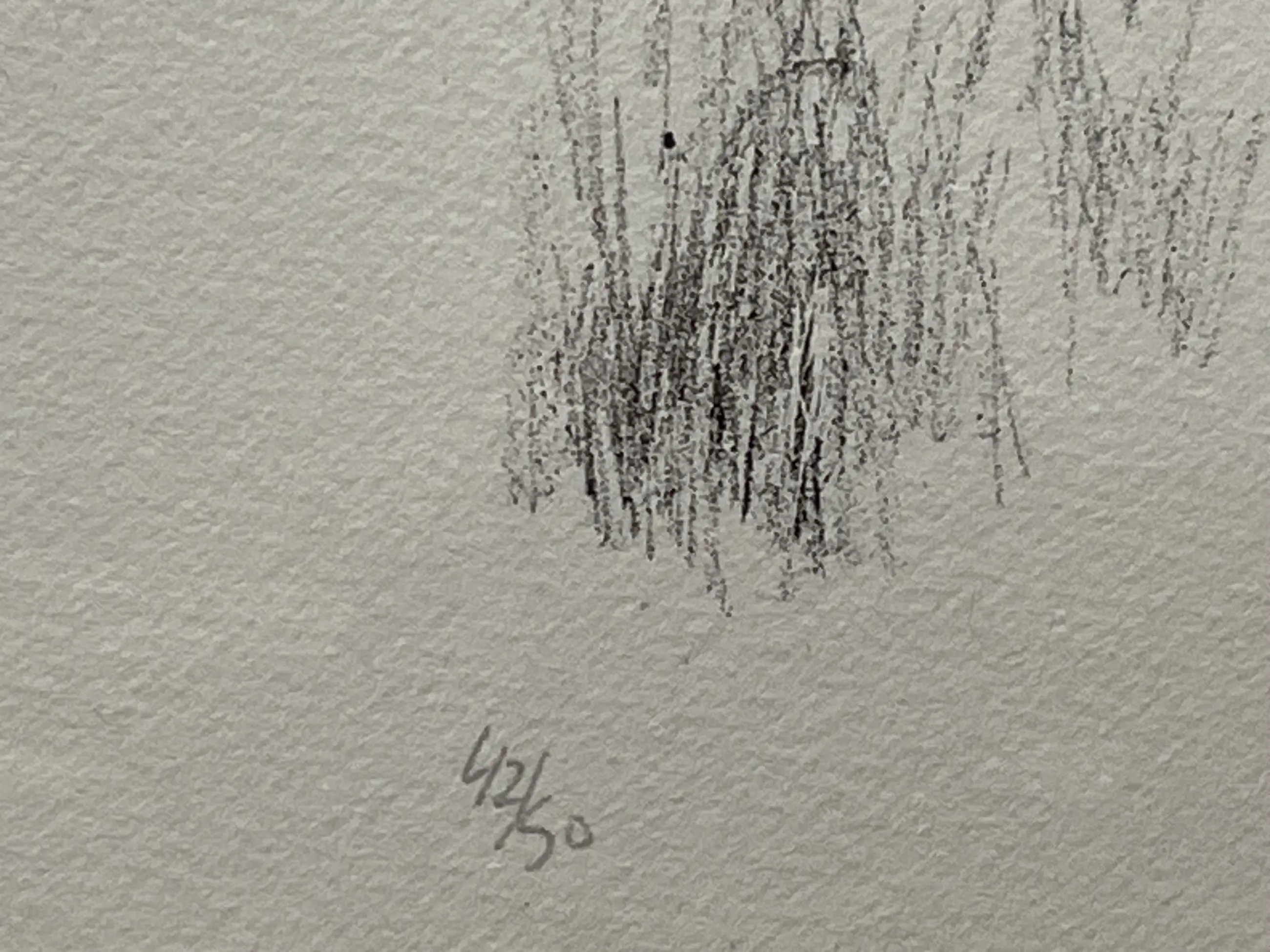 Fraaie litho uit 1965. Kleine oplage 42/50. Helaas heeft het blad middenboven een beschadiging. (Zie detailfoto’s) Gelijst in goedkoop wit aluminium lijst. Afmeting afbeelding 29 x 39 cm. Inclusief lijst 48,5 x 56 cm.