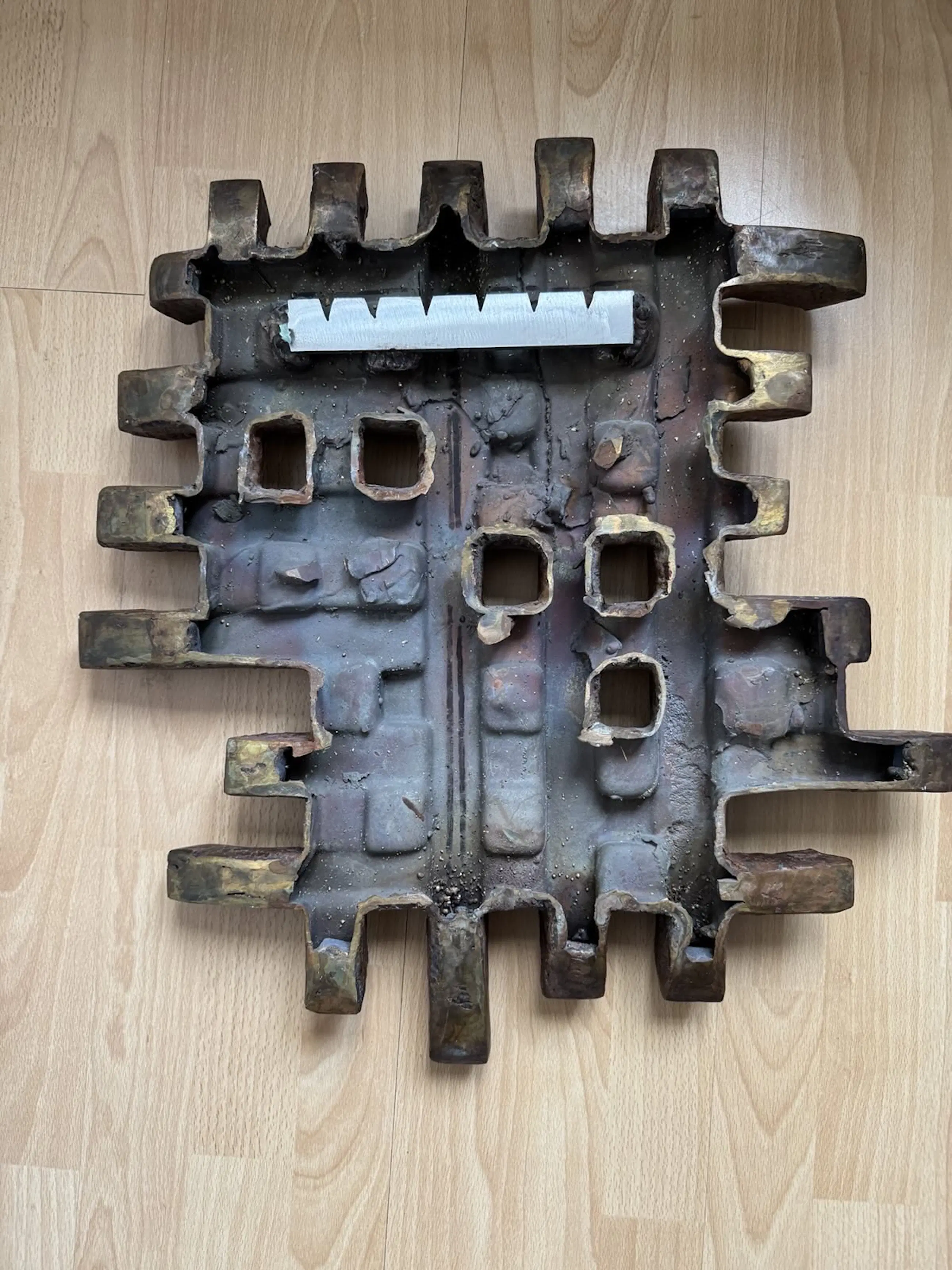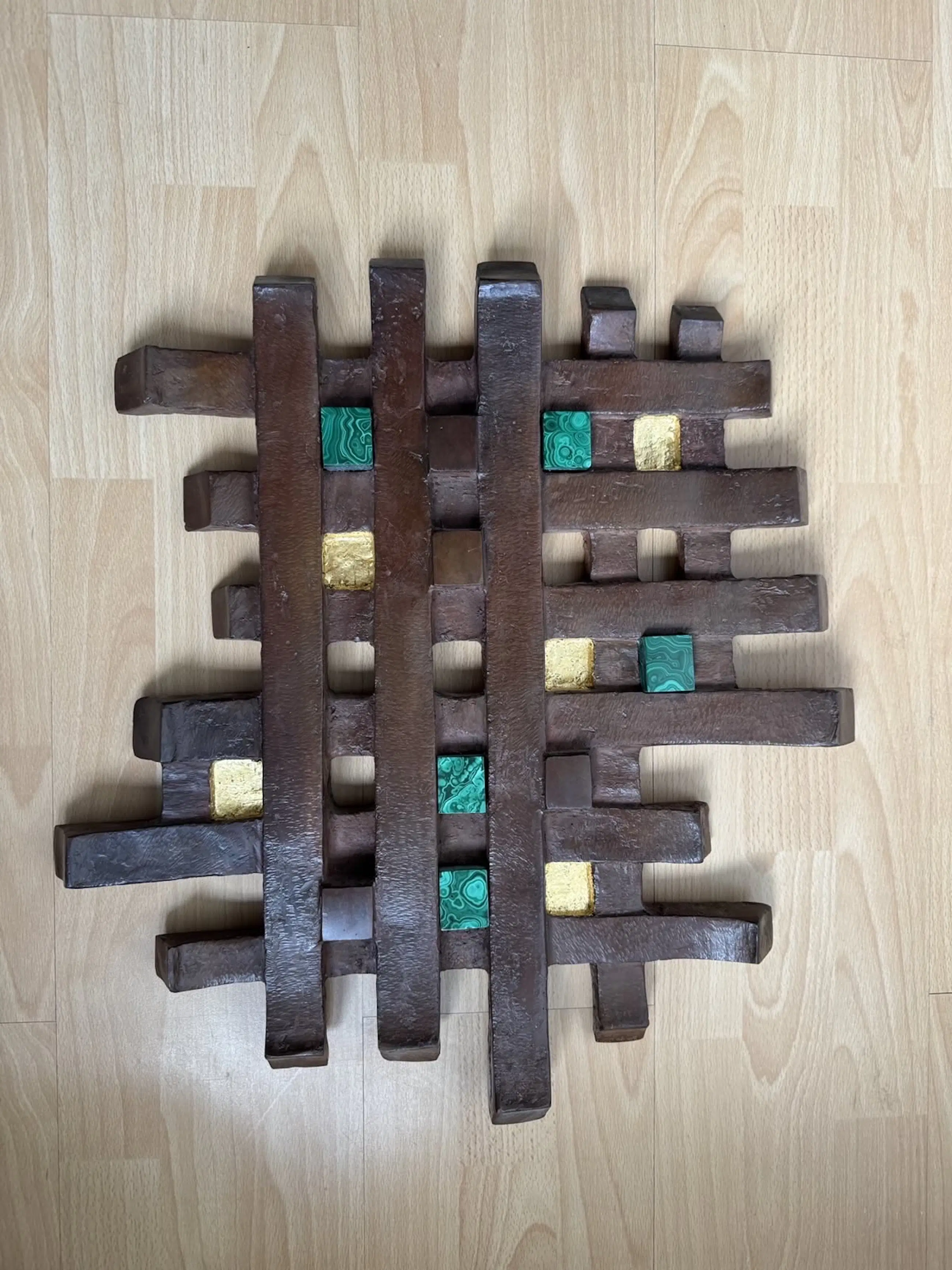 Relief in brons, malachiet en bladgoud. Gemaakt in opdracht.