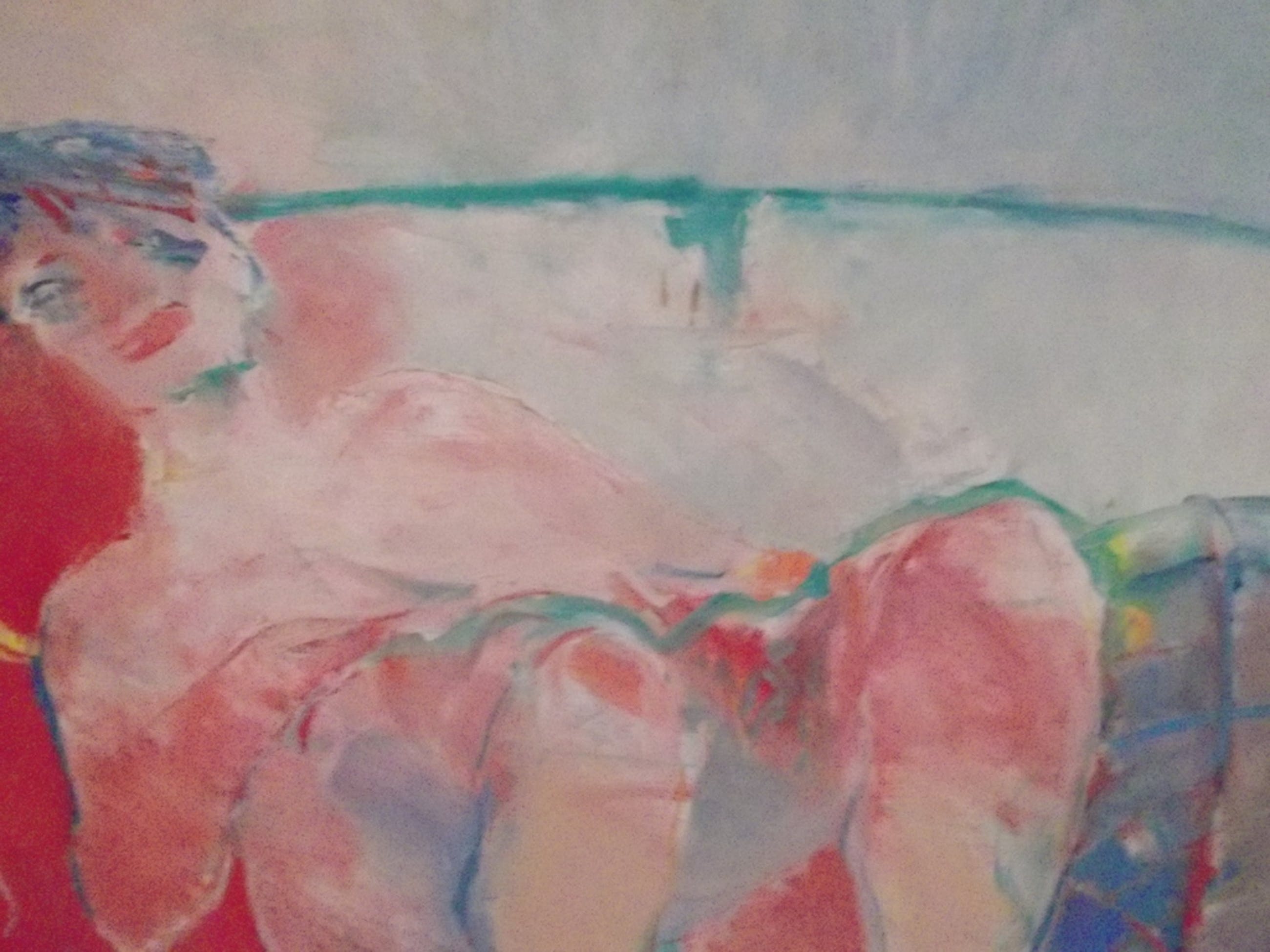 Het werk moet opnieuw opgespannen worden.Ingelijst.