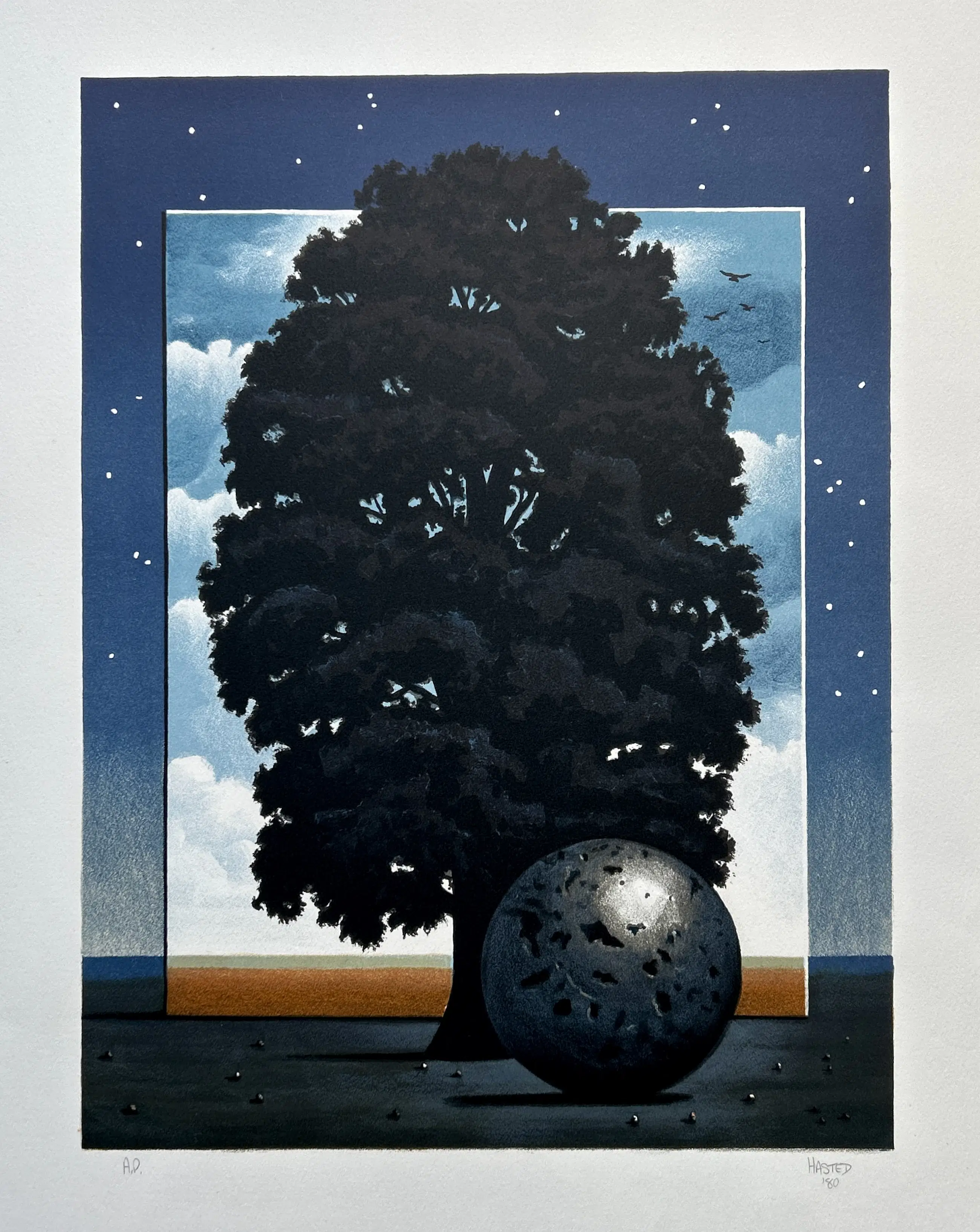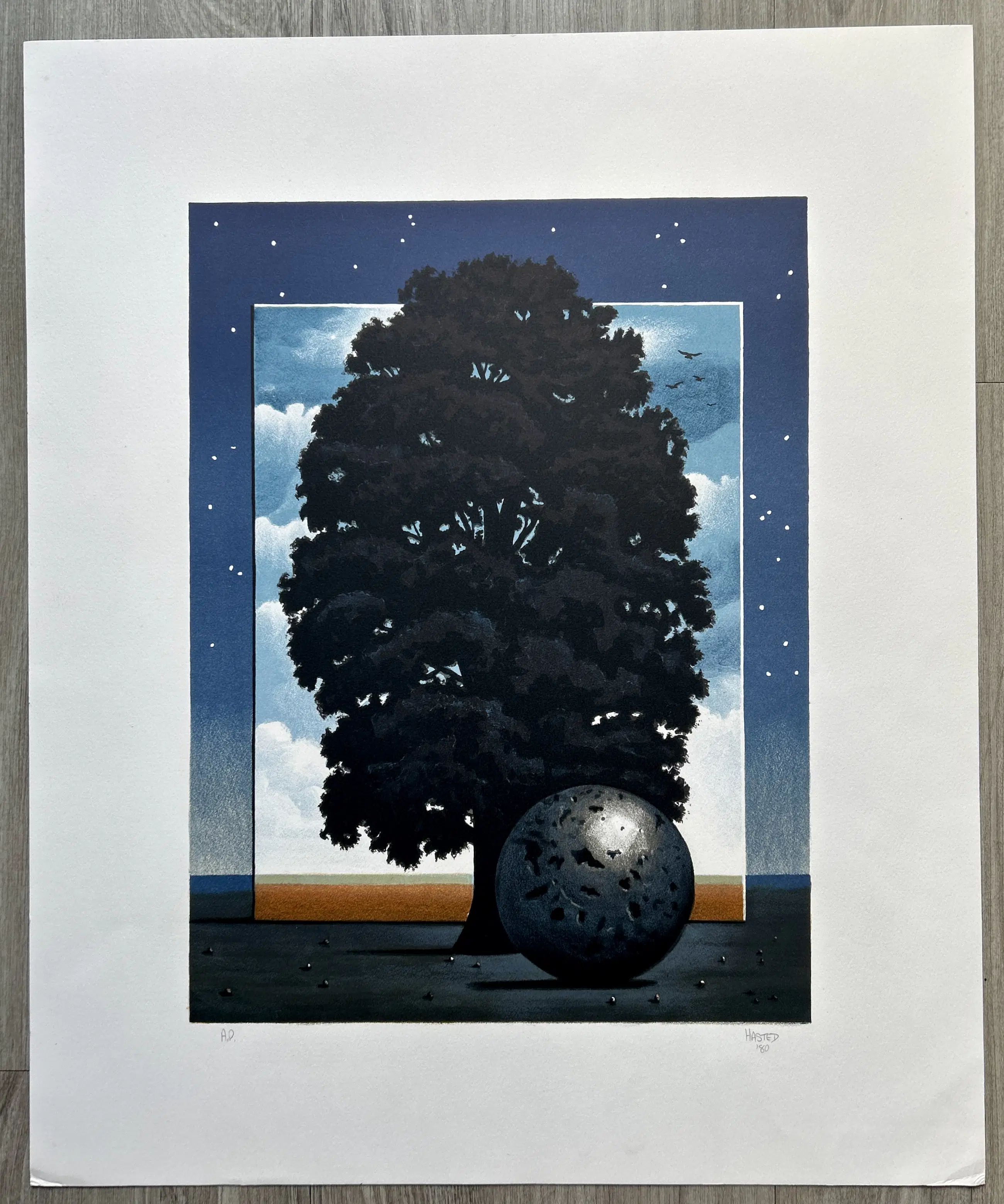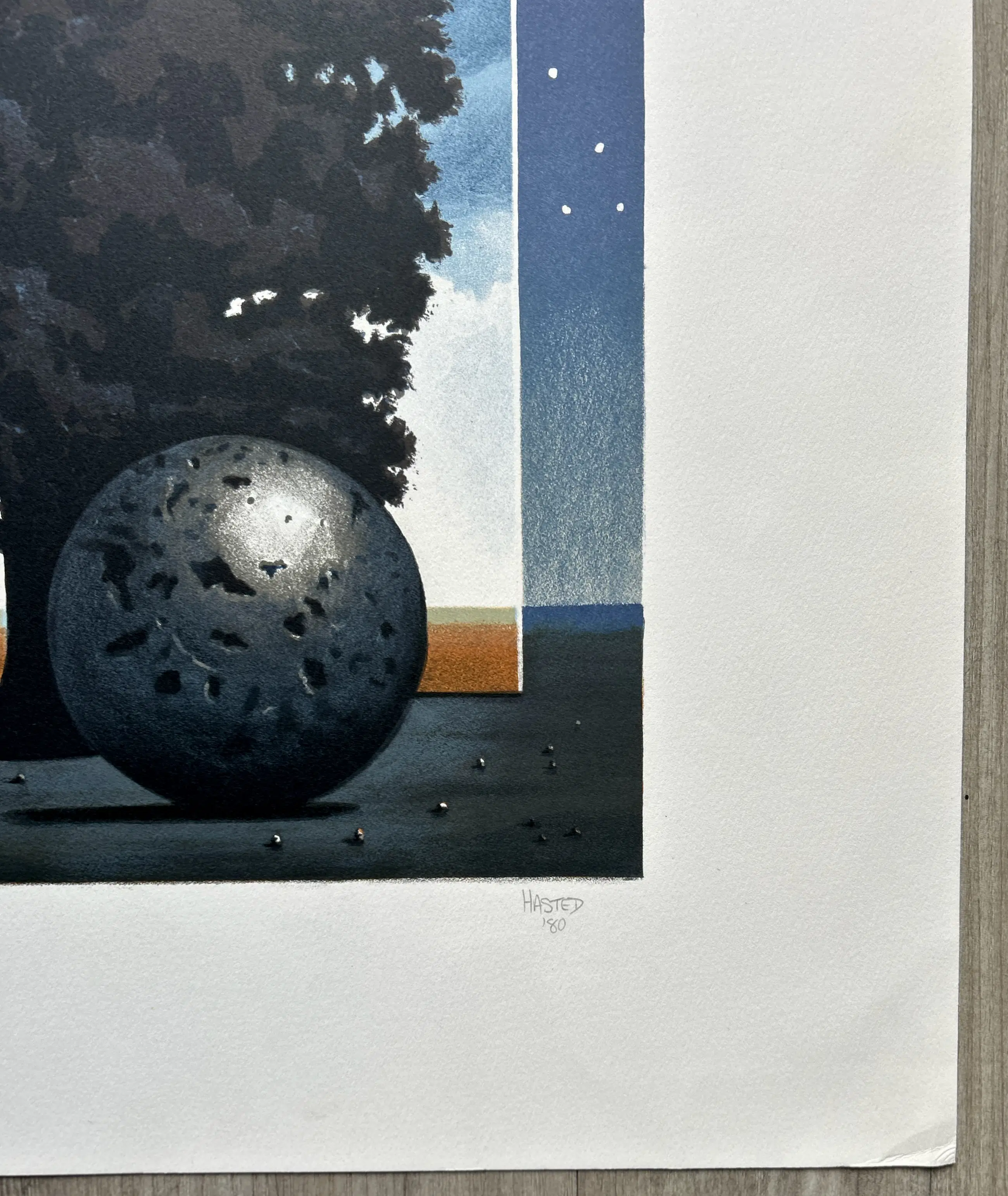 Conditie: zeer goed. Lichte vouwtjes hoeken onderkant vel, zie foto's. Afmeting: afbeelding 40 x 30 cm. Wordt zorgvuldig verpakt en verzekerd verzonden.