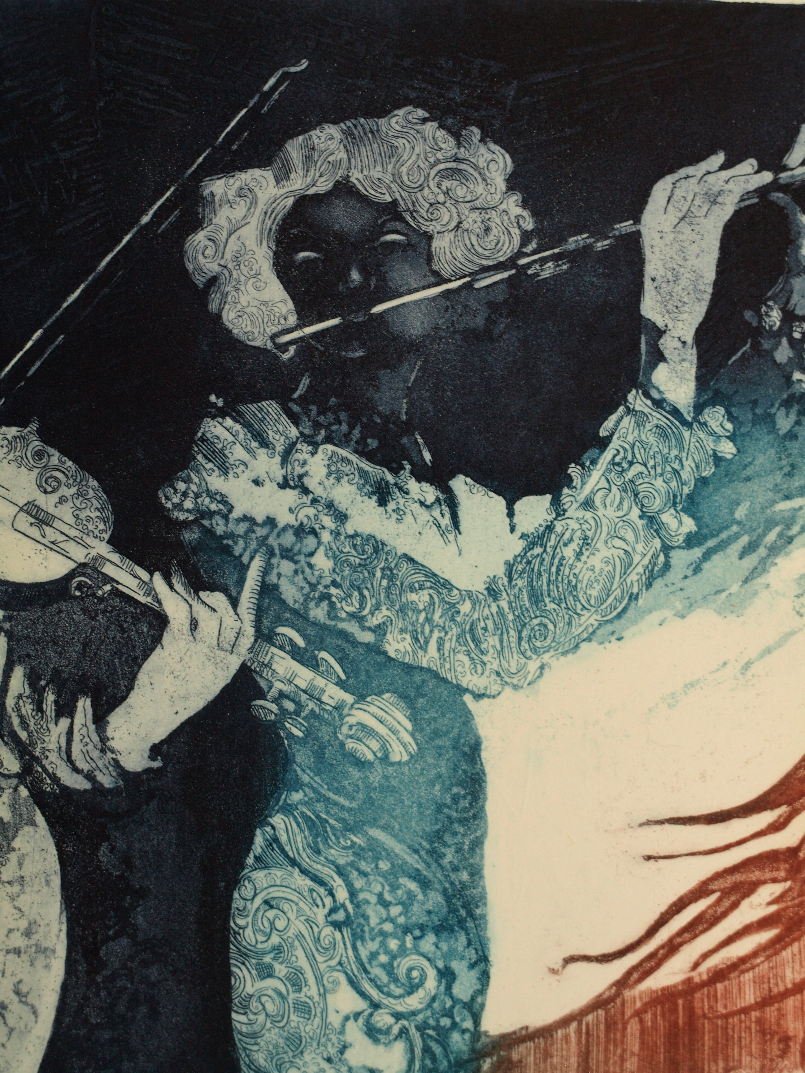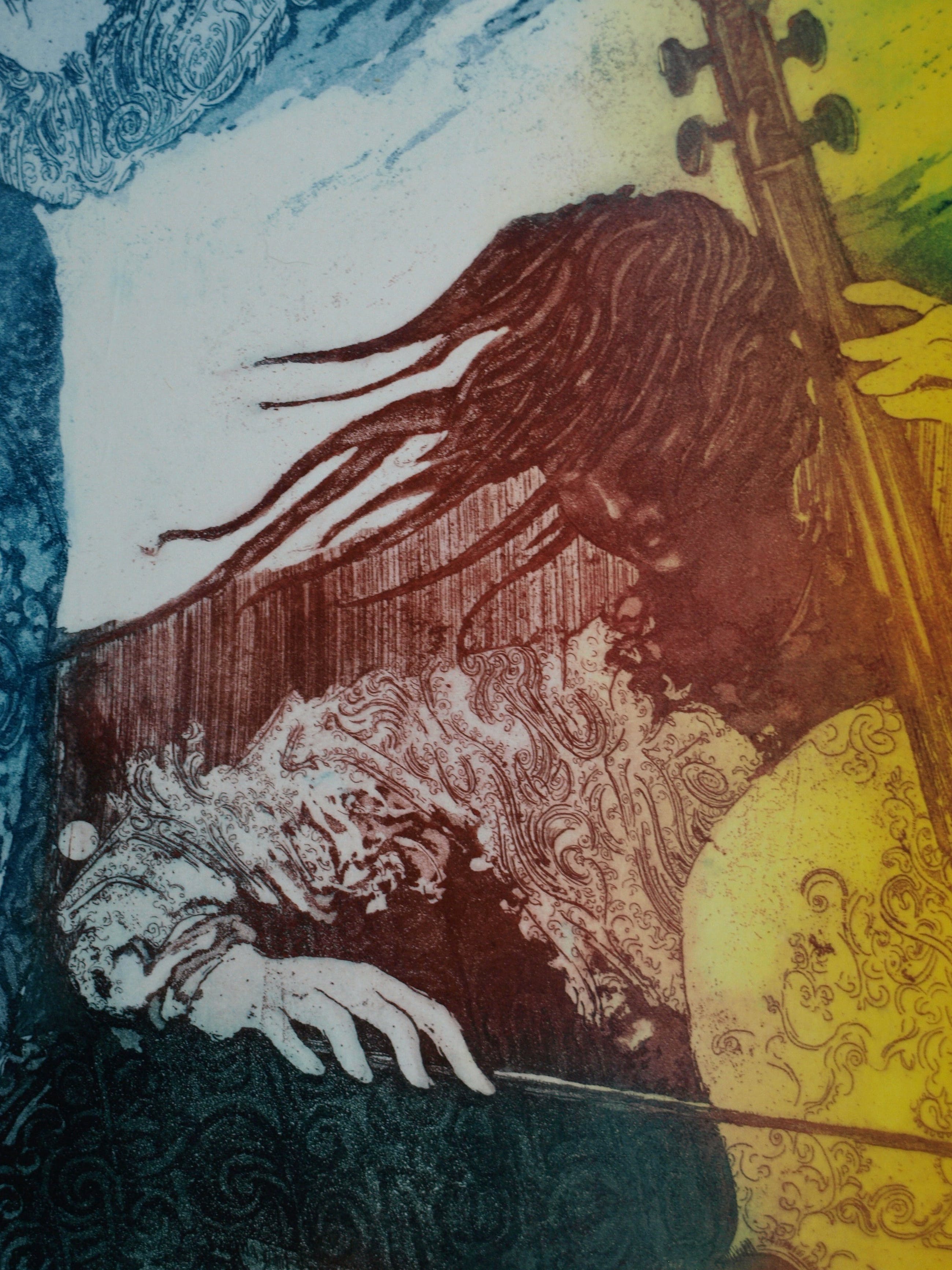 Een grote ets van de Nederlandse kunstenaar Michael Jepkes (1938).