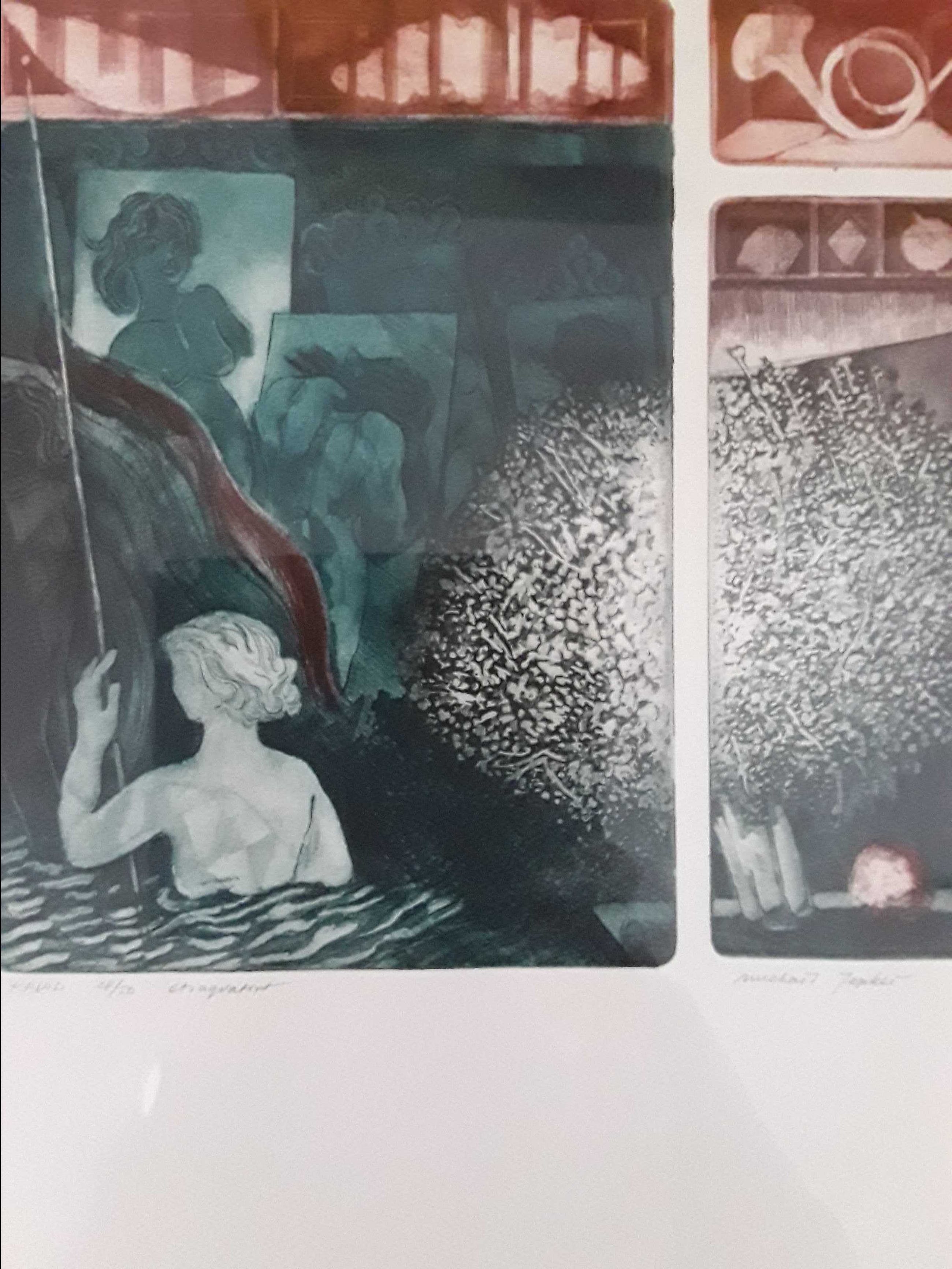 Ets / aquatint die dateert uit de periode rond 1975. Het werk is ingelijst in een aluminium lijst en is in zeer goede staat.