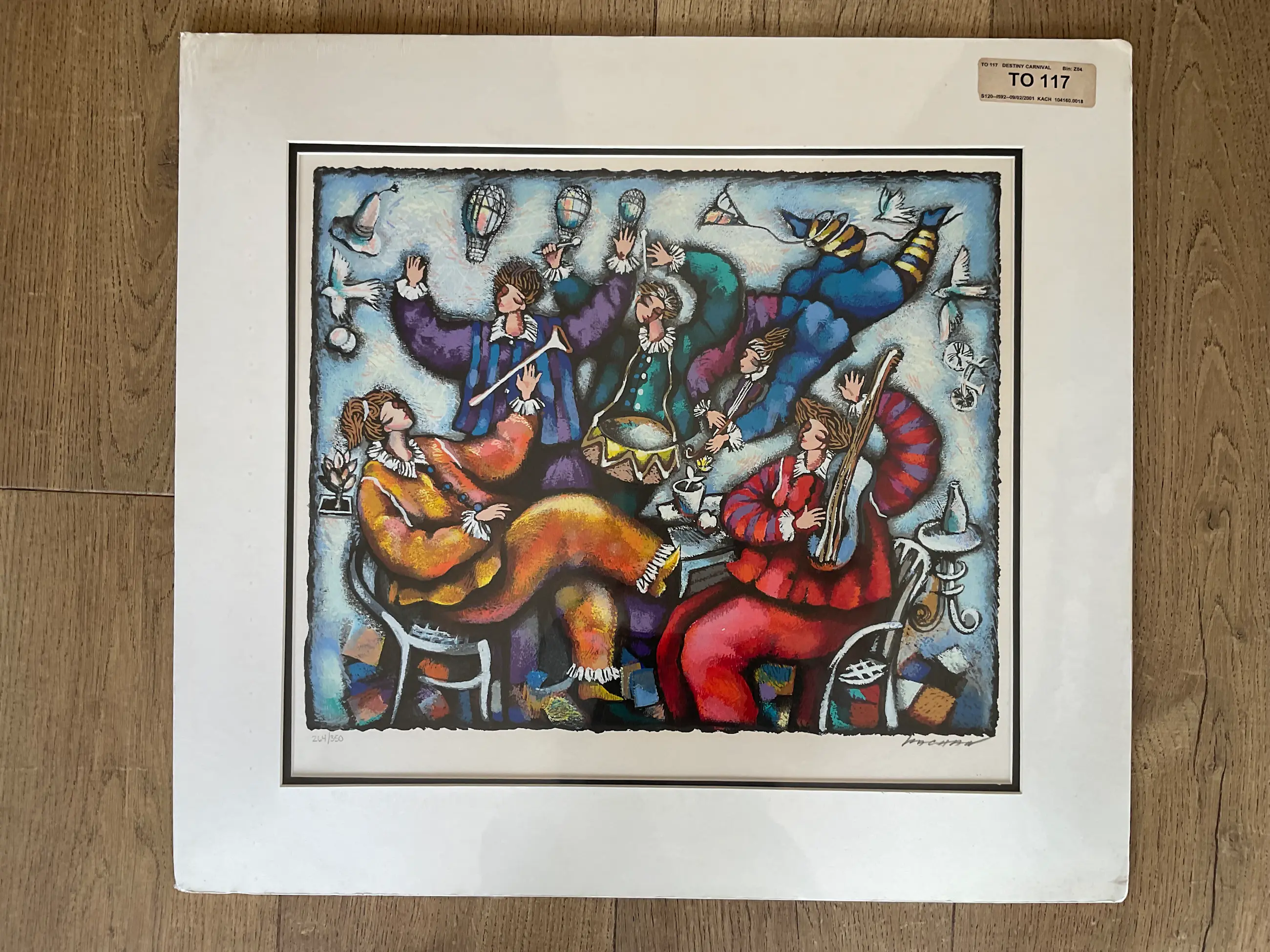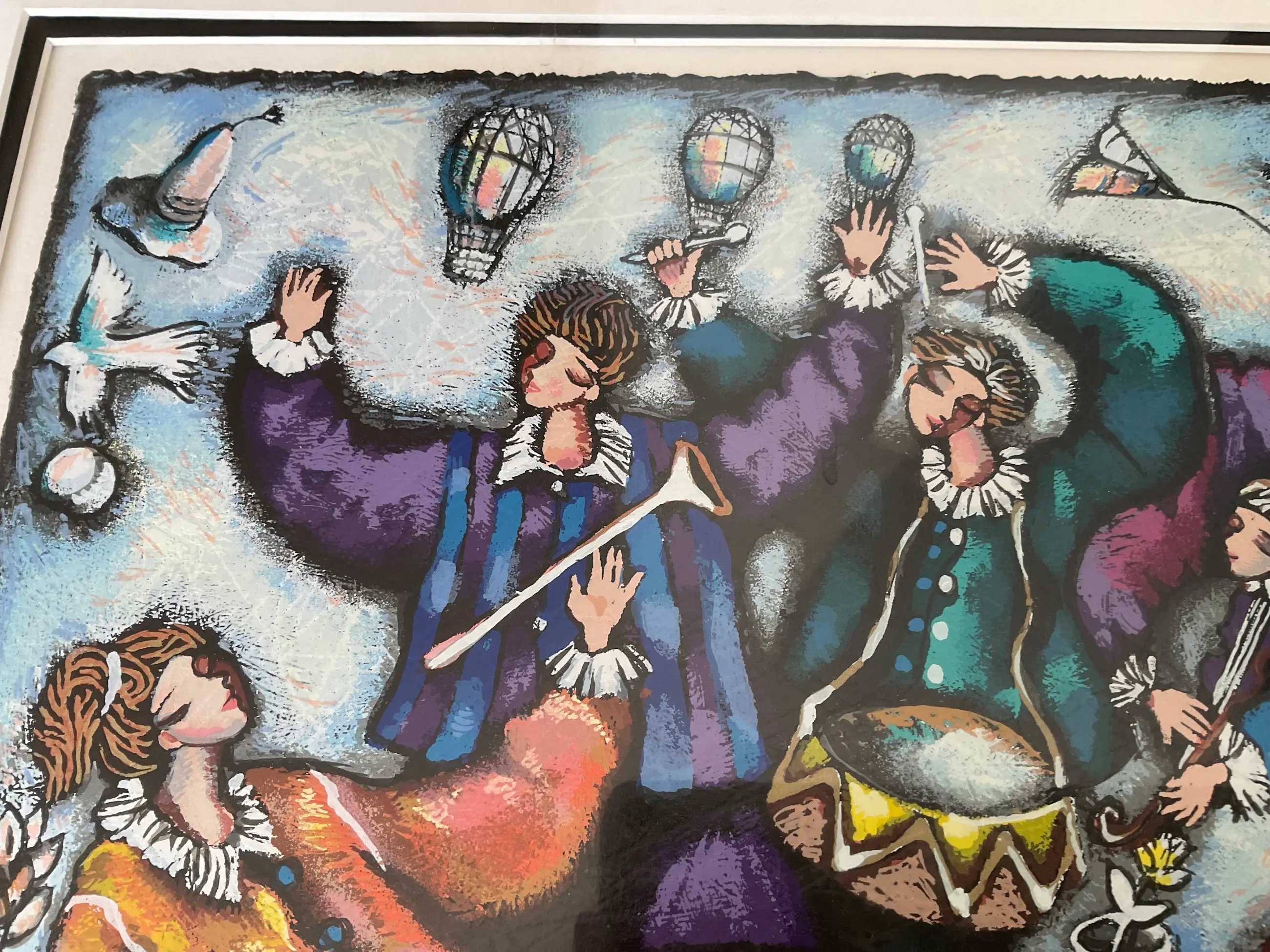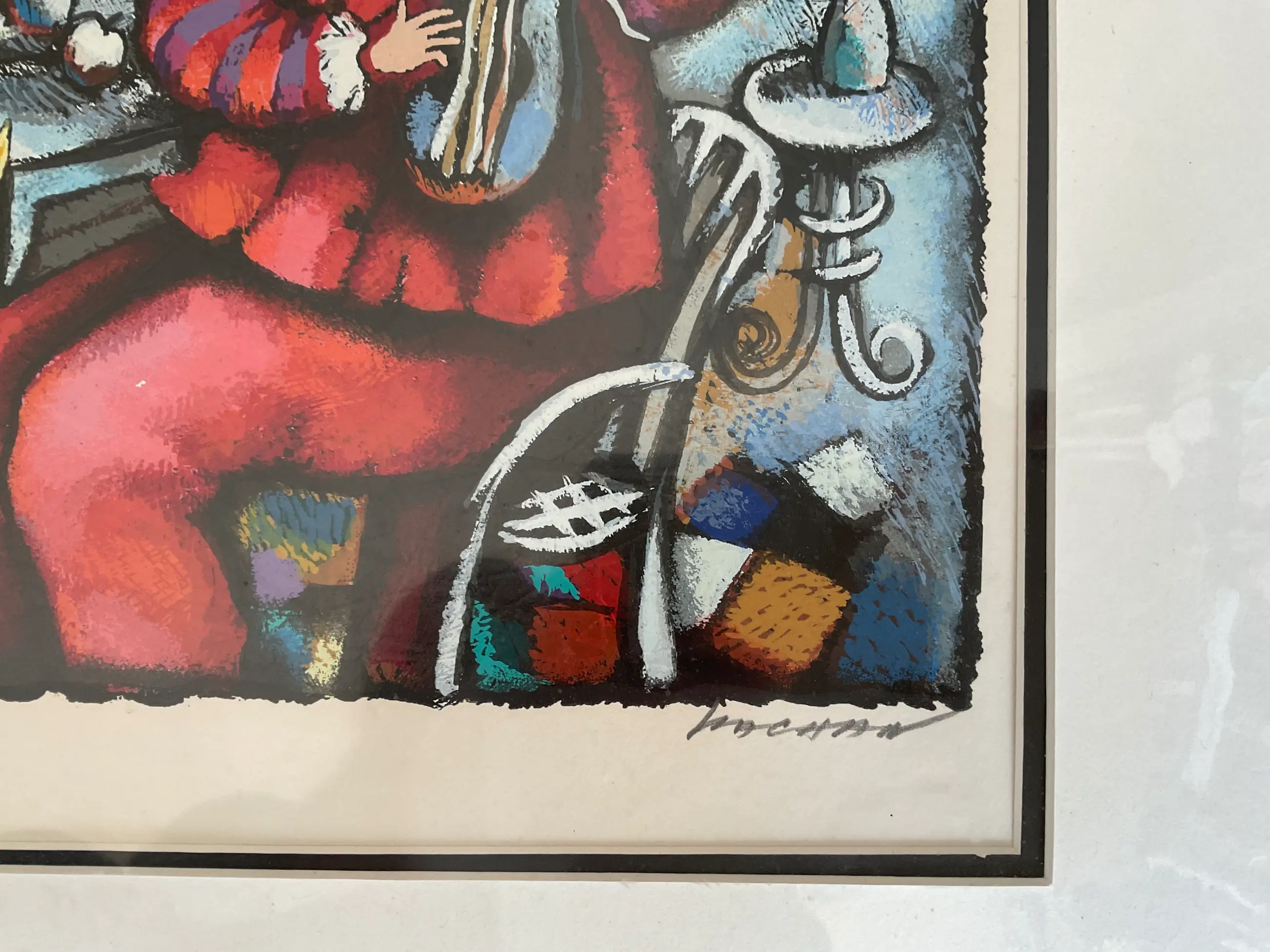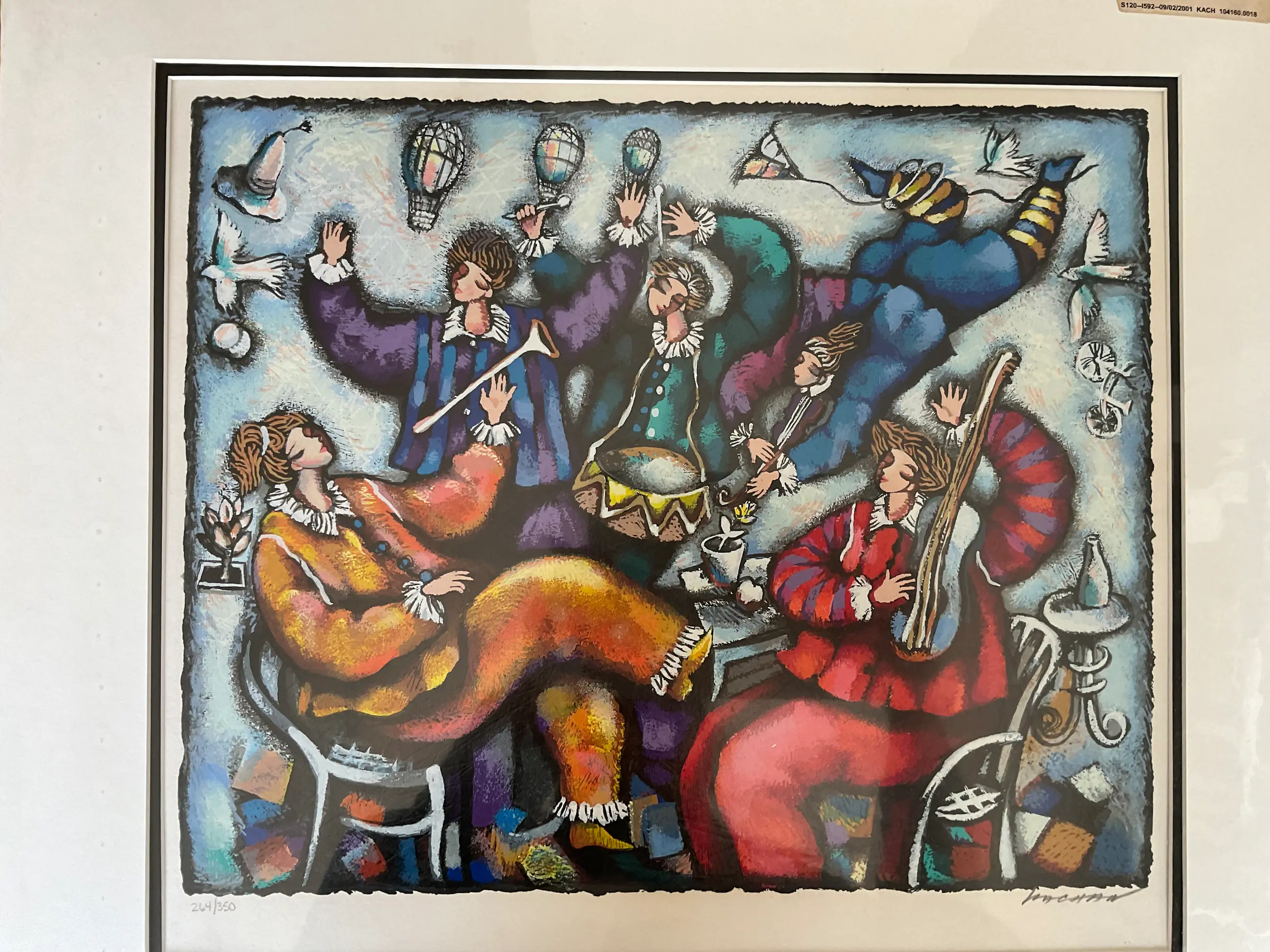 Een expressief en kleurrijk werk van de Armeens-Israëlische kunstenaar Michael Kachan. Deze gelimiteerde serigrafie, getiteld “Musicians”, toont een levendige en fantasierijke scène met muzikanten en performers, uitgevoerd in een dromerige, bijna poëtische stijl.