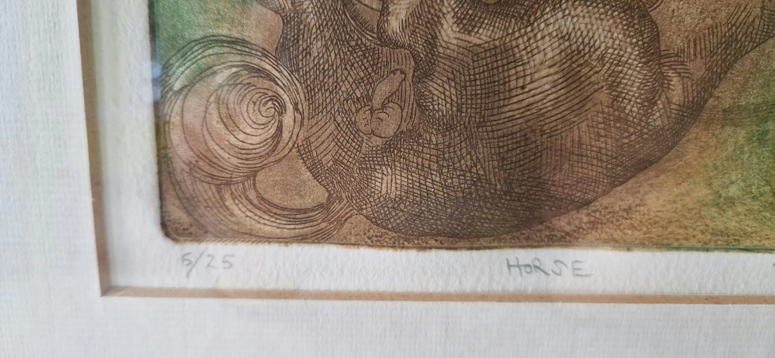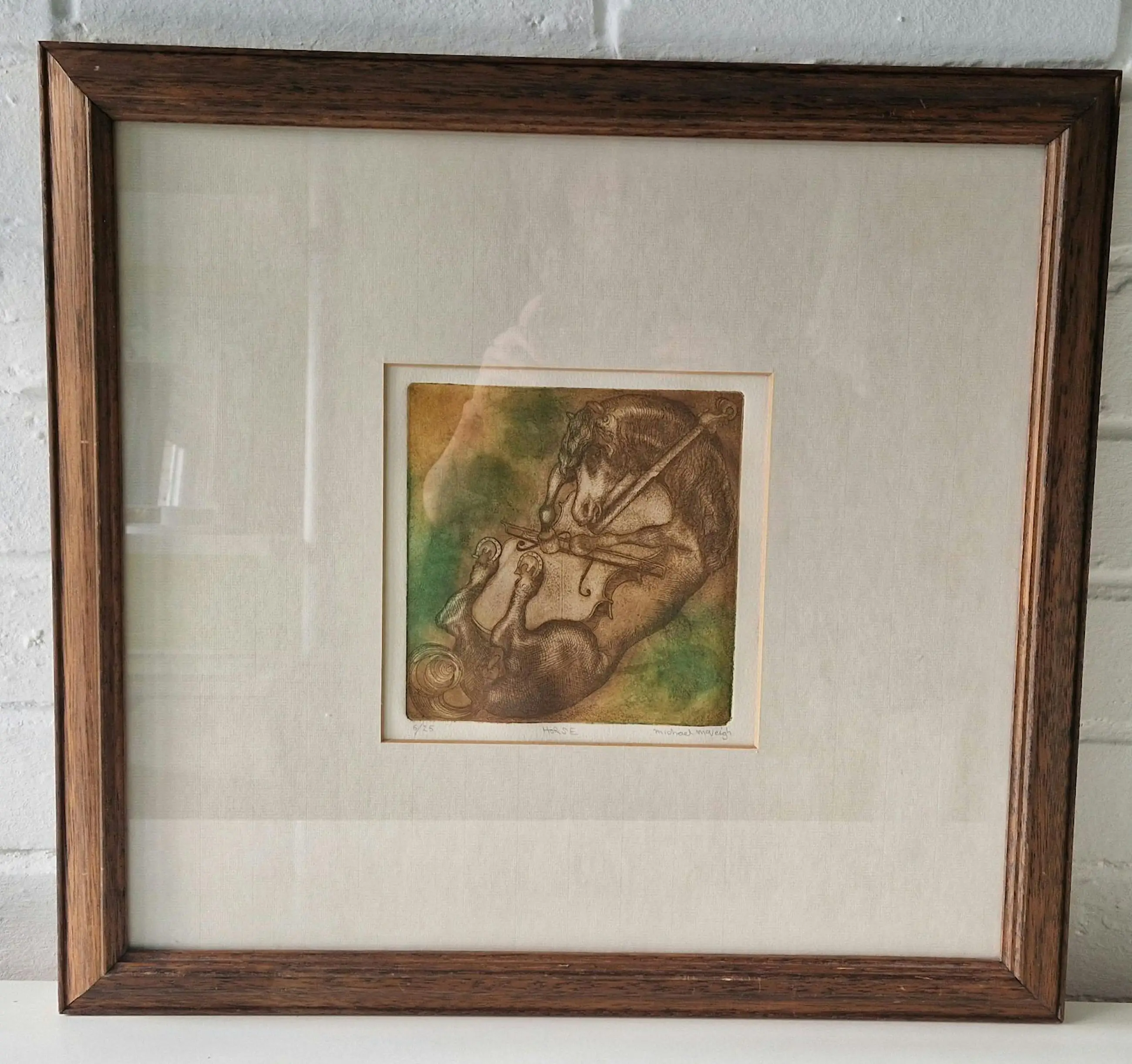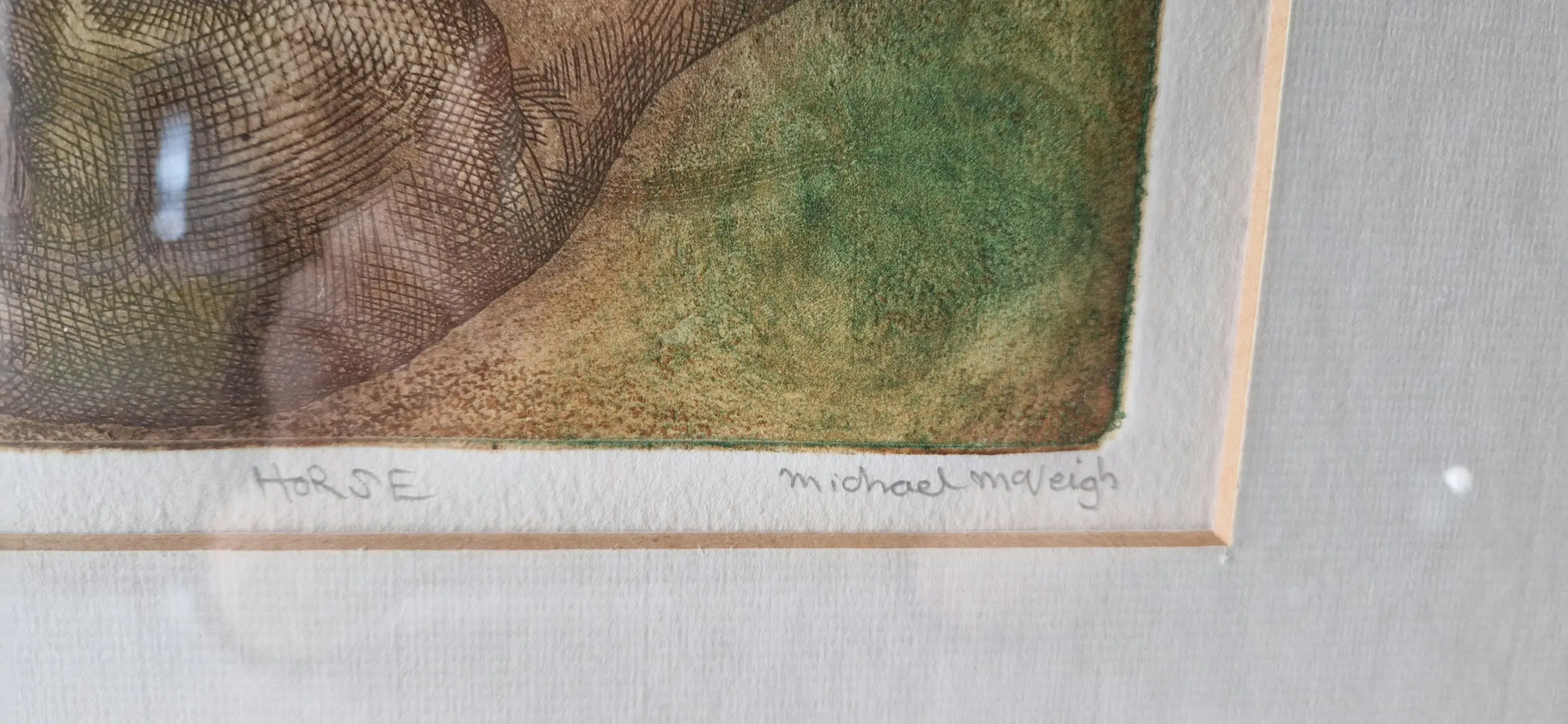 Originele ets in beperkte oplage getiteld "Paard" van Michael Maveigh, genummerd 6/25 en handgesigneerd door de kunstenaar.