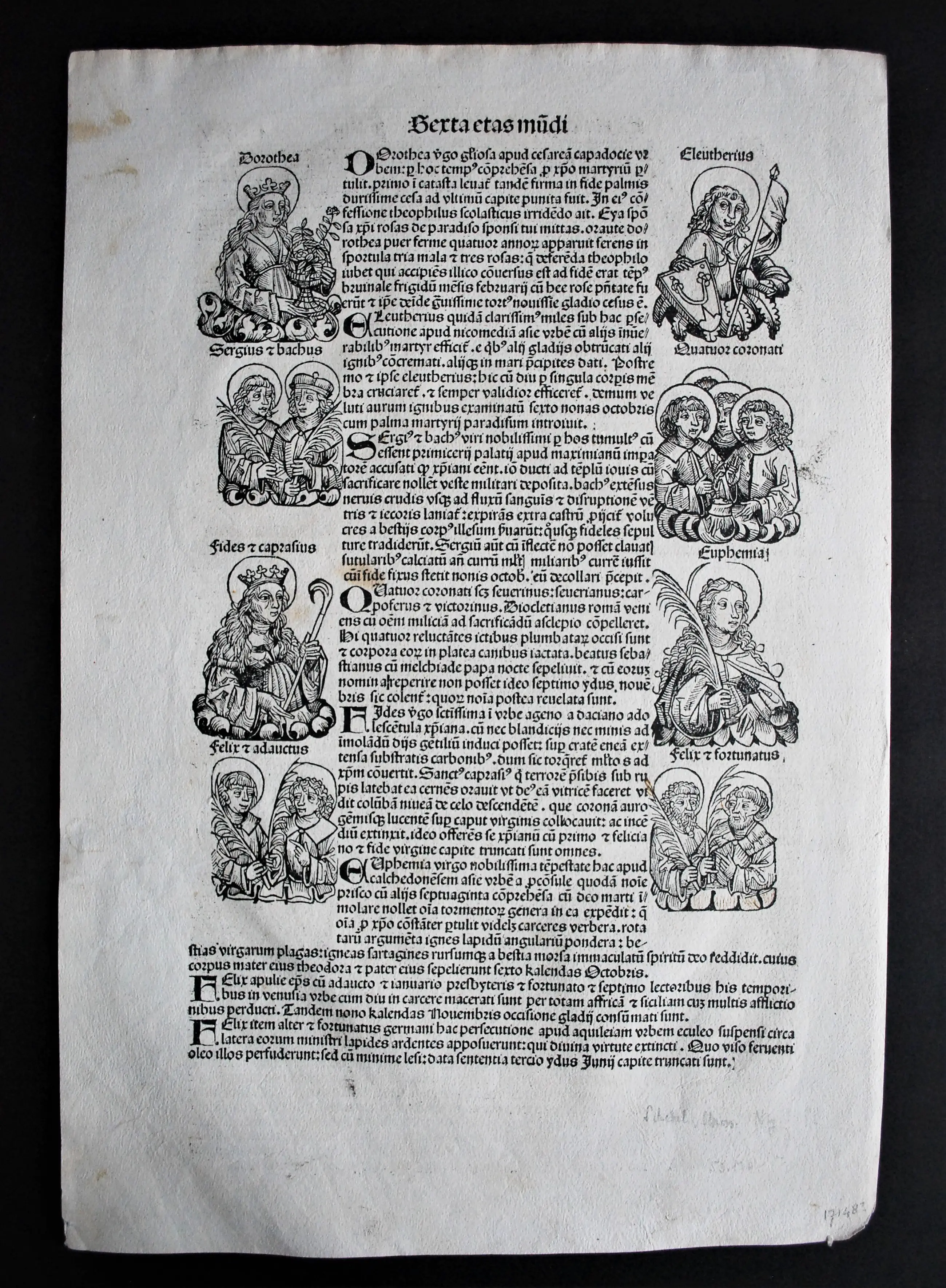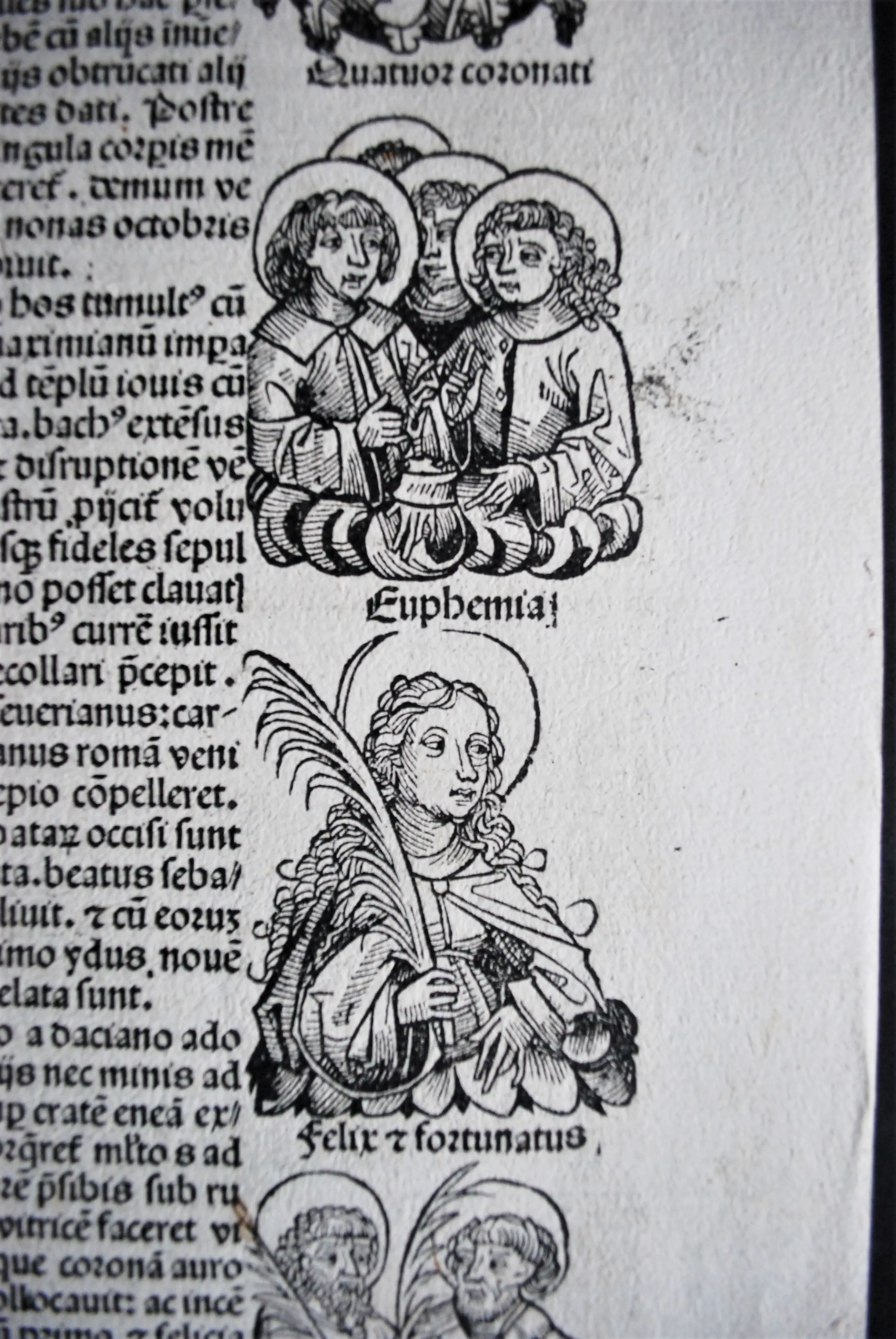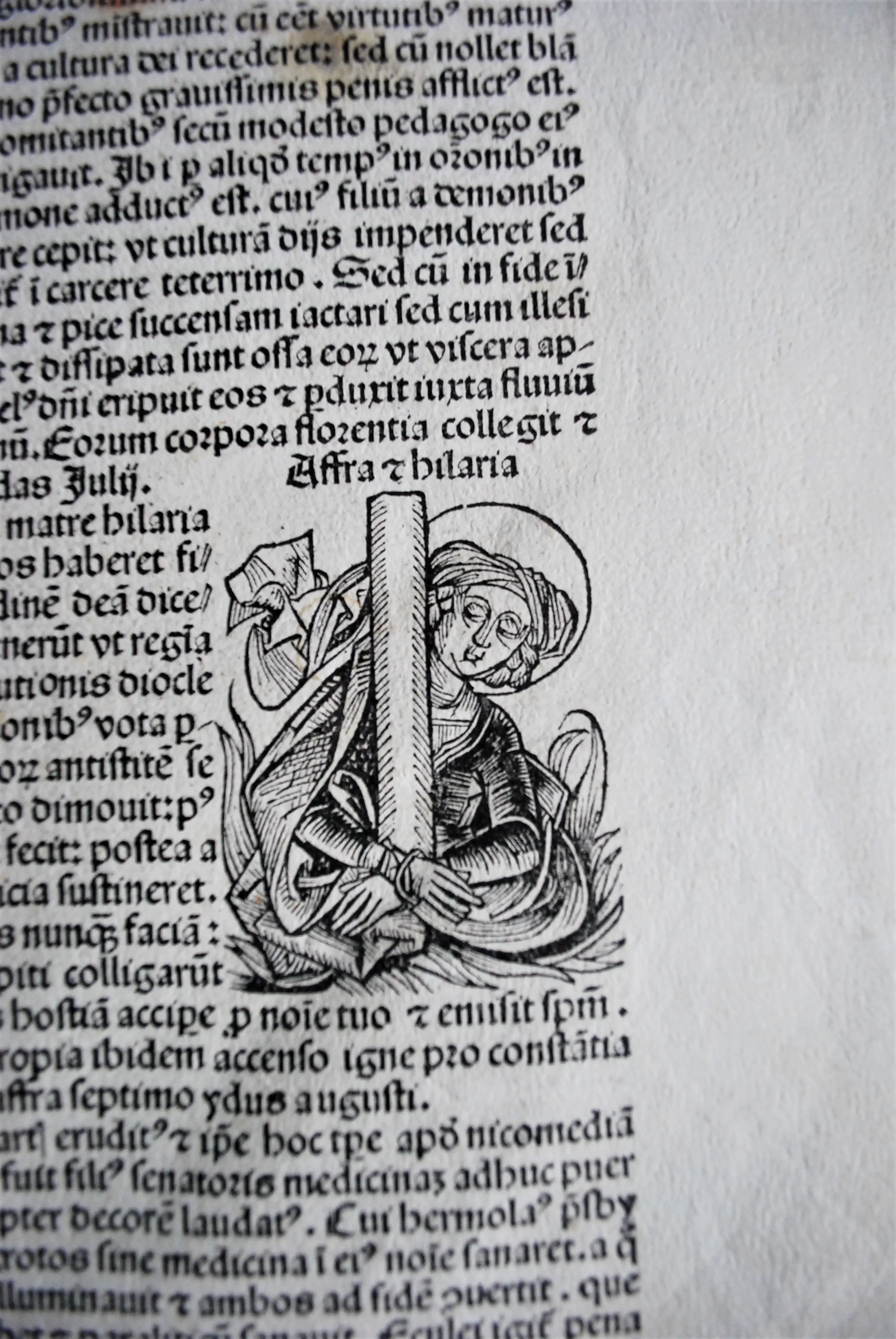 Incunabel (wiegendruk, een geschrift dat is gezet met losse letters wat vóór 1501 in Europa is gedrukt) en 13x houtsnede uit de bekende