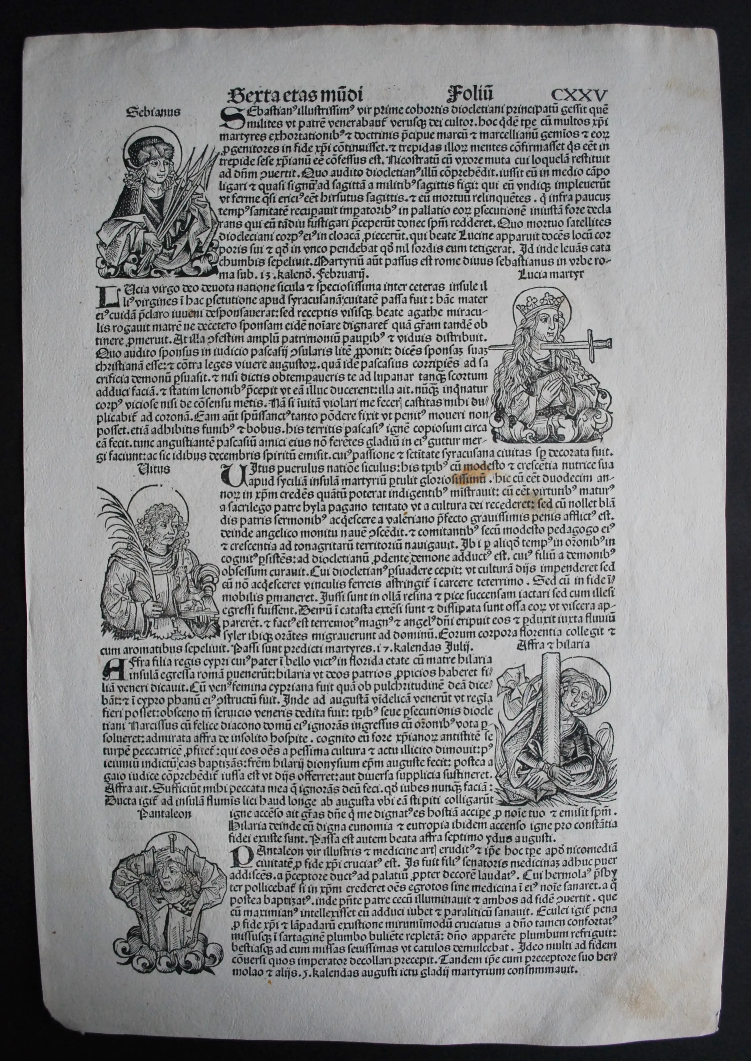 Schedelsche Weltchronik. De Kroniek van Neurenberg wordt gezien als één van de rijkst geïllustreerde werken in de vroege boekdrukkunst en bevat zo'n 1.800 houtsneden van Michael Wolgemut en Wilhelm Pleydenwurff.