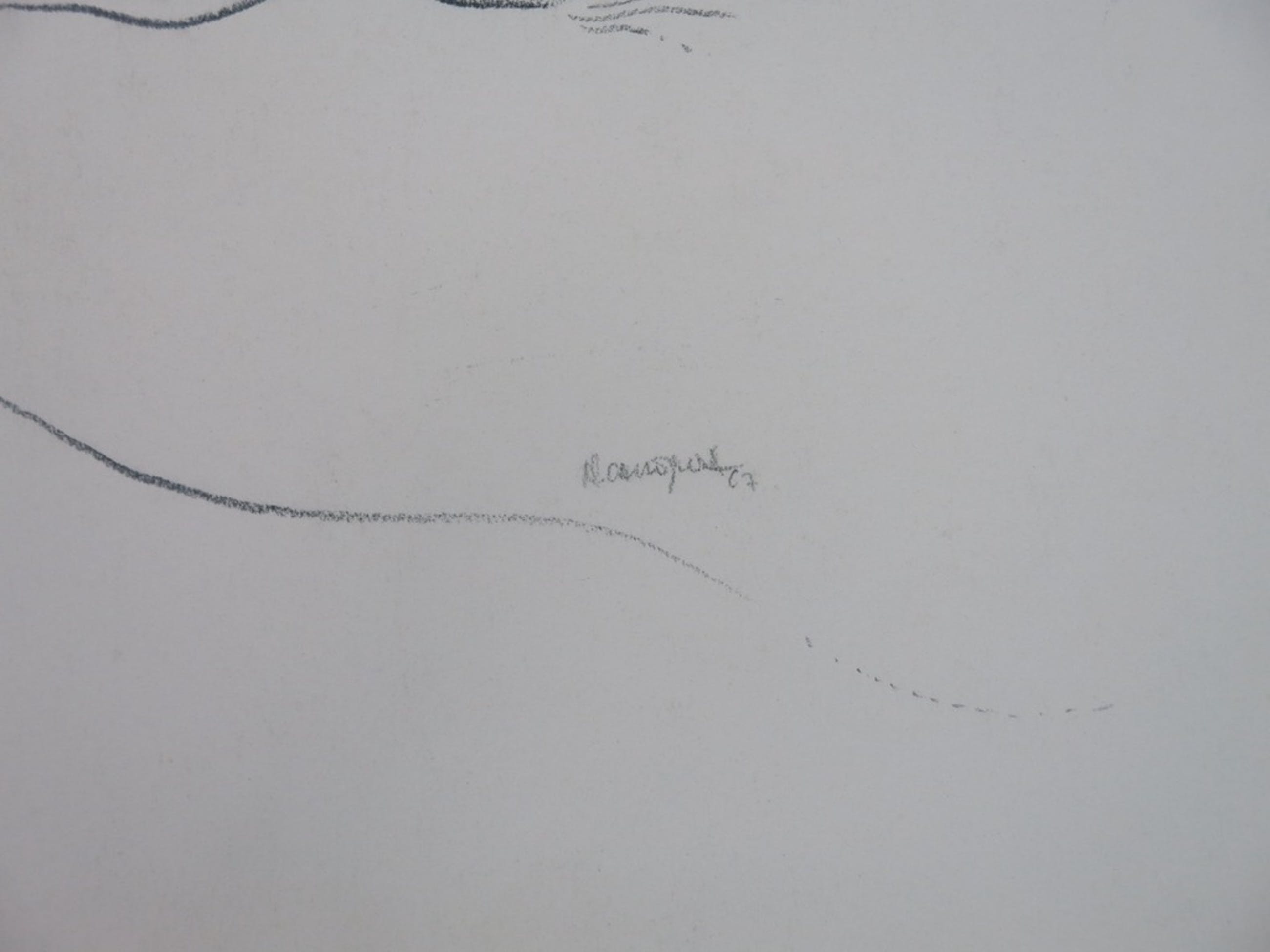 Conditie tweede tekening: Het blad is wat veul en met name links wat vlekjes, rechts een klein scheurtje in de rand van het blad en in de witranden buiten het beeld wat kreuk/vouwlijntjes.