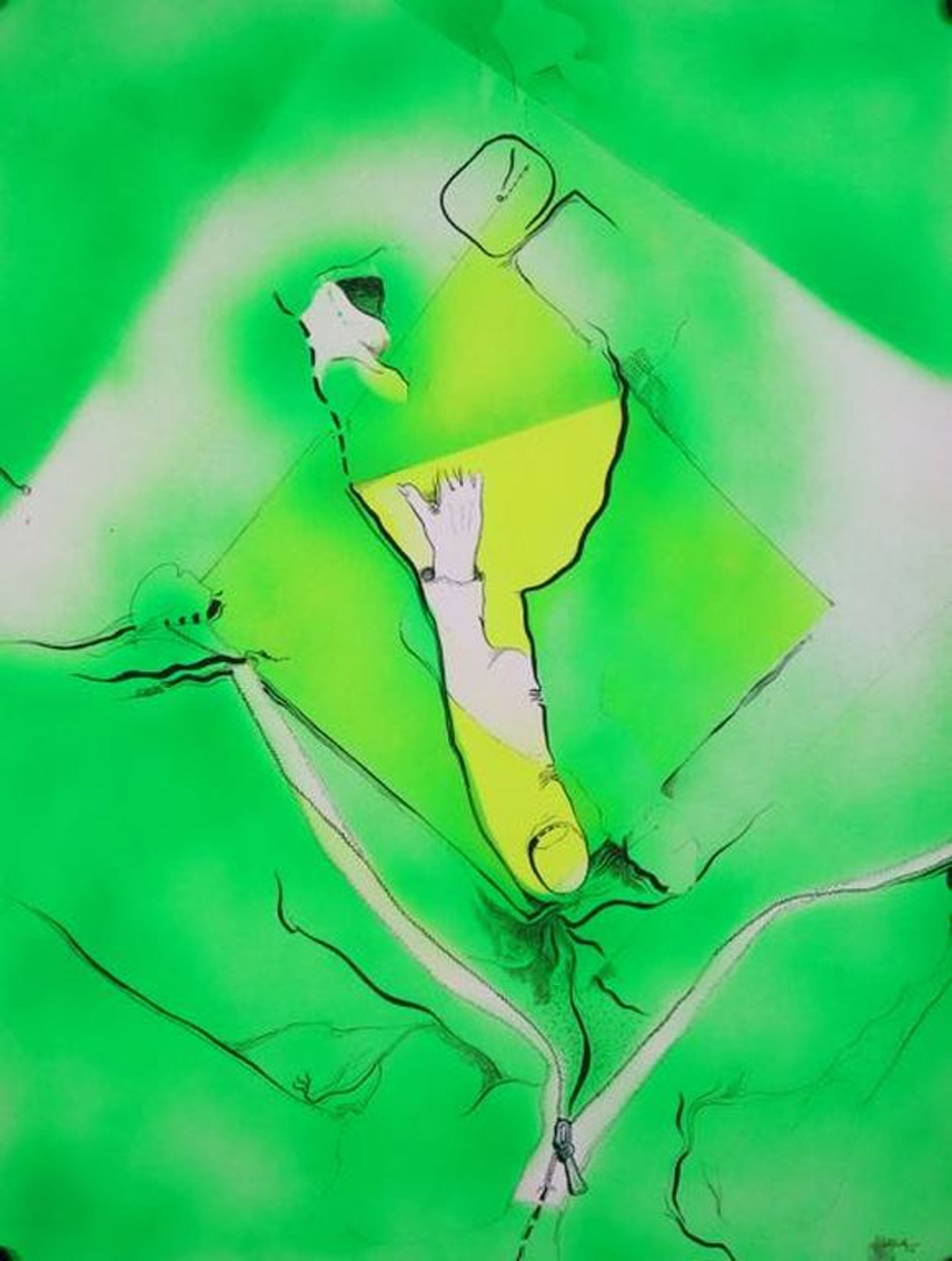 Materiaal: Gemengde techniek o.a. pen, inkt en gouache op papier