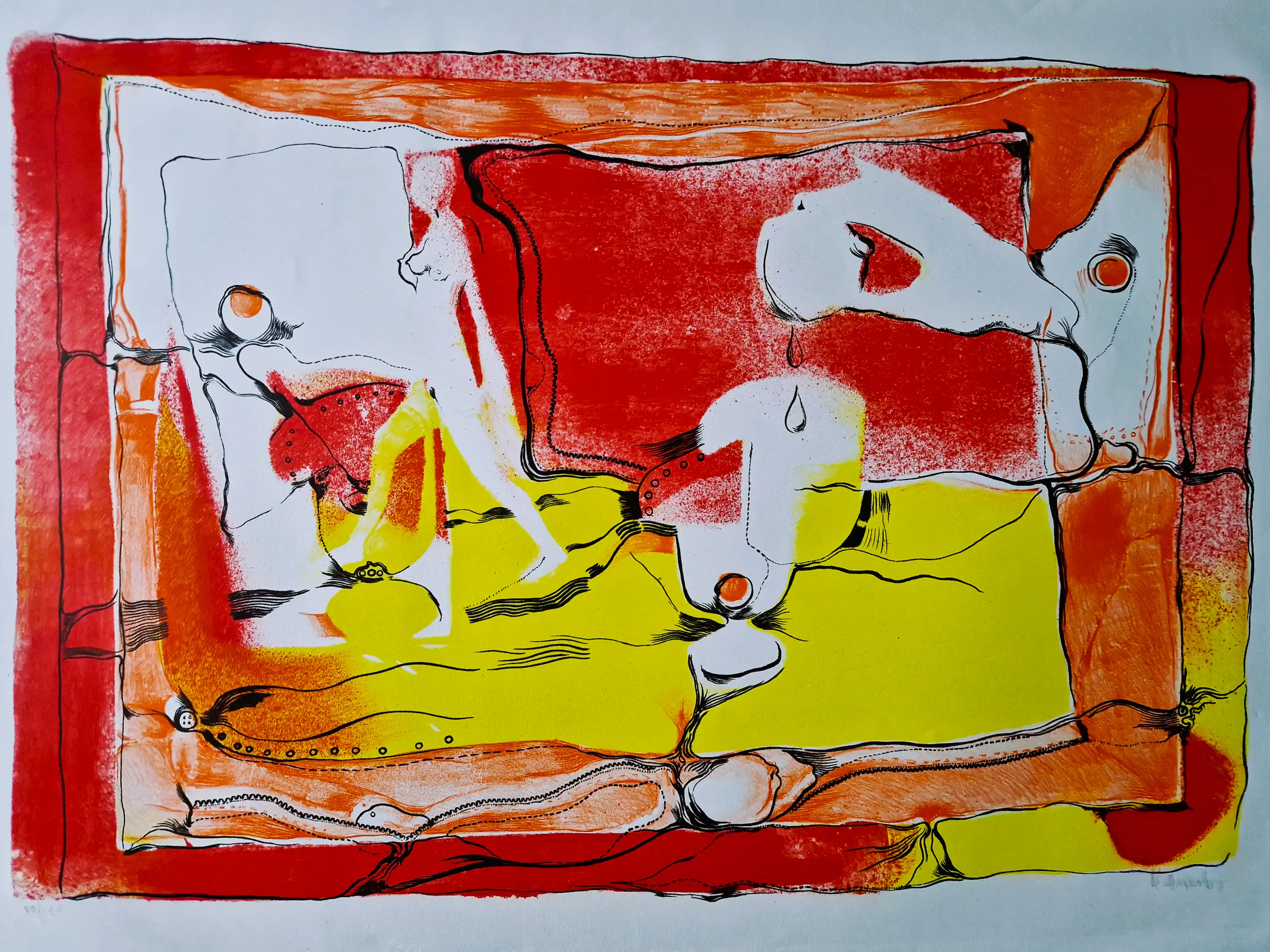 - Afmeting litho niet ingelijst: 60 x 89 cm. Rechtsonder in potlood gesigneerd, linksonder in potlood: 88/190.