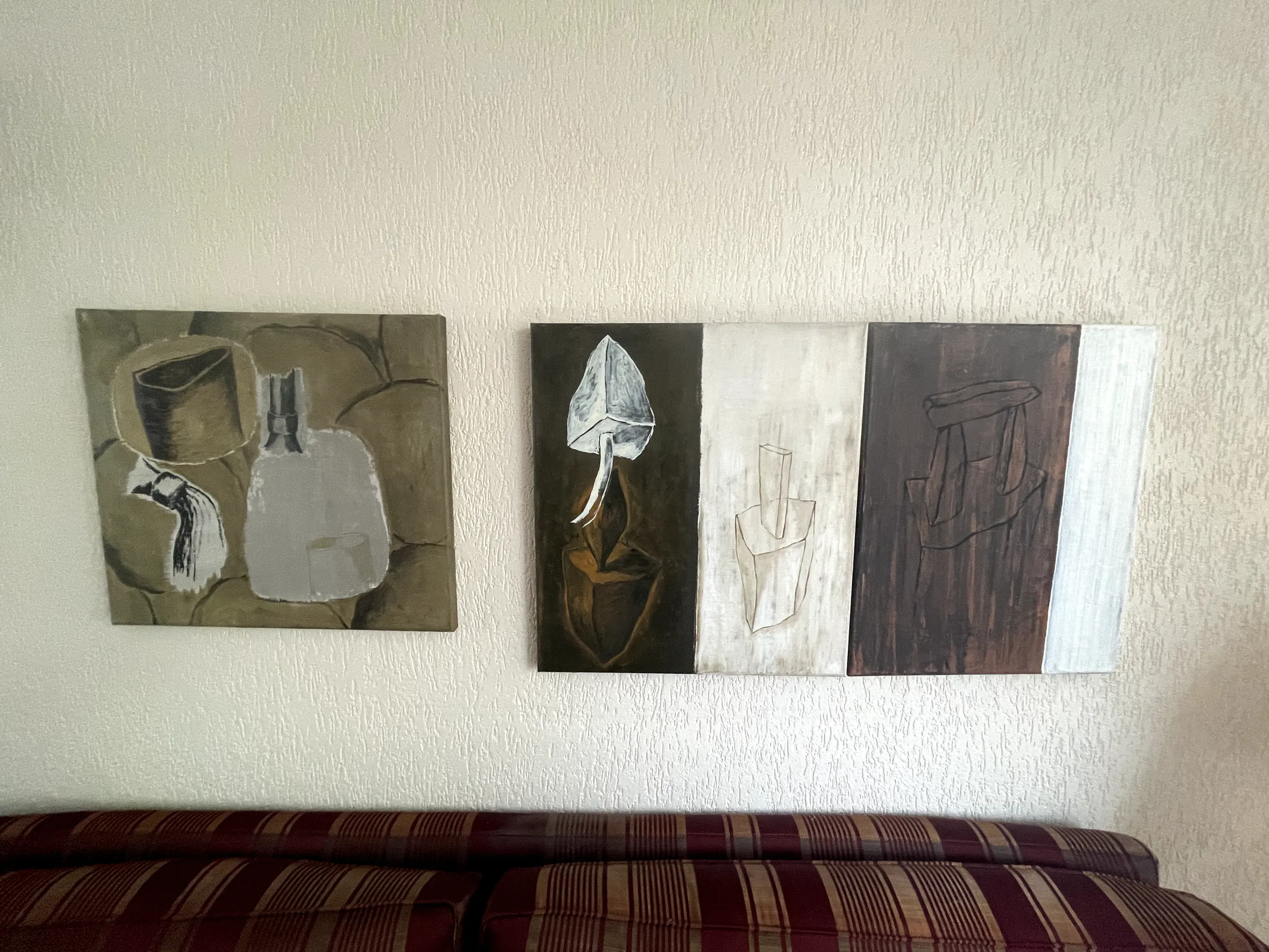 Twee mooie schilderijen (tweeluik) van Michel Hoogervorst. De kleinere van het stel is 45 bij 50 cm. De grootste 50 bij 86 Kunnen apart worden verkocht. Voor de kleinere is het openingsbod 100 Euro Voor de grootste is het openingsbod 150 Euro