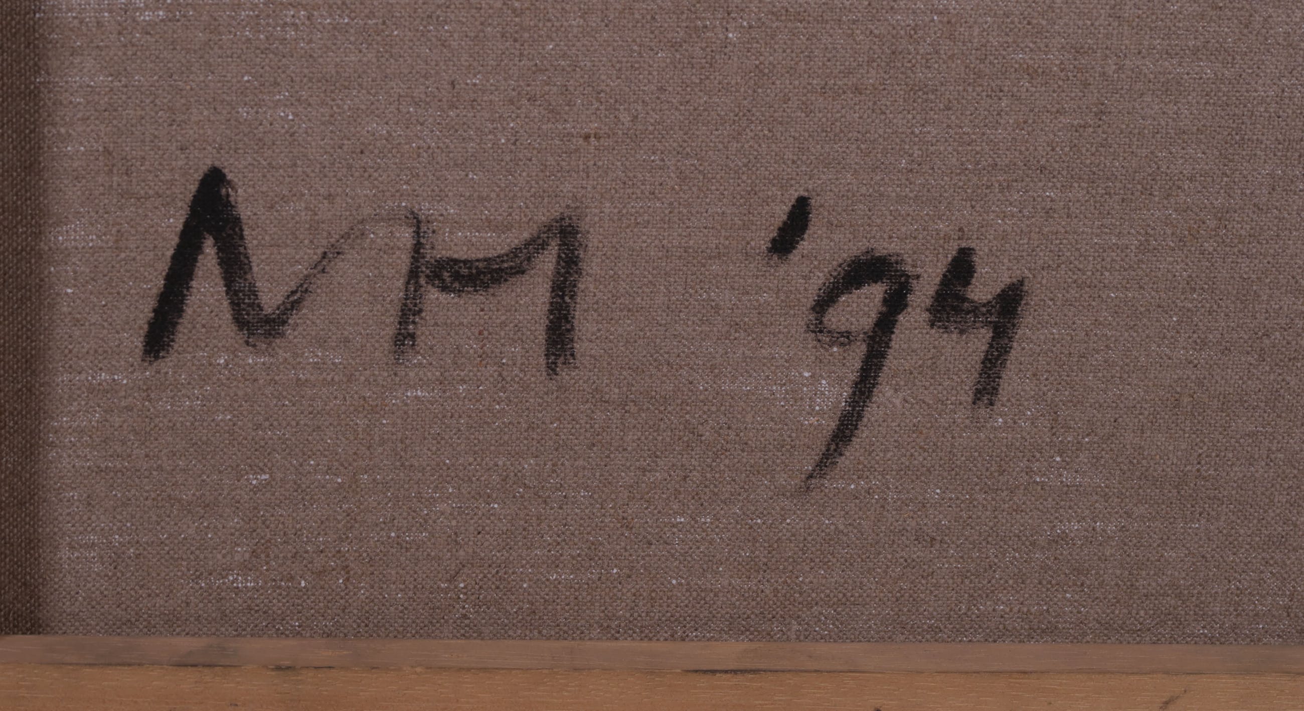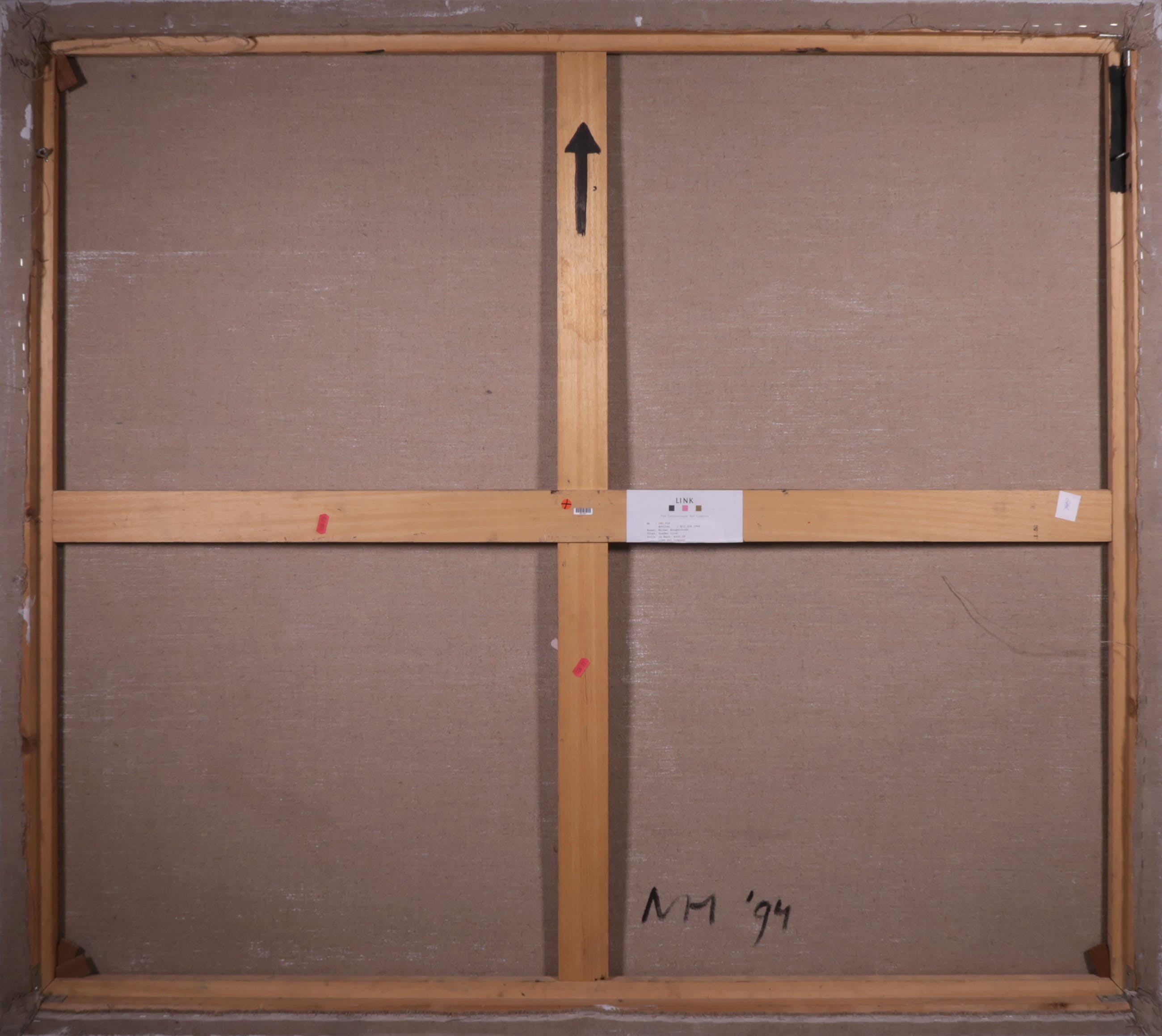 | De randen van het doek zijn verweerd. Het doek zit vrij los. Er zitten enkele deuken in het doek doordat er een ander werk tegen heeft gestaan in opslag. | |