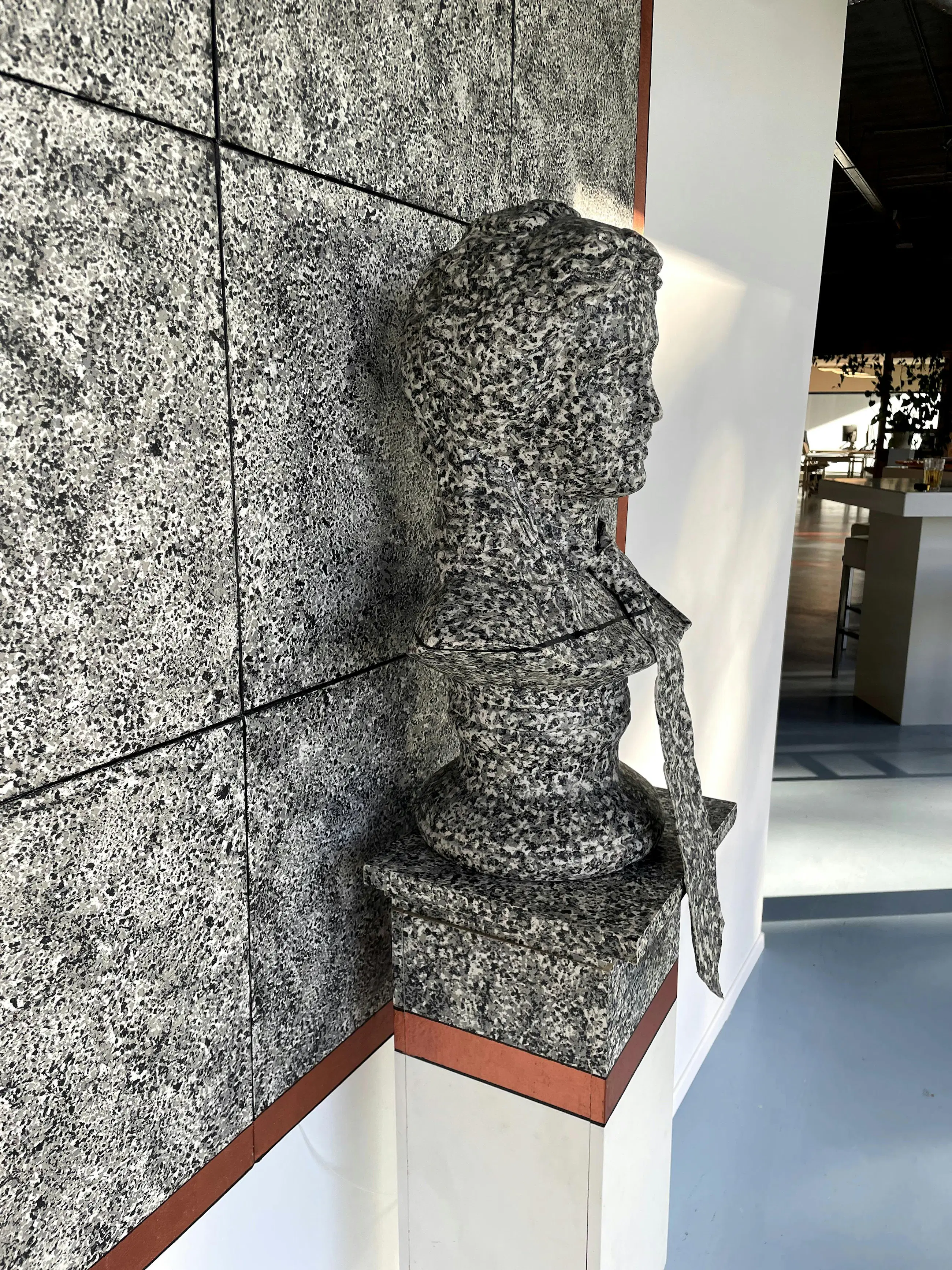 | Wat lichte gebruikssporen, zie ook foto's. De kop zit los van de sokkel, de bevestiging met de sokkel zit iets scheef / los en dient opnieuw gesteld te worden. | |
