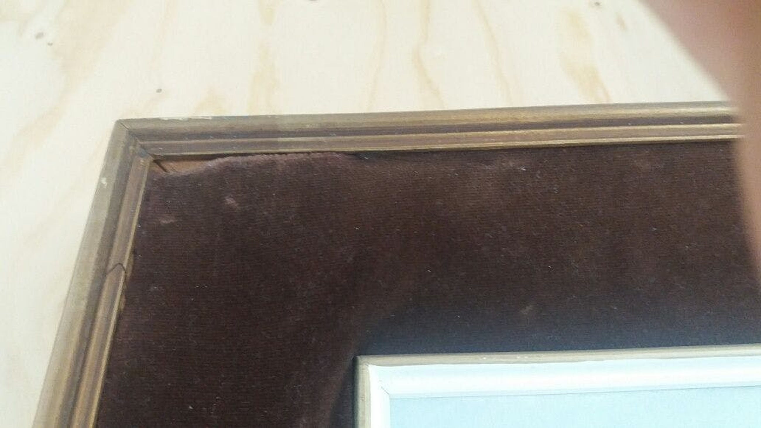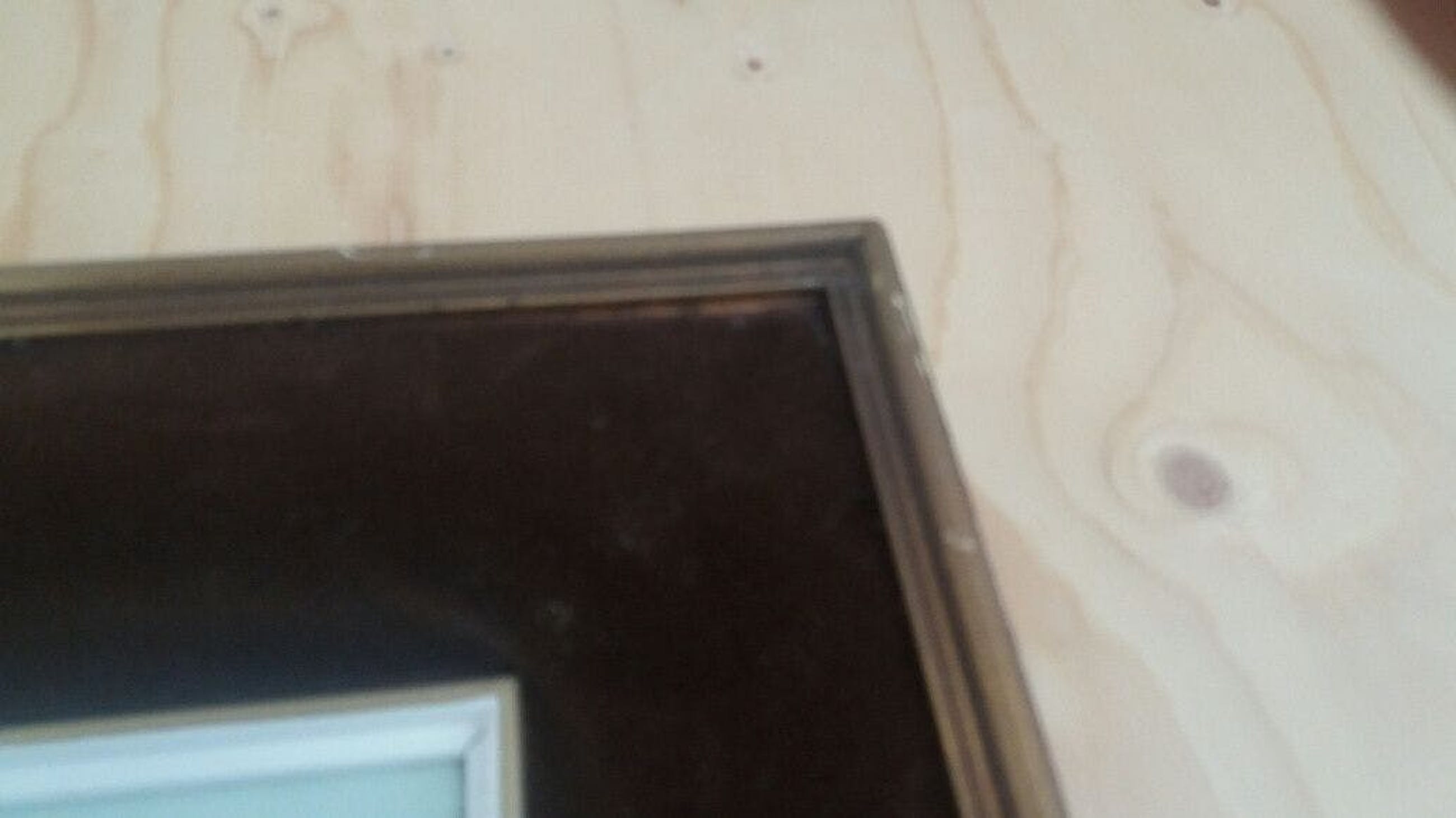 Verf heeft op enkele plaatsen barstjes, lijst moet nagekeken worden (doek van passe-partout aanspannen).