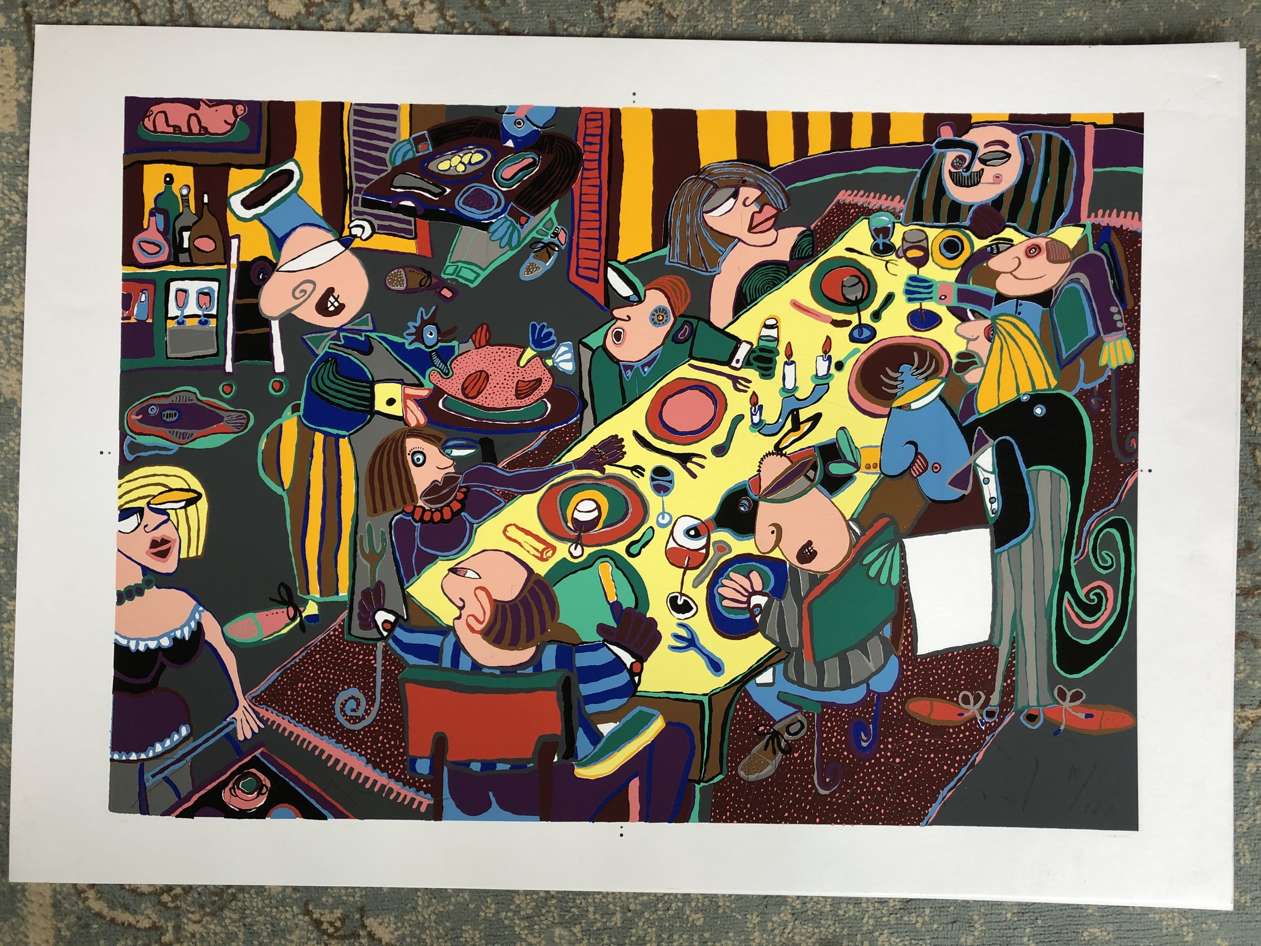 Grappige grote zeefdruk van Michel Poort. Leuk voor een restuarant of boven de eettafel.