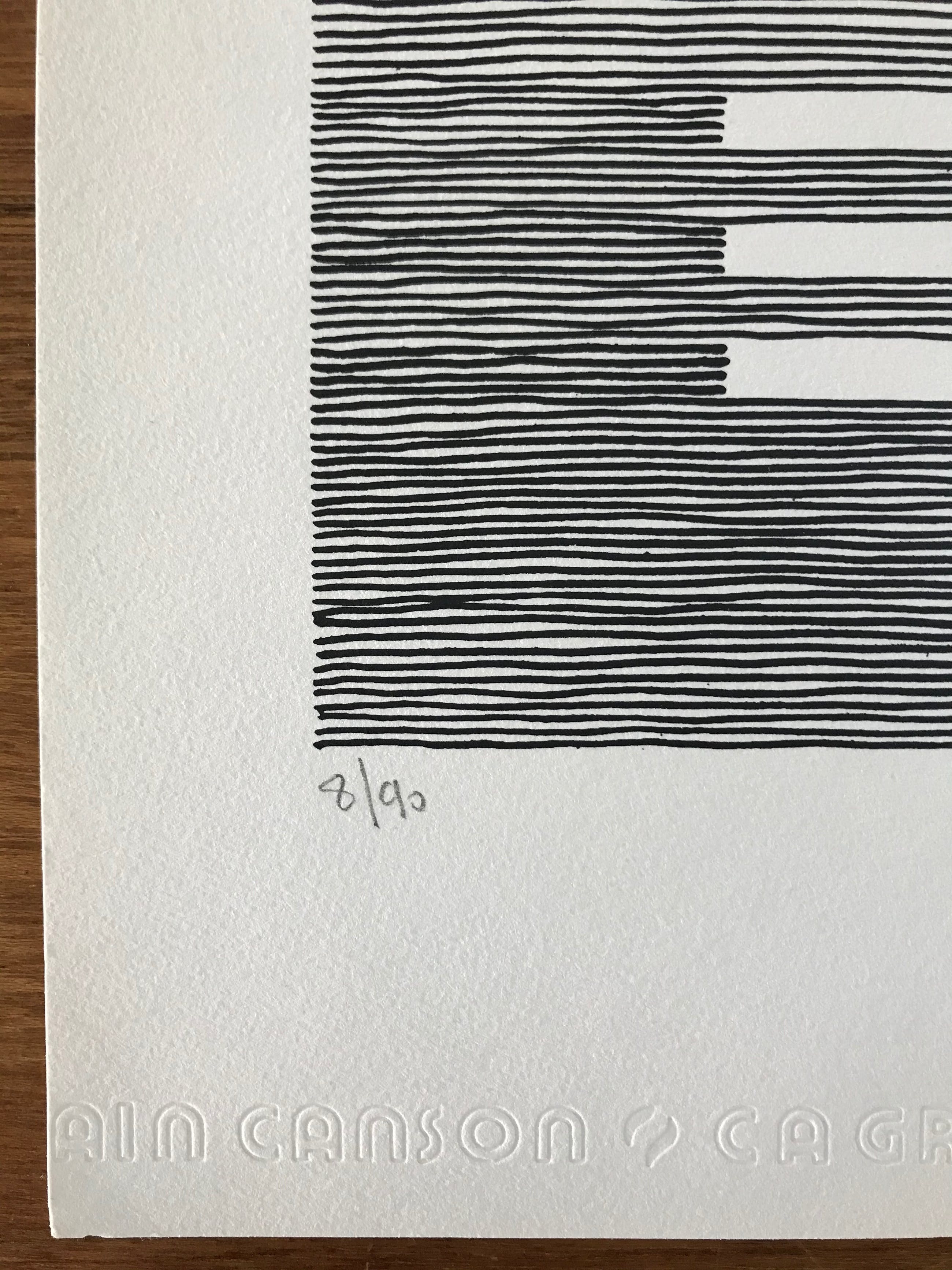 Zeefdruk in zwart-wit op Canson papier.