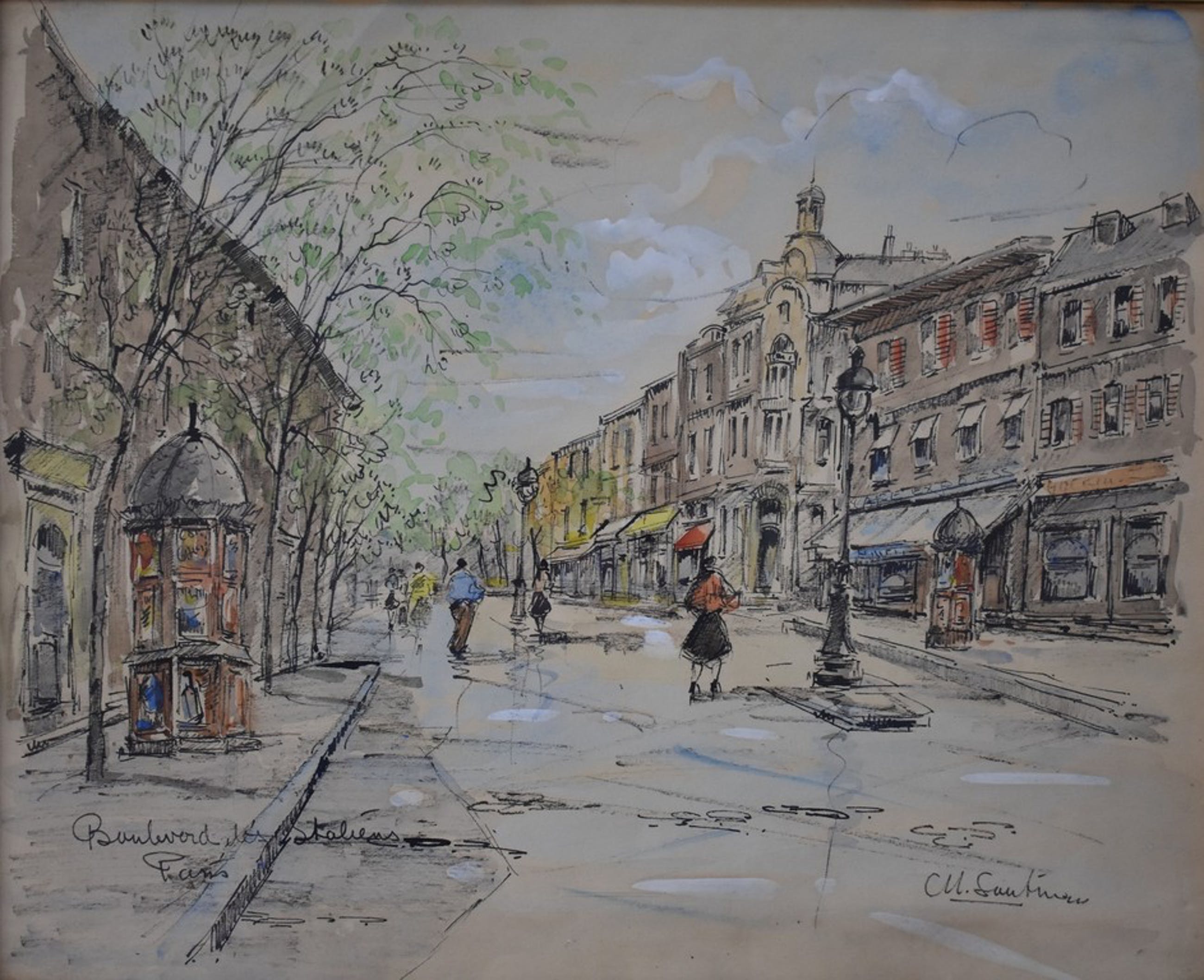 Michel Soutine (1914-1986 ) is bekend om zijn treffende Parijse stadsgezichten. Soutine is een pseudoniem van Job Frese. Veel werk van hem is op de markt verschenen met de naam J.Kelderman. Het betreft hier een origineel werk nog in de authentieke lijst met van Gonkel etiket op achterzijde rond 1935. Het werk is in perfecte staat, de aquarel heeft goede heldere kleuren, is compositorisch aantrekkelijk en meet 42x52 cm in de lijst. Let op! De uiteindelijk koper kan het werk inclusief lijst gratis afhalen in Heemstede. Bij aangetekende verzending wordt het werk zonder lijst verstuurd.
