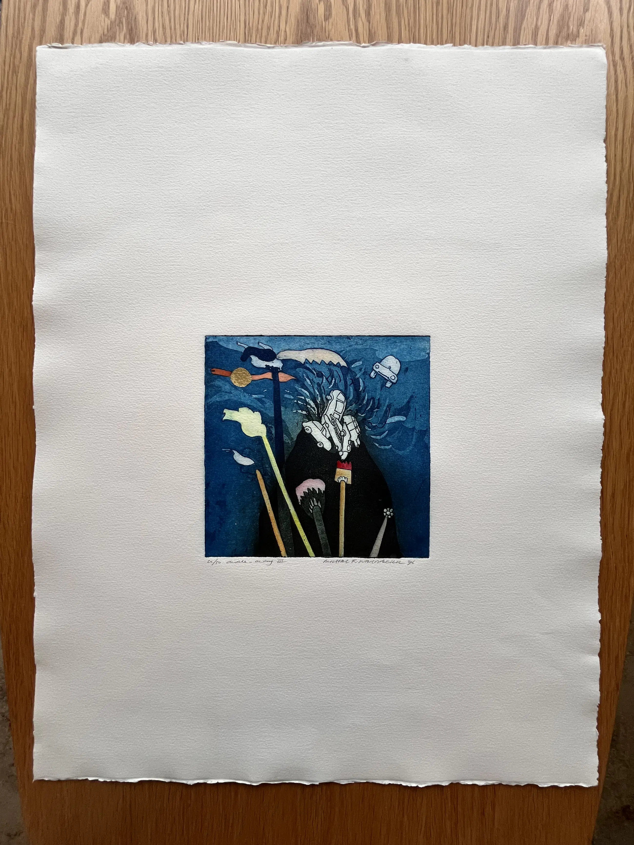 Mooie kleurenets - aquatint van Michel van Overbeeke (1942 - 2024) uit 1996. Met een touch van bladgoud. (zoals dikwijls in zijn werken) Gesigneerd, getiteld, gedateerd en in kleine oplage. (20/50)