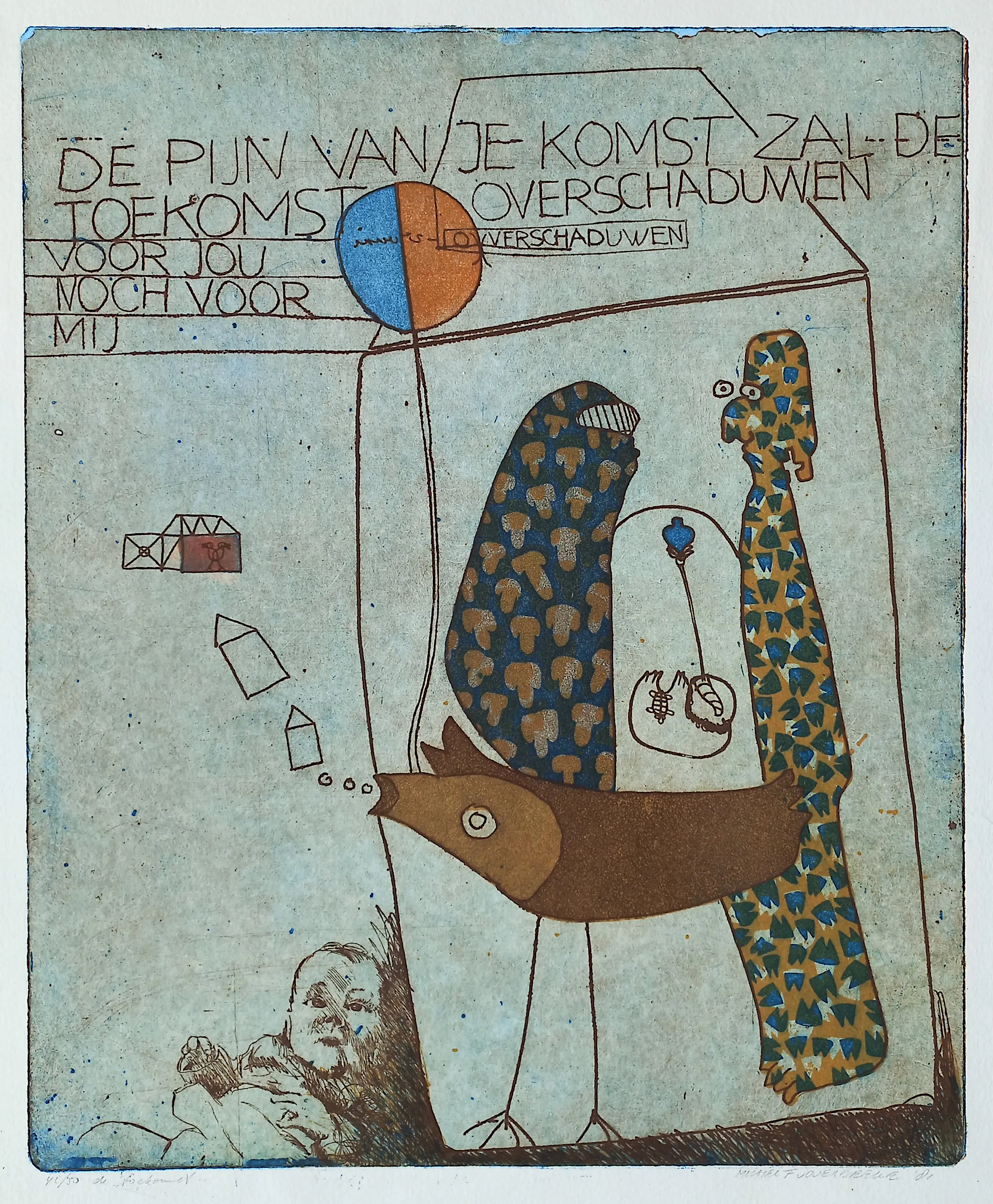 Mooie, herkenbare ets van Michel van Overbeeke. Aquatint ets op geschept papier, met potlood gesigneerd, gedateerd (‘81), getiteld en genummerd (42/50). In goede conditie.