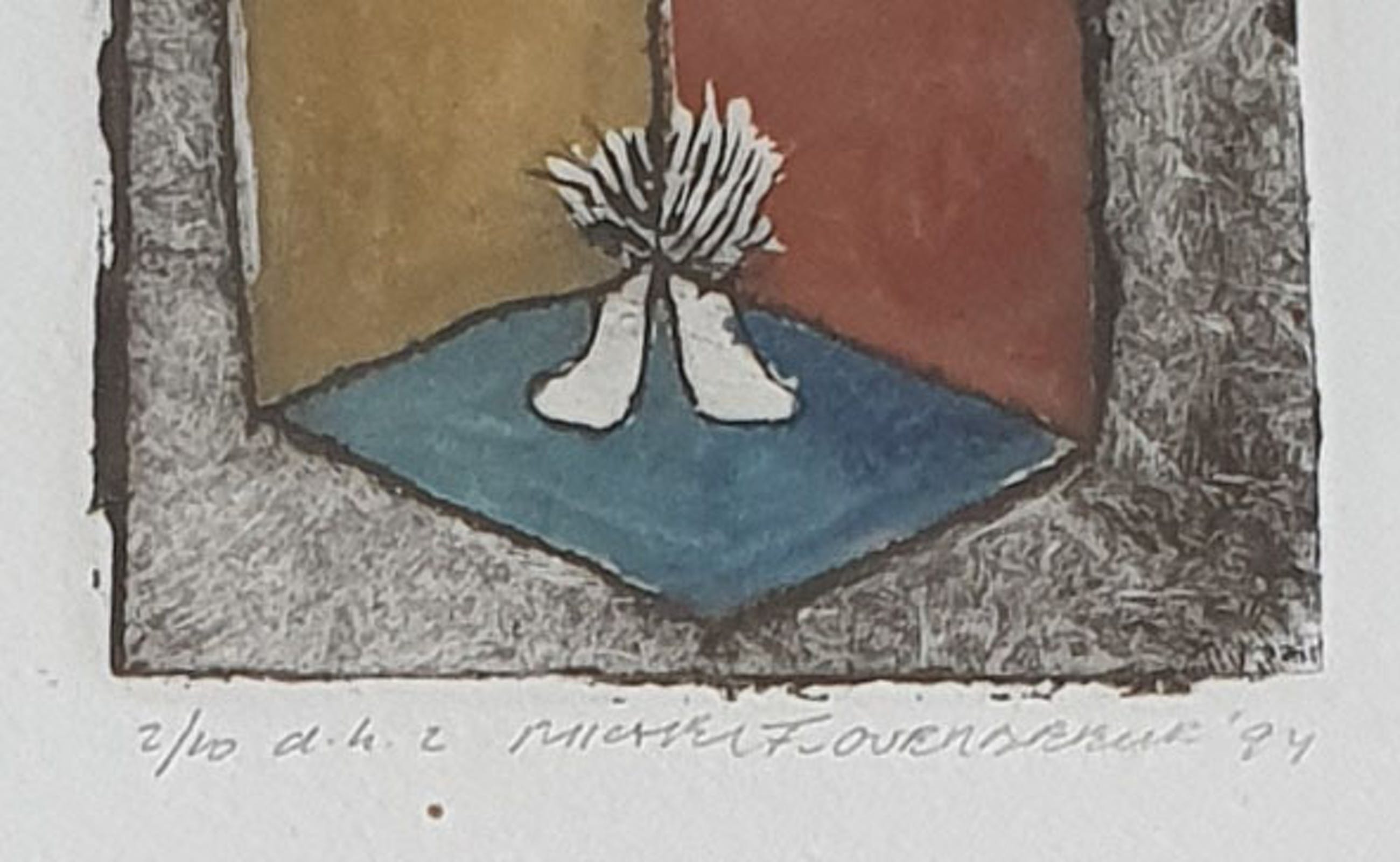 Ets uit 1994 van Michel van Overbeeke. Het werk is middenonder met de hand gesigneerd doorde kunstenaar. Het werk is erg mooi ingelijst.
